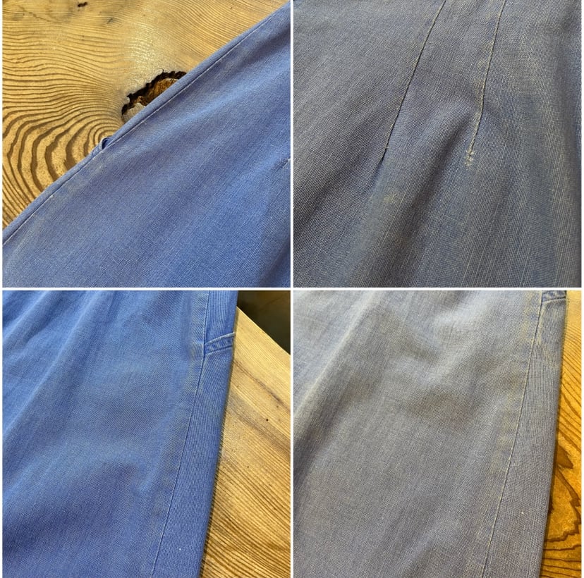 ダメージを裏から接着芯で塞いだ跡が見受けられますが、目立ちません。