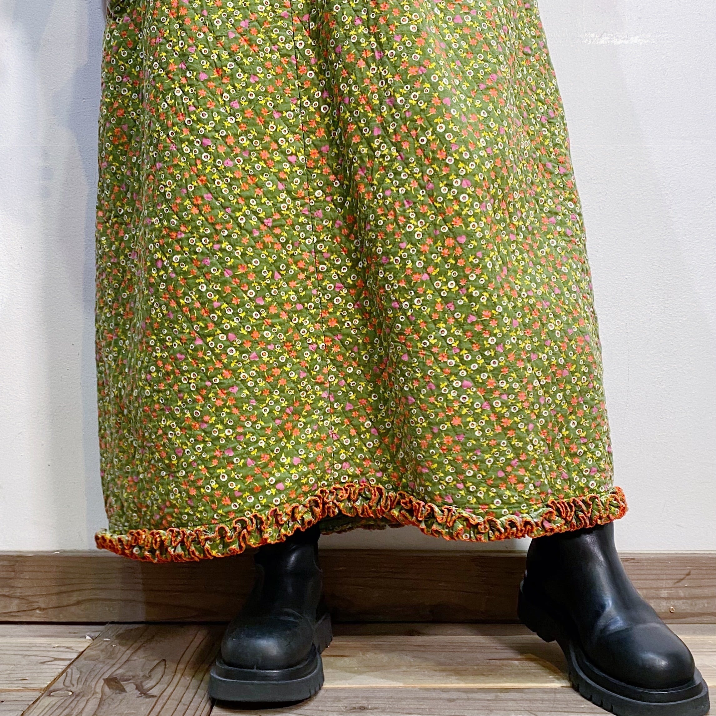 お花とハート柄がとっておきにキュートな、70年代のロングワンピースです。