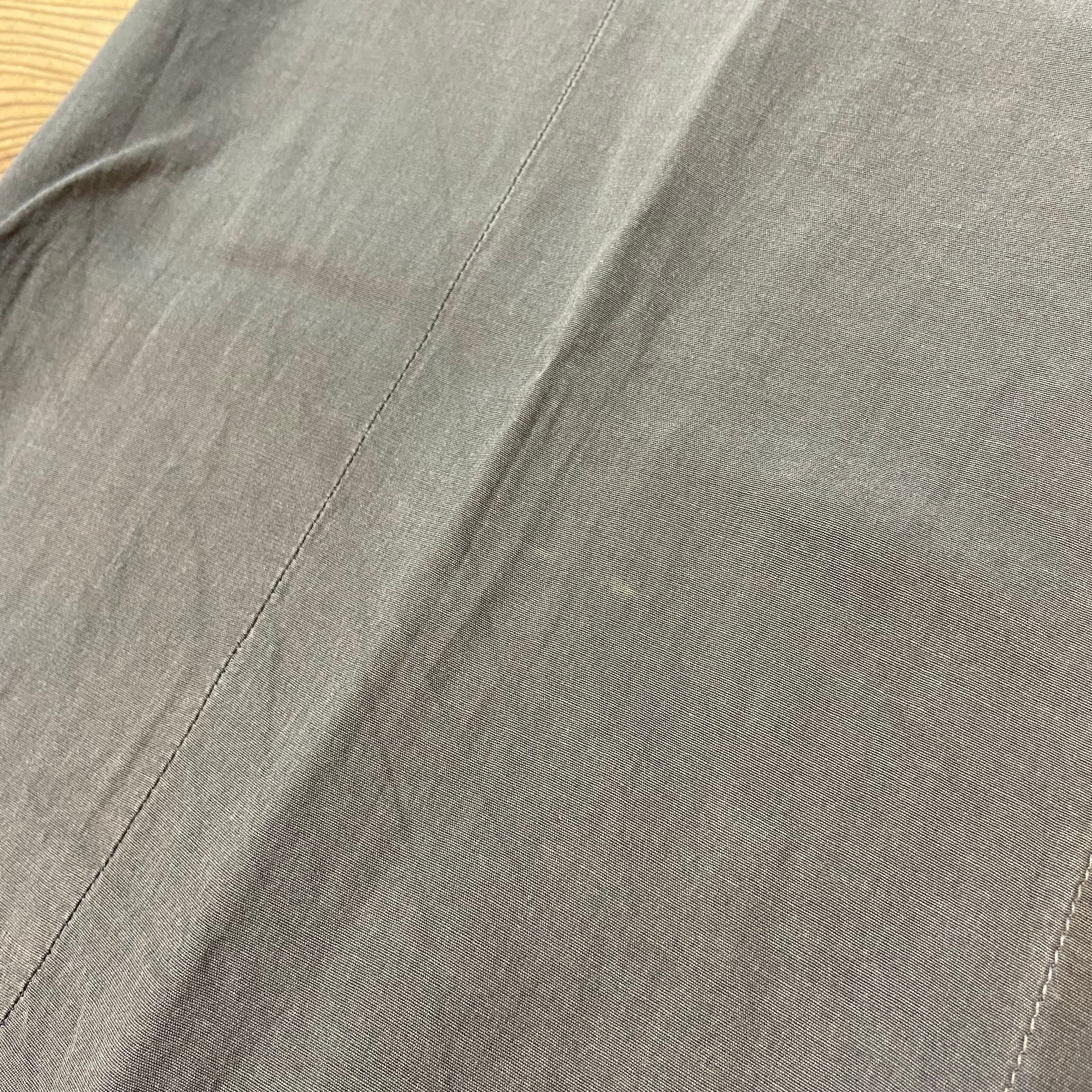 スモーキーグレーにネイビーの襟が可愛い、80年代頃のシルクシャツです。