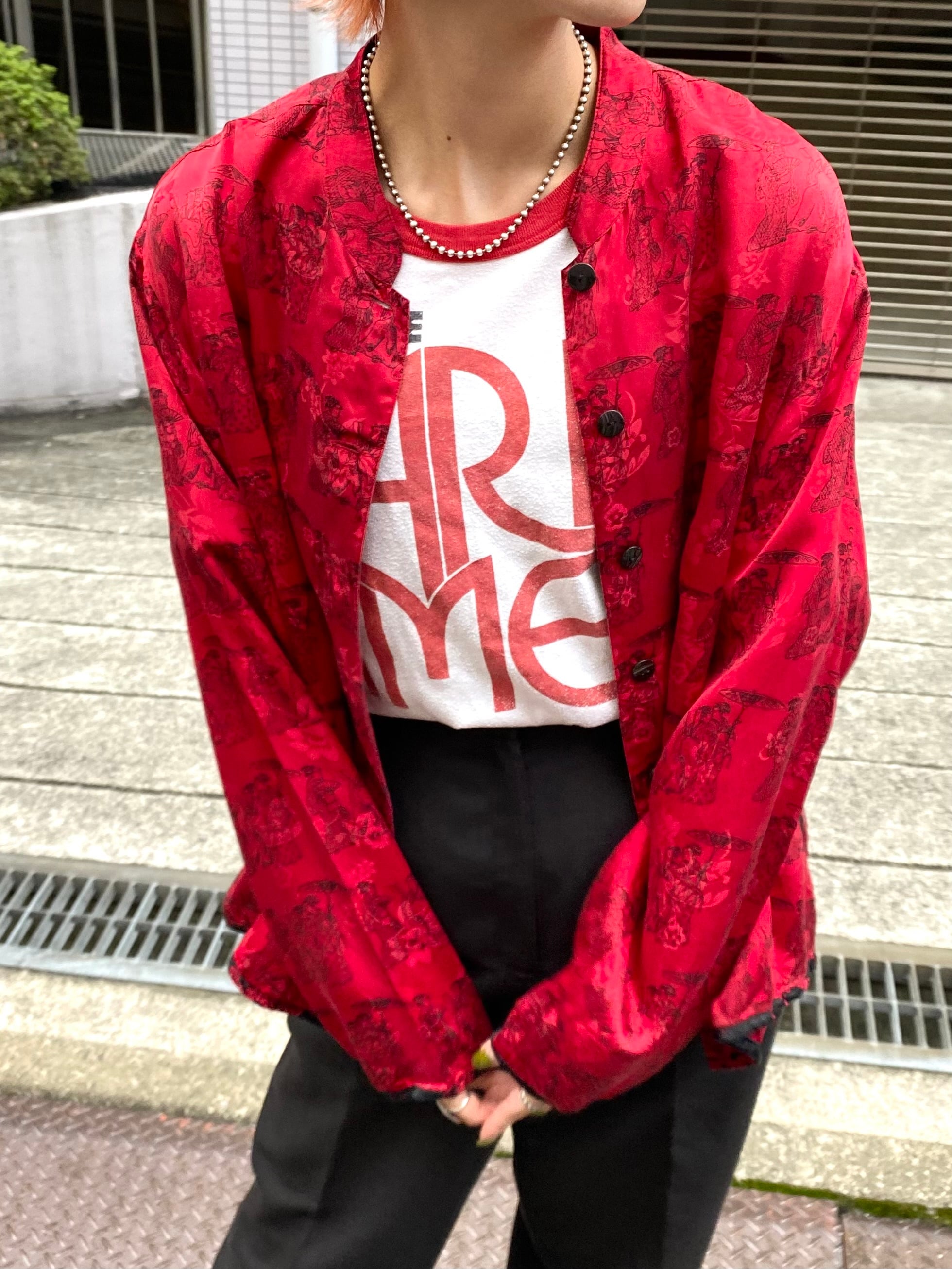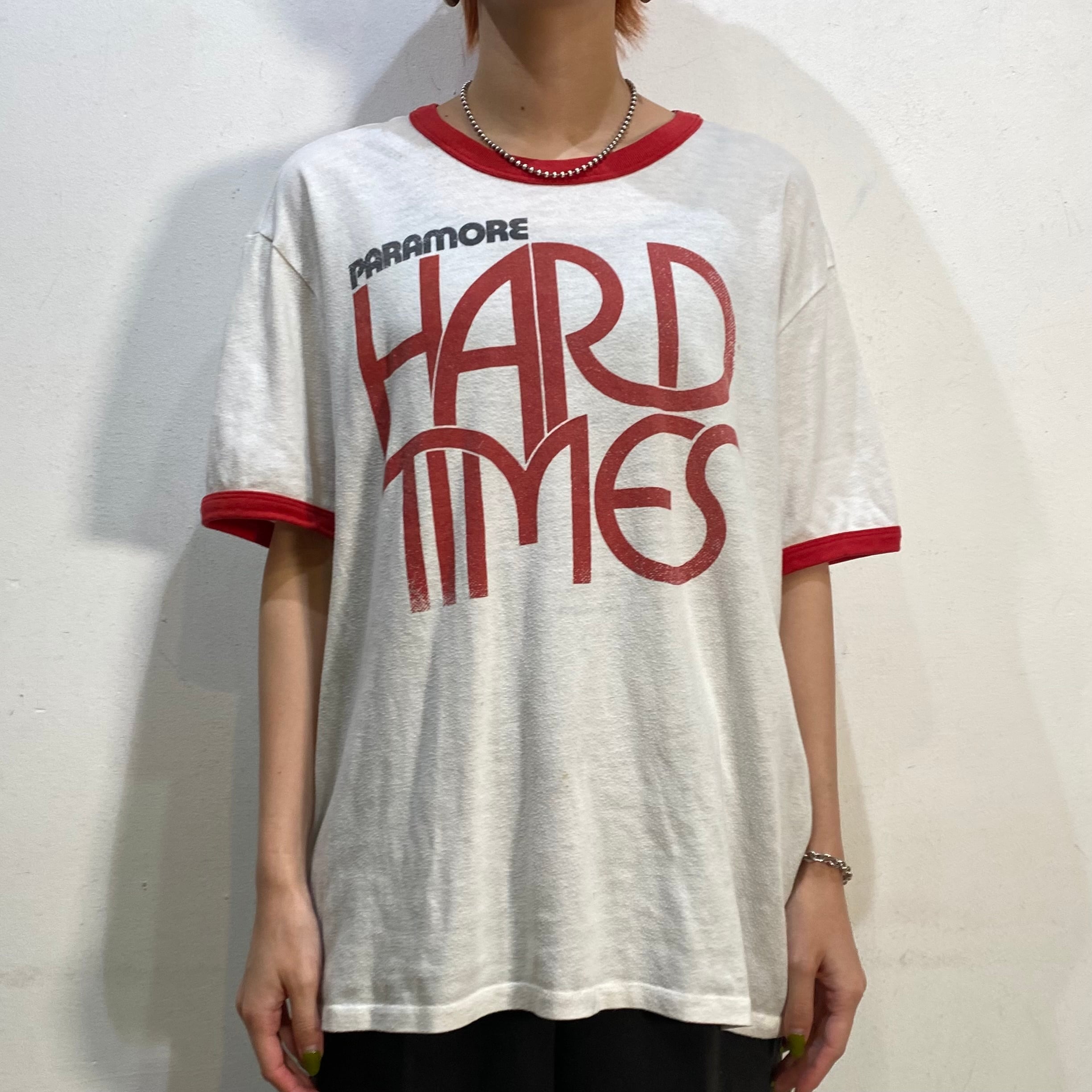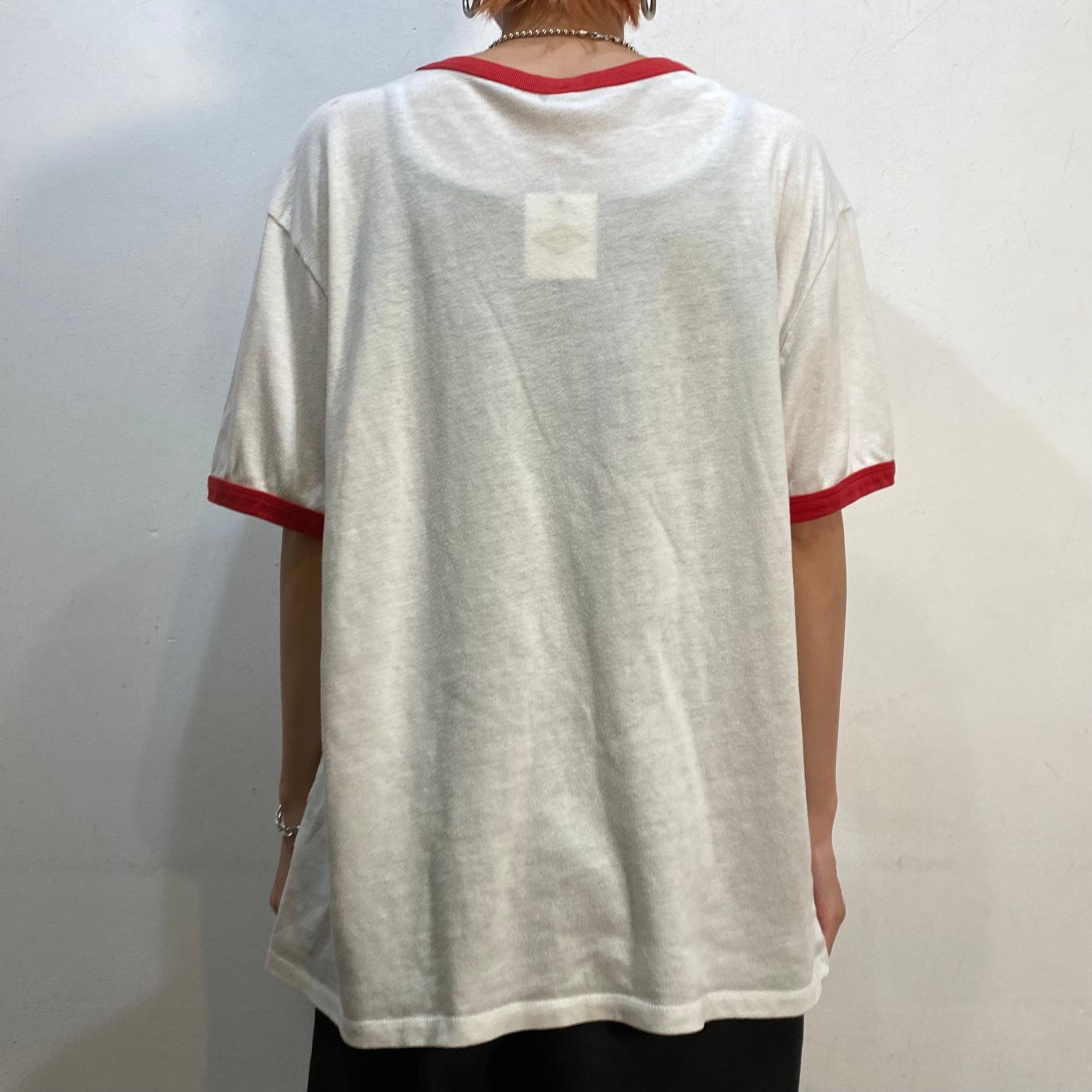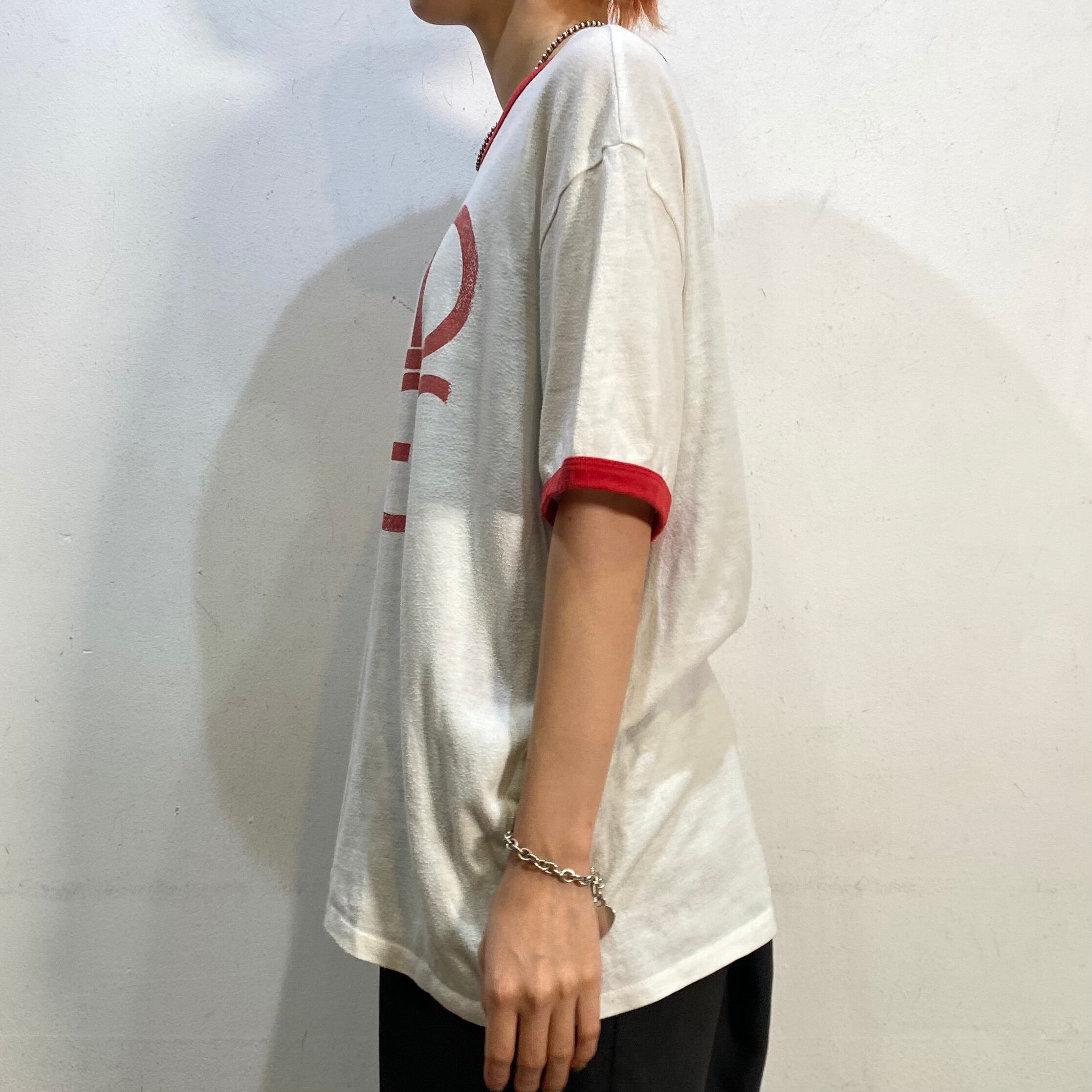 レッド×ホワイトのリンガーデザインが可愛い、90年代のTシャツです。