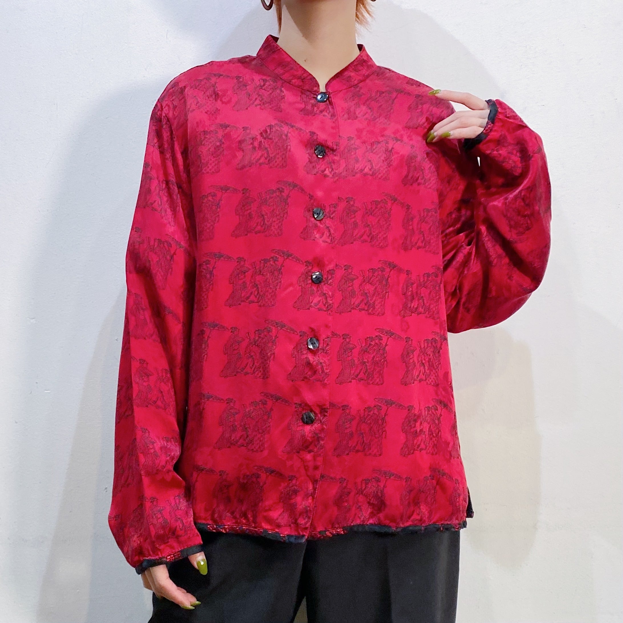 スタンドカラーに黒のパイピングがアクセントになっていて、形は少しチャイナ寄りな所も楽しいです。