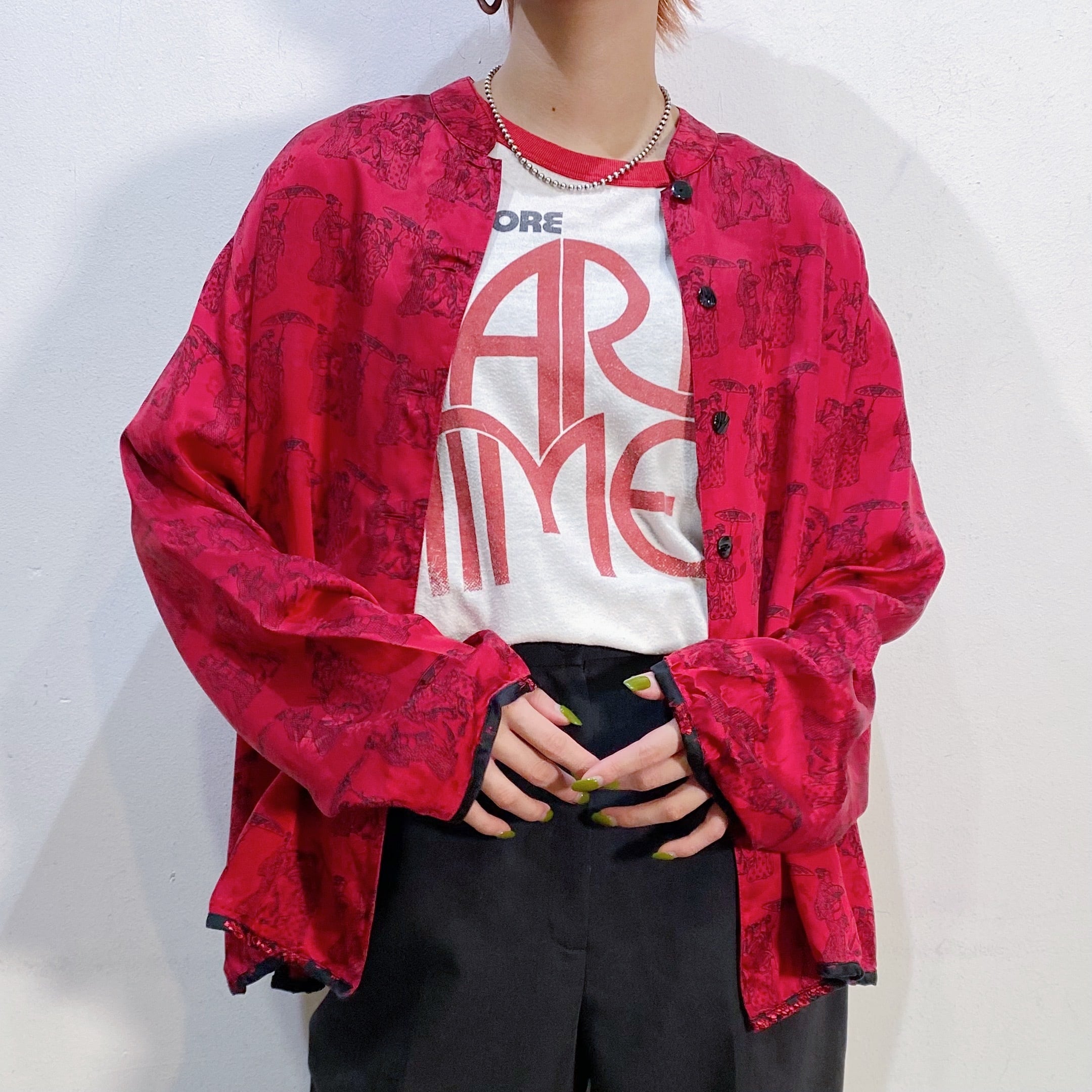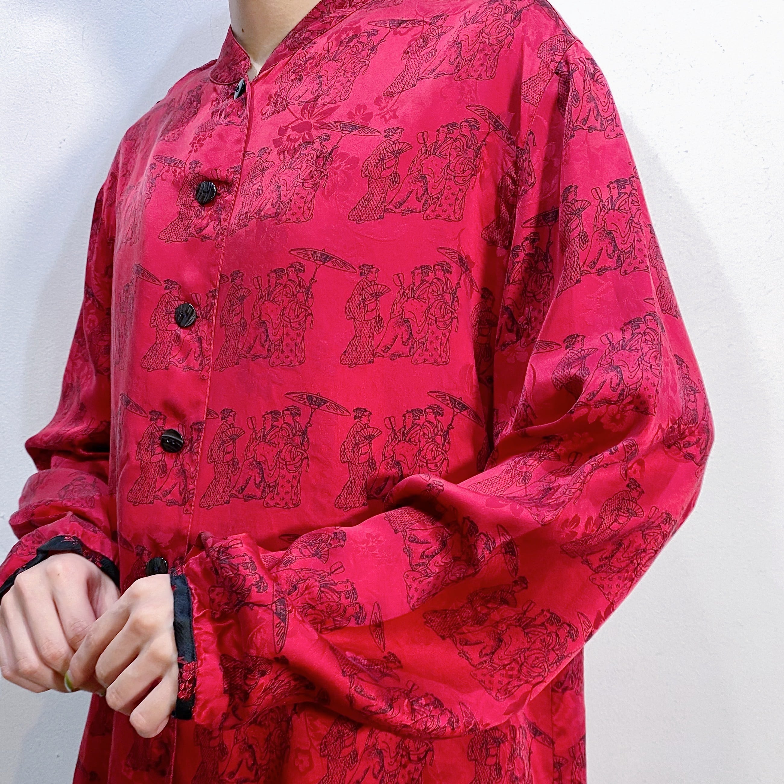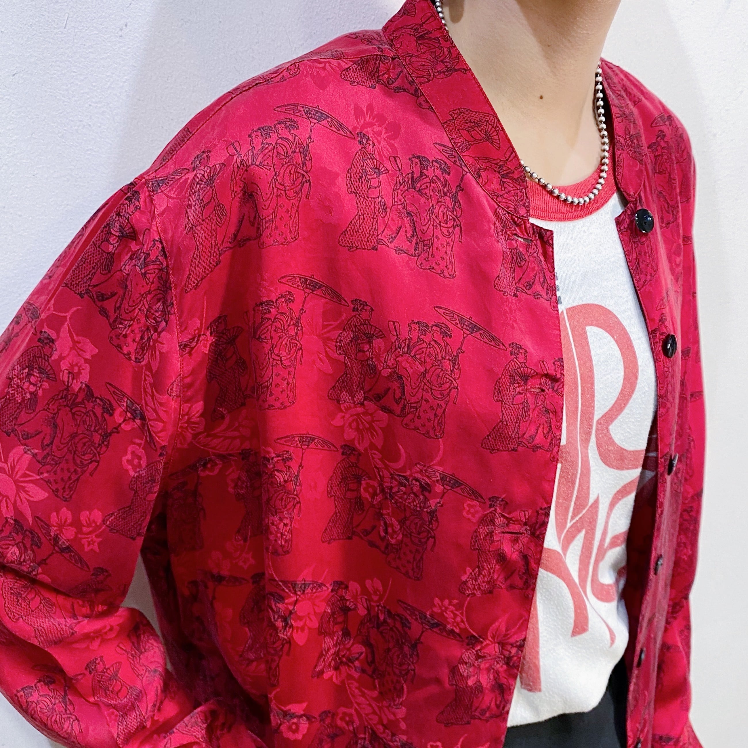 着物姿の女性達の総プリントがユニークで可愛い、90年代の長袖トップスです。