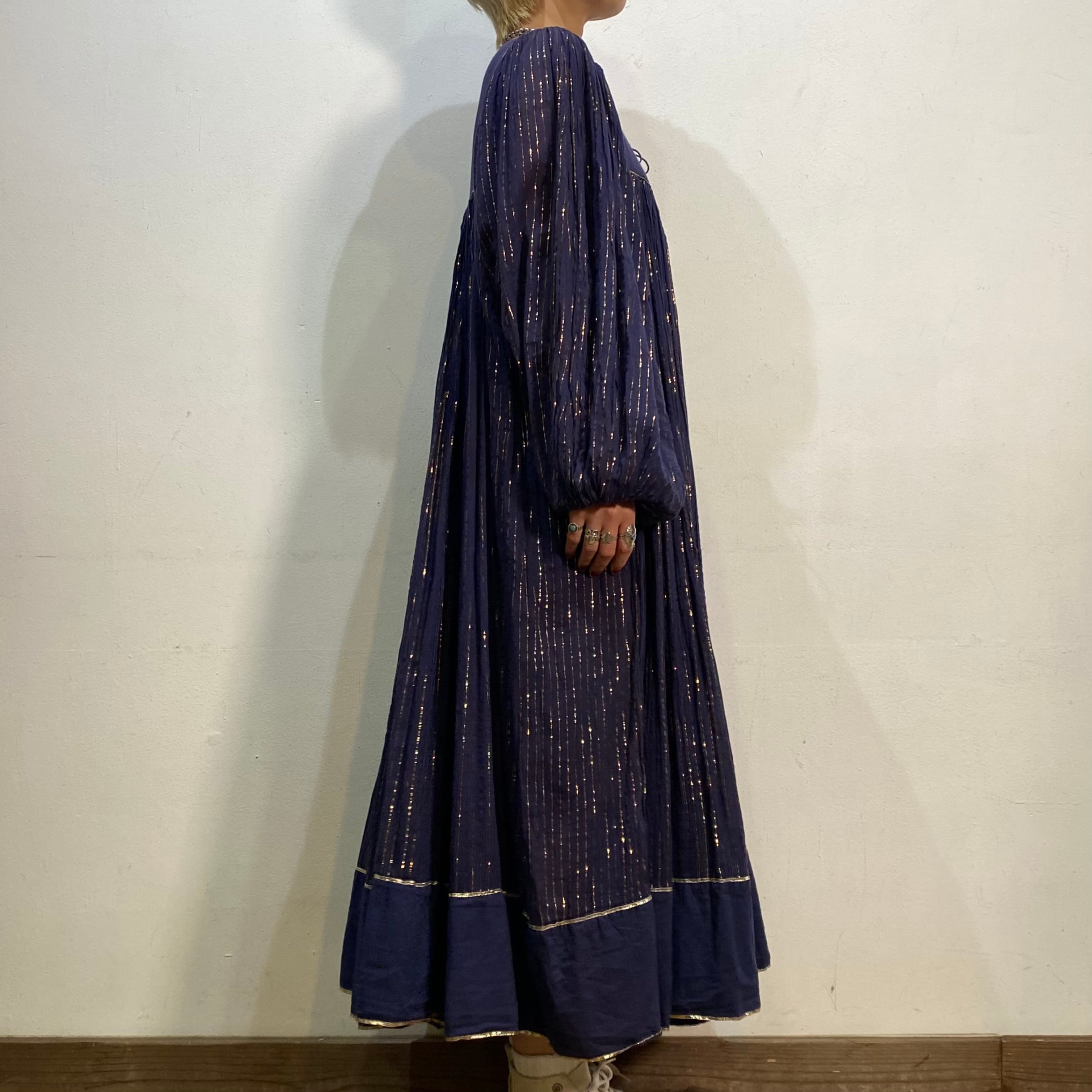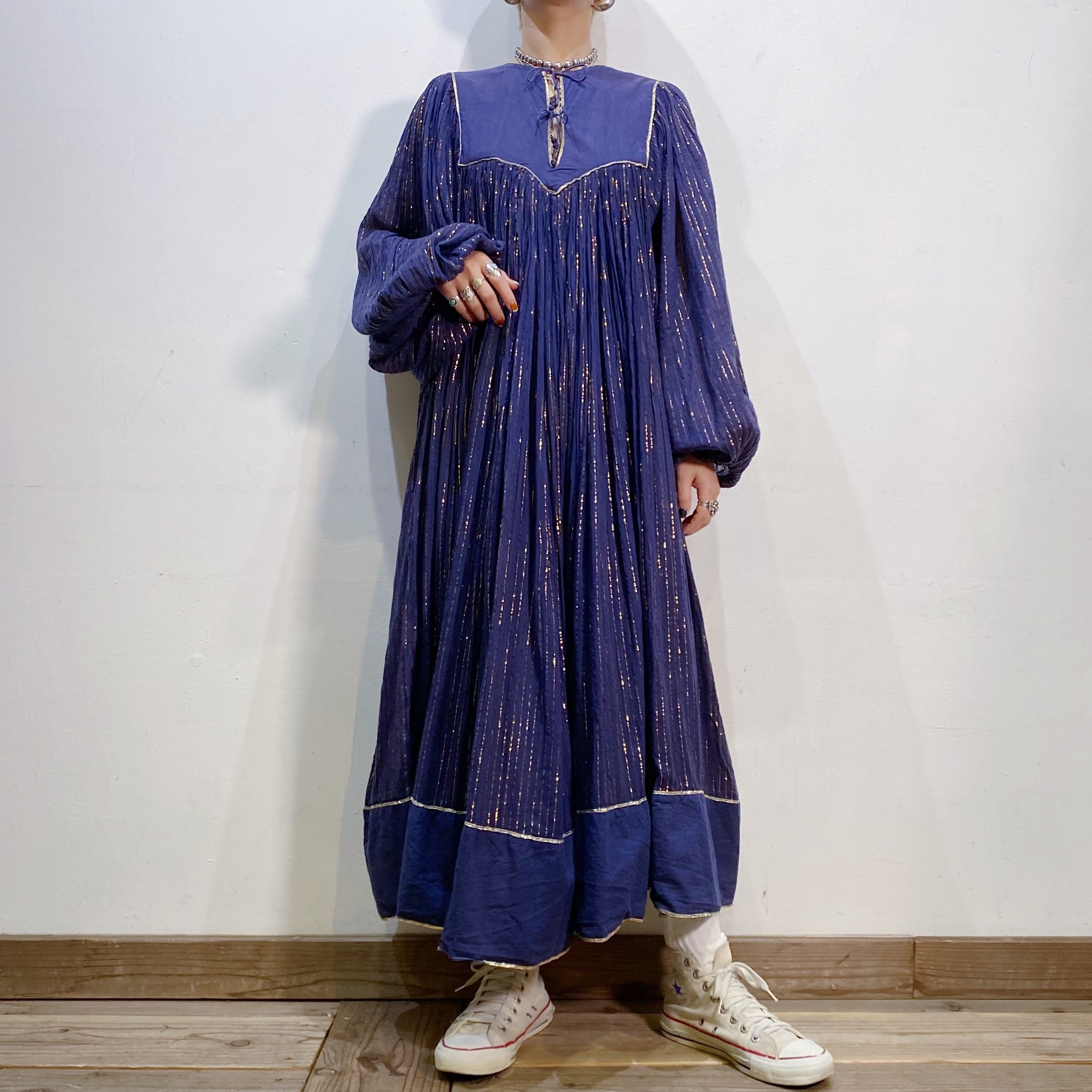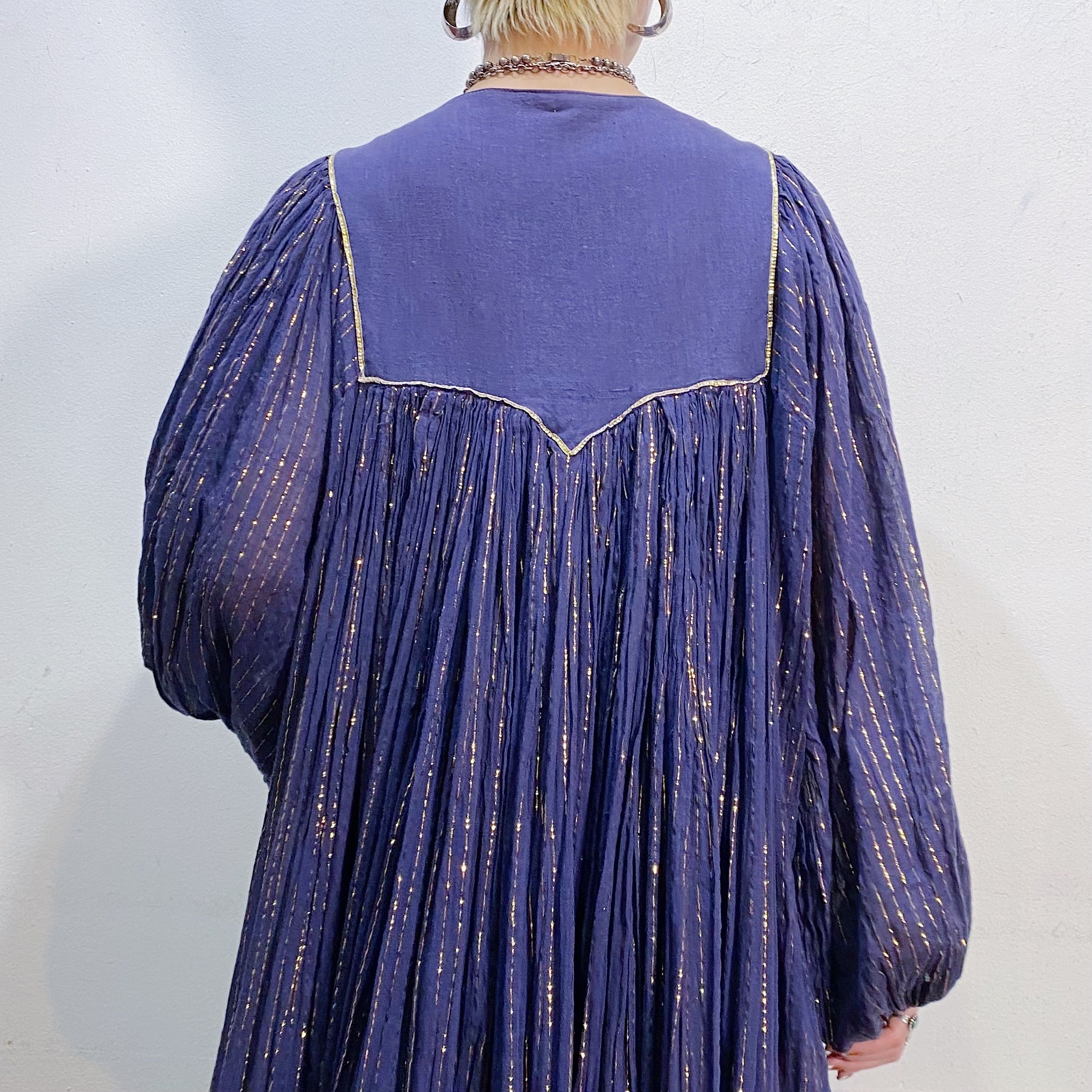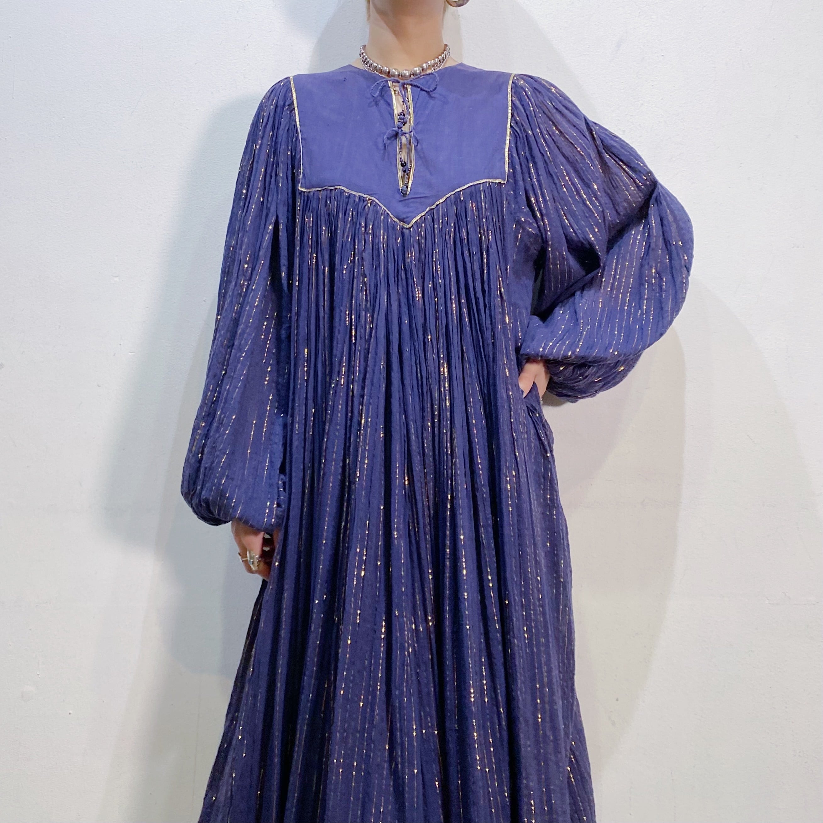 ぽわんとしたお袖にたっぷりのギャザーが入ったボリュームがスペシャルに可愛い、70年代のインド綿ワンピースです。