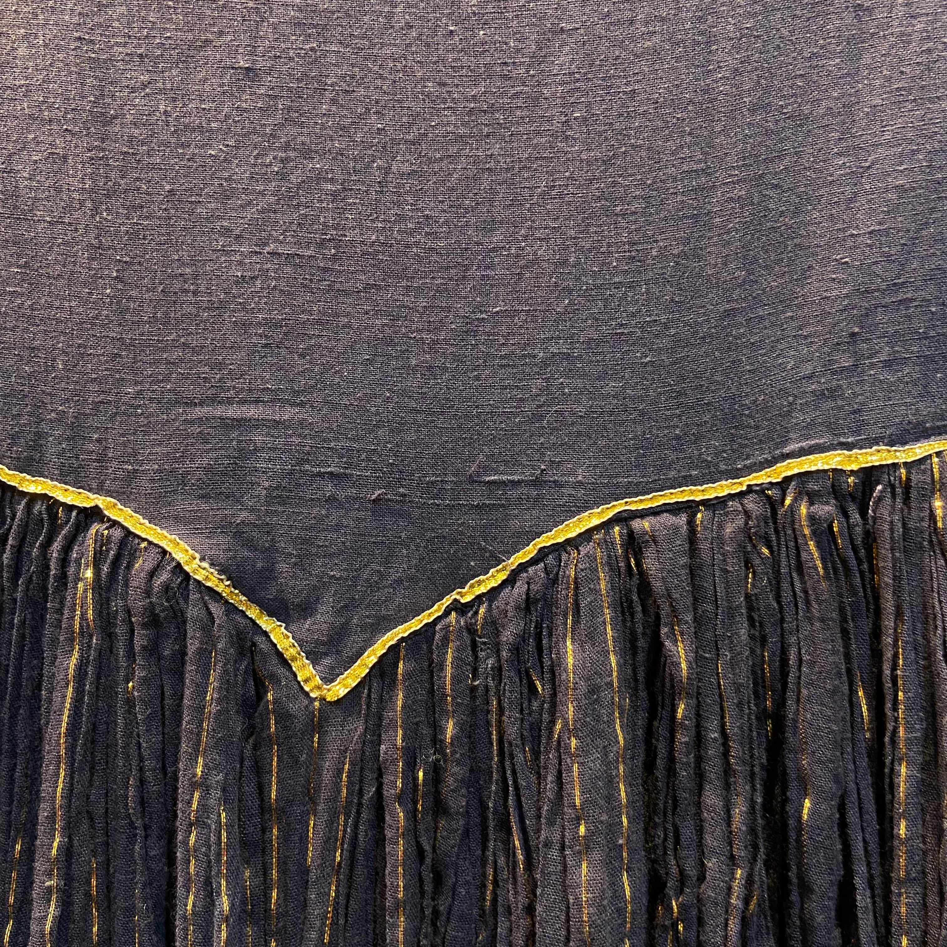 黒に近いネイビーカラーにゴールドラメ糸のツートンで、大人可愛い一枚。