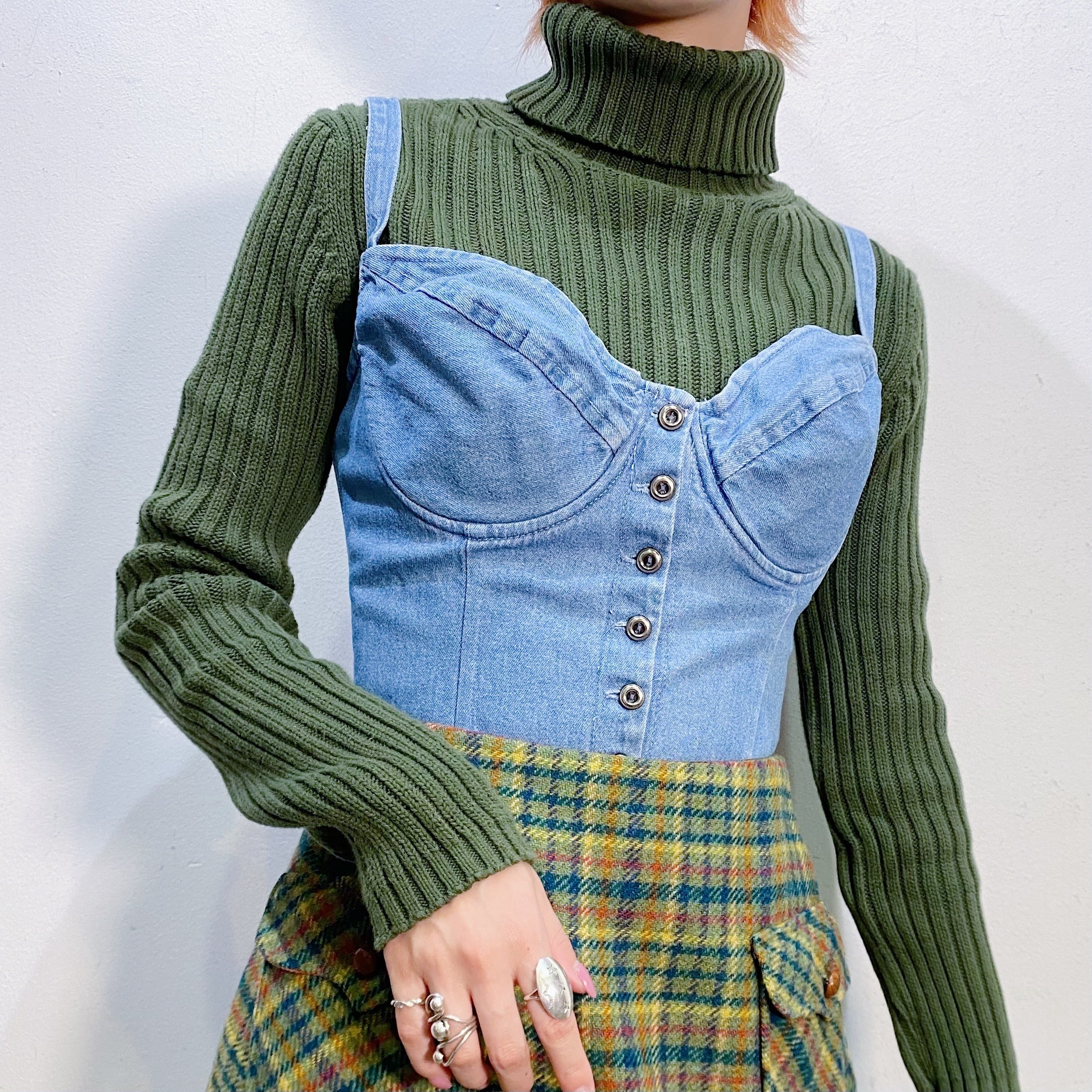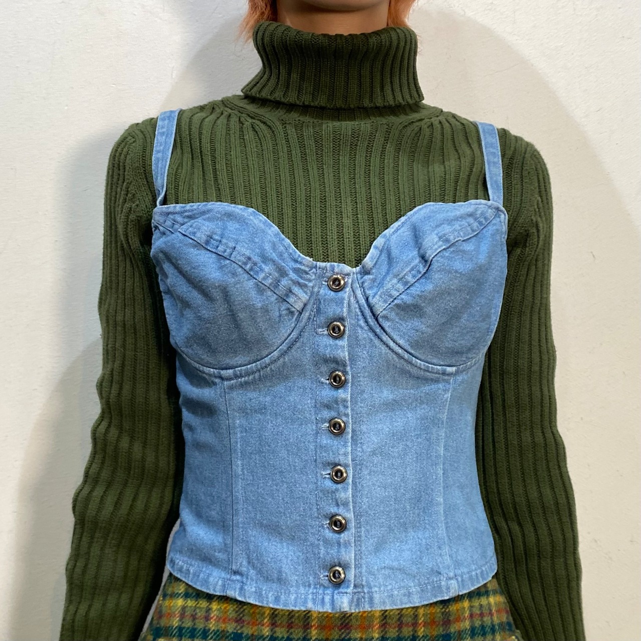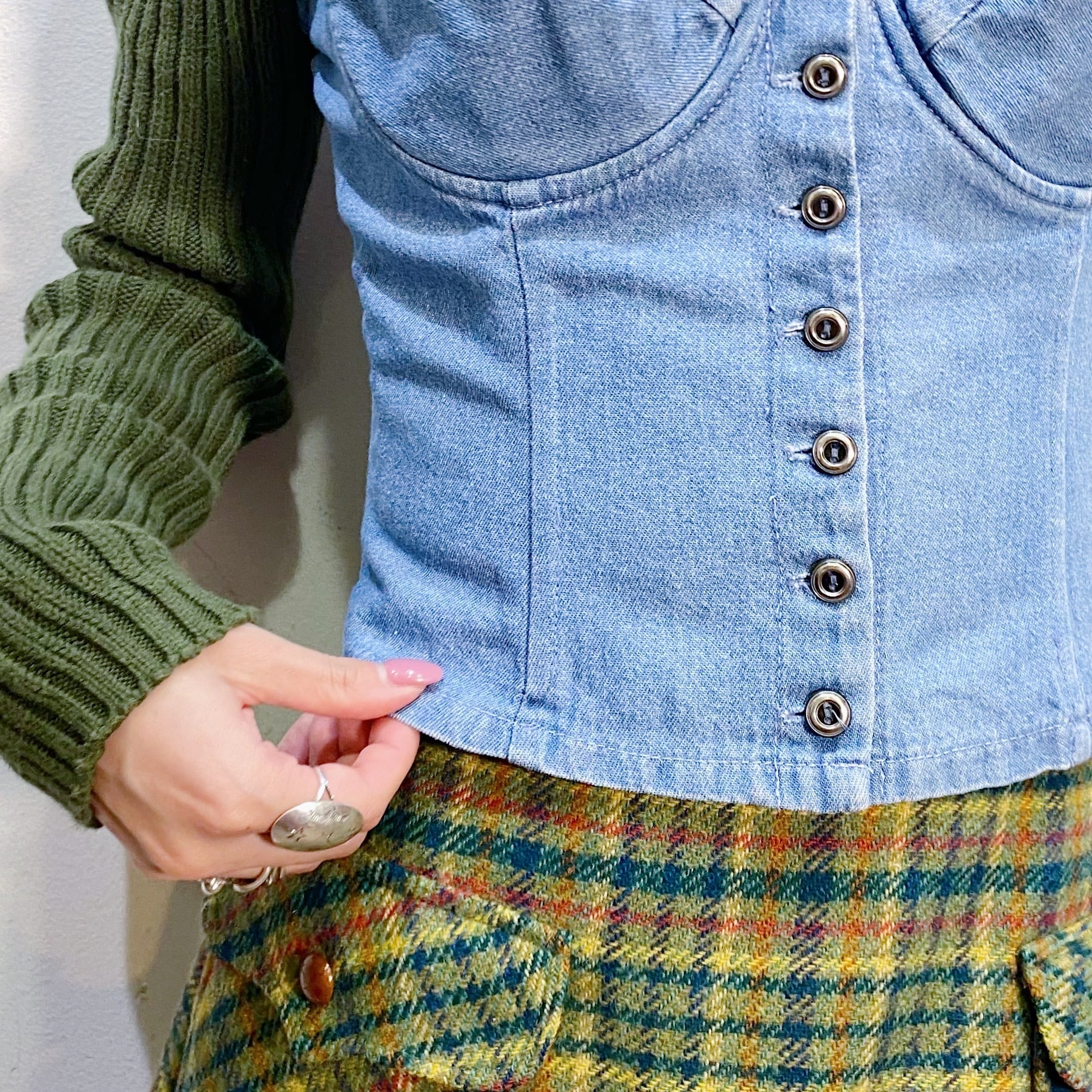 デニム地でコーディネートに取り入れやすい、80~90年代のビスチェです。