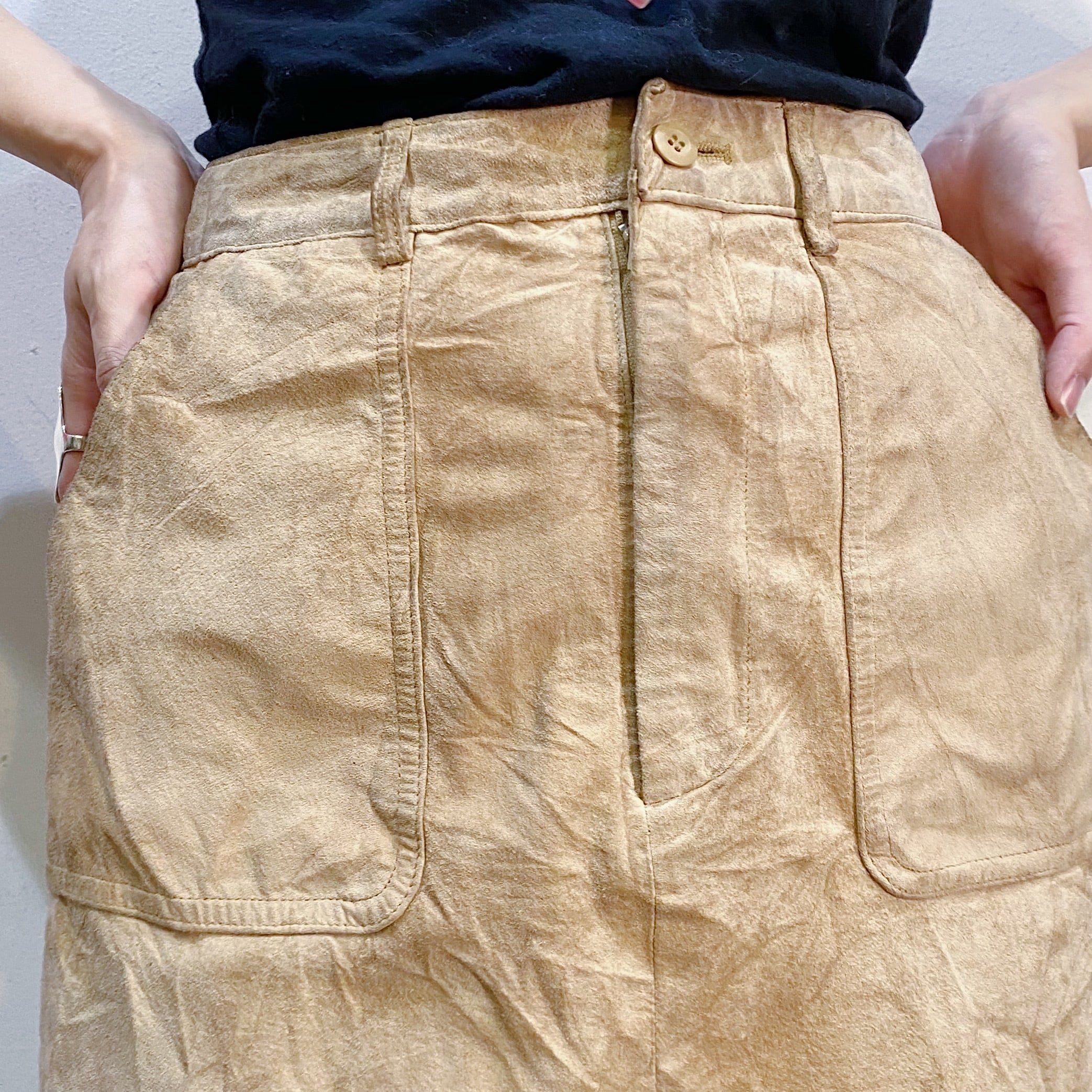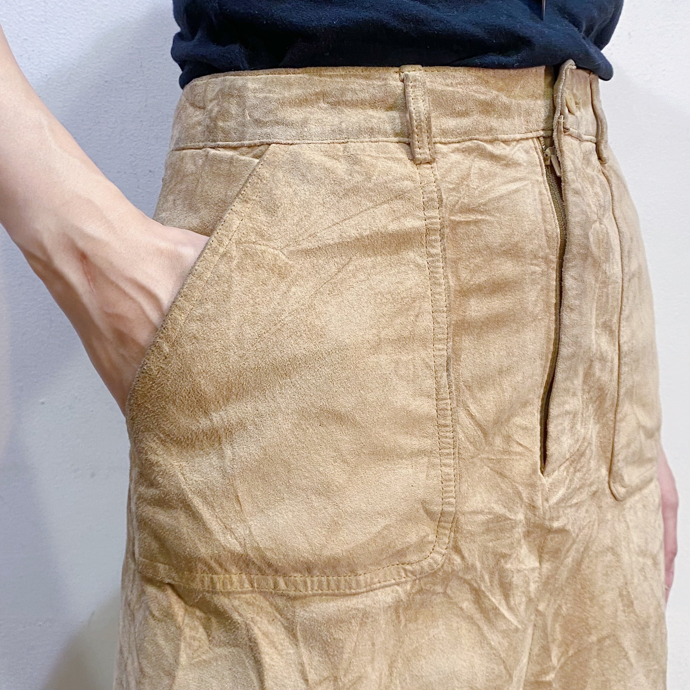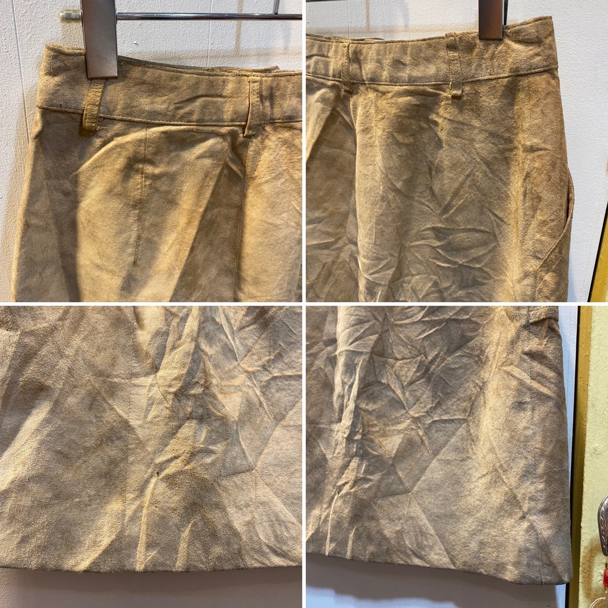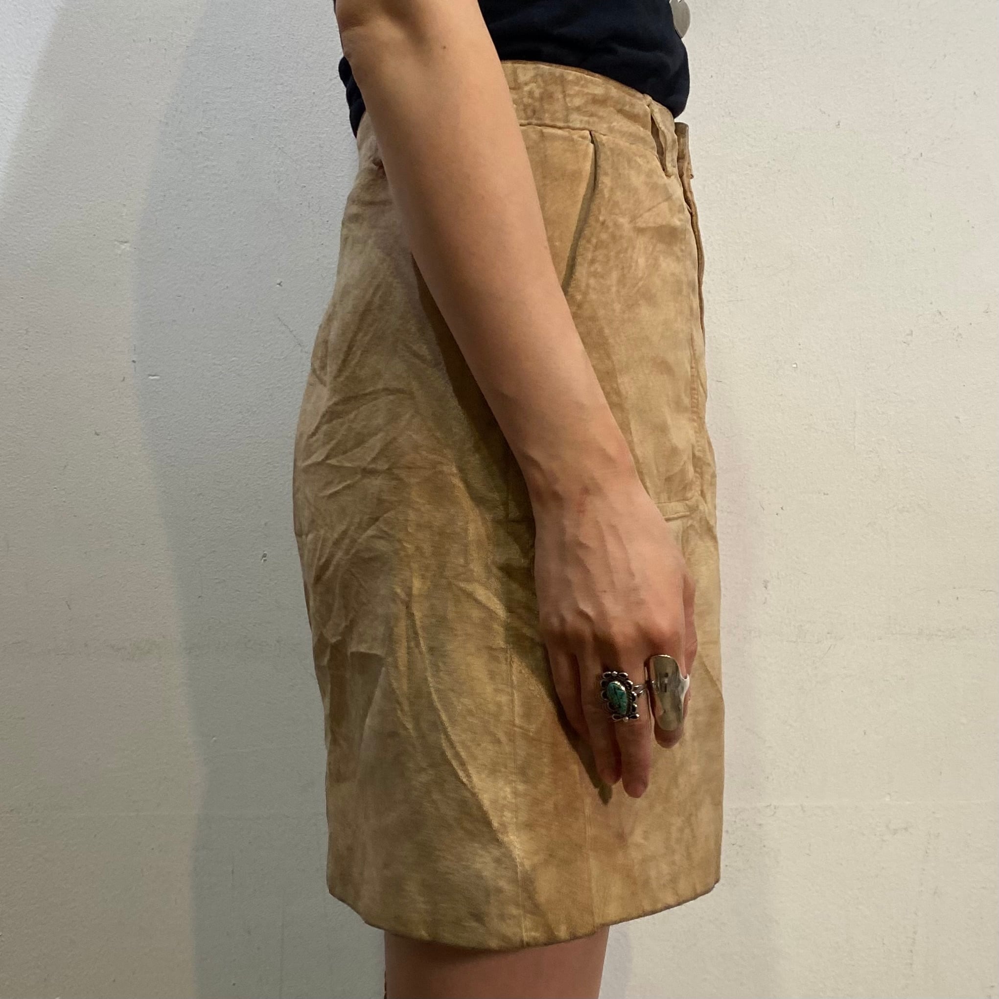 ベージュカラーで使い勝手の良い、レザーのミニスカートです。