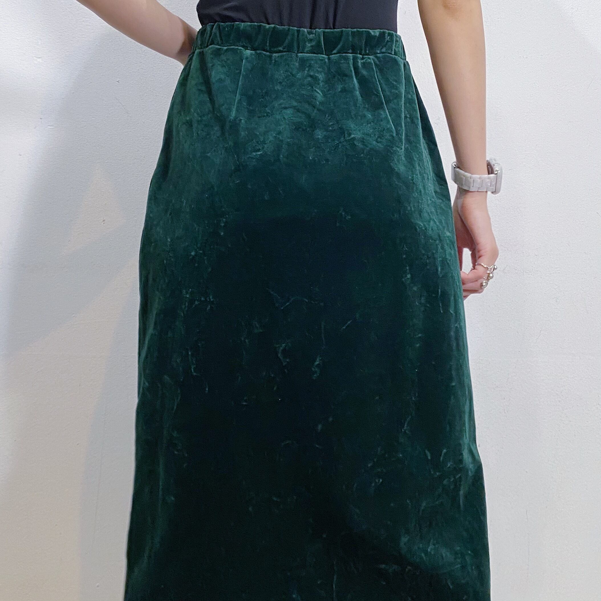 すとんとしたシルエットで使い勝手抜群のシンプルなベロアスカートです。