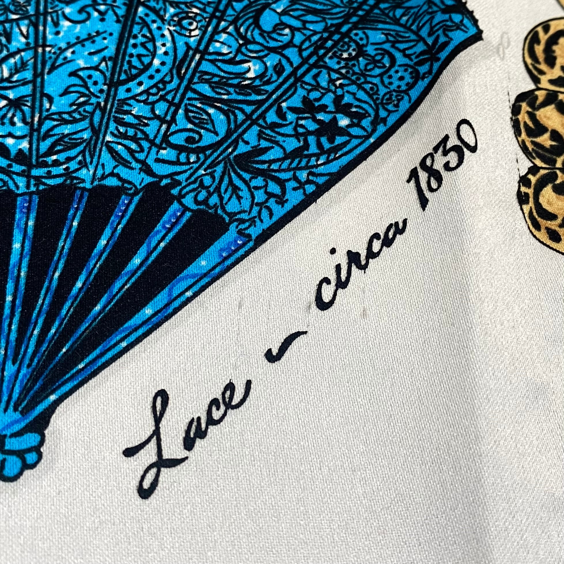 よく見るとそれぞれの時代に流通した扇子のデザインと名称、年代が掛かれていて、ちょっとした扇子図鑑になっているんです!