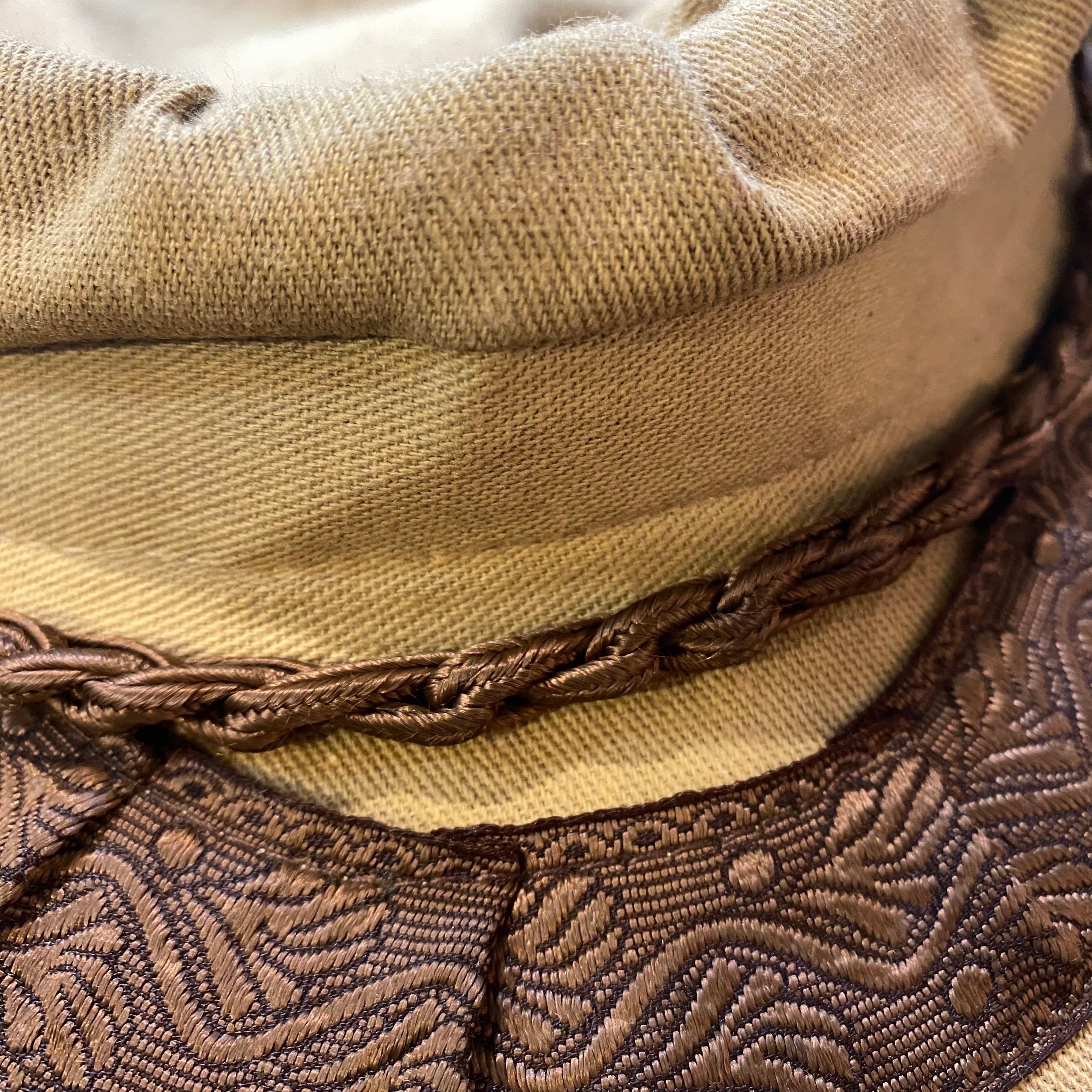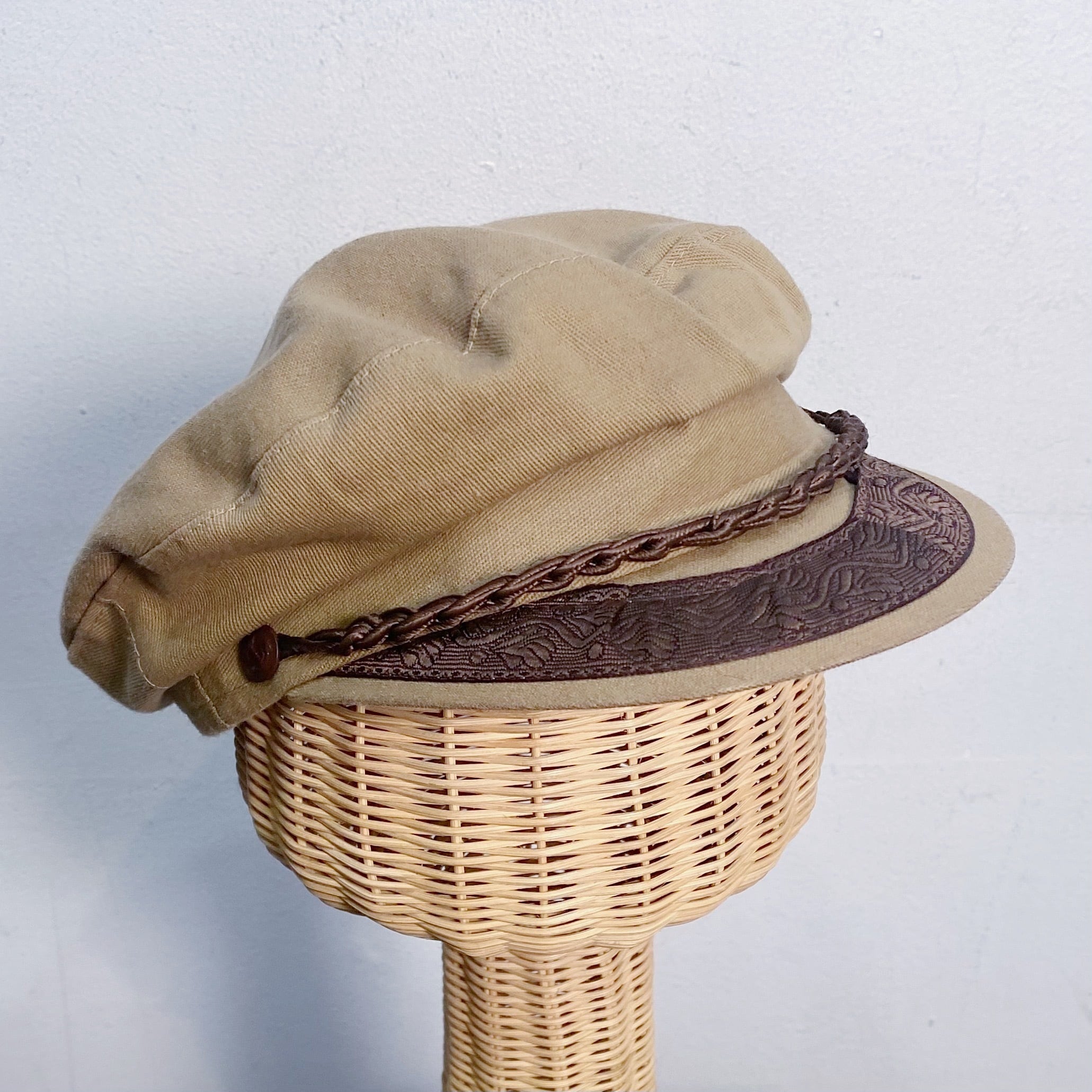 ベージュのこげ茶がアクセントになった、ギリシャハットです。