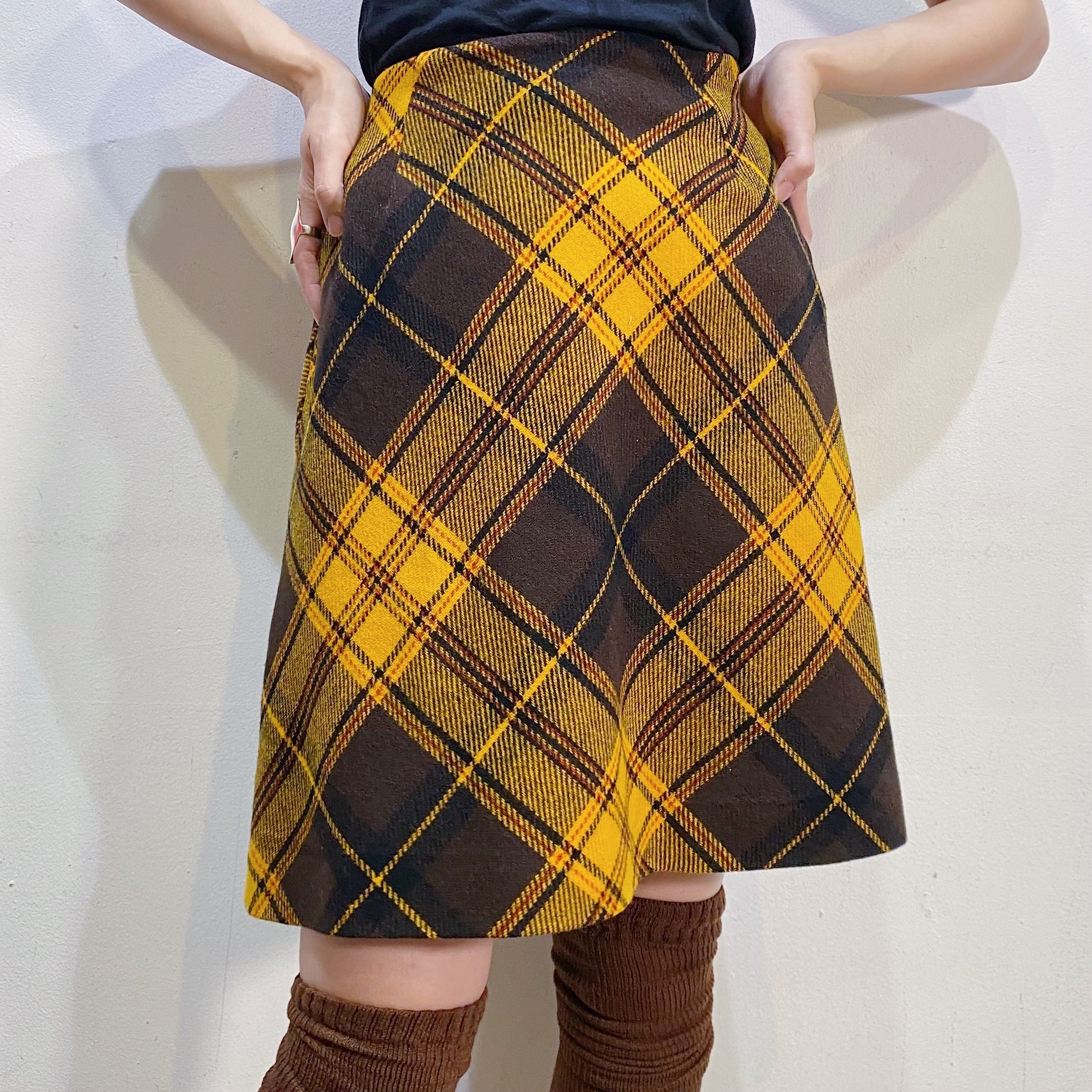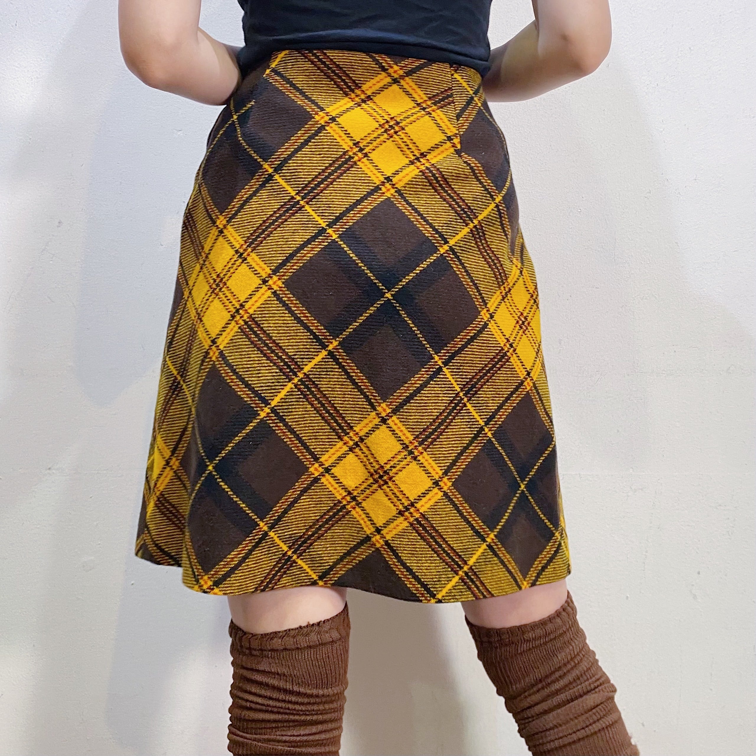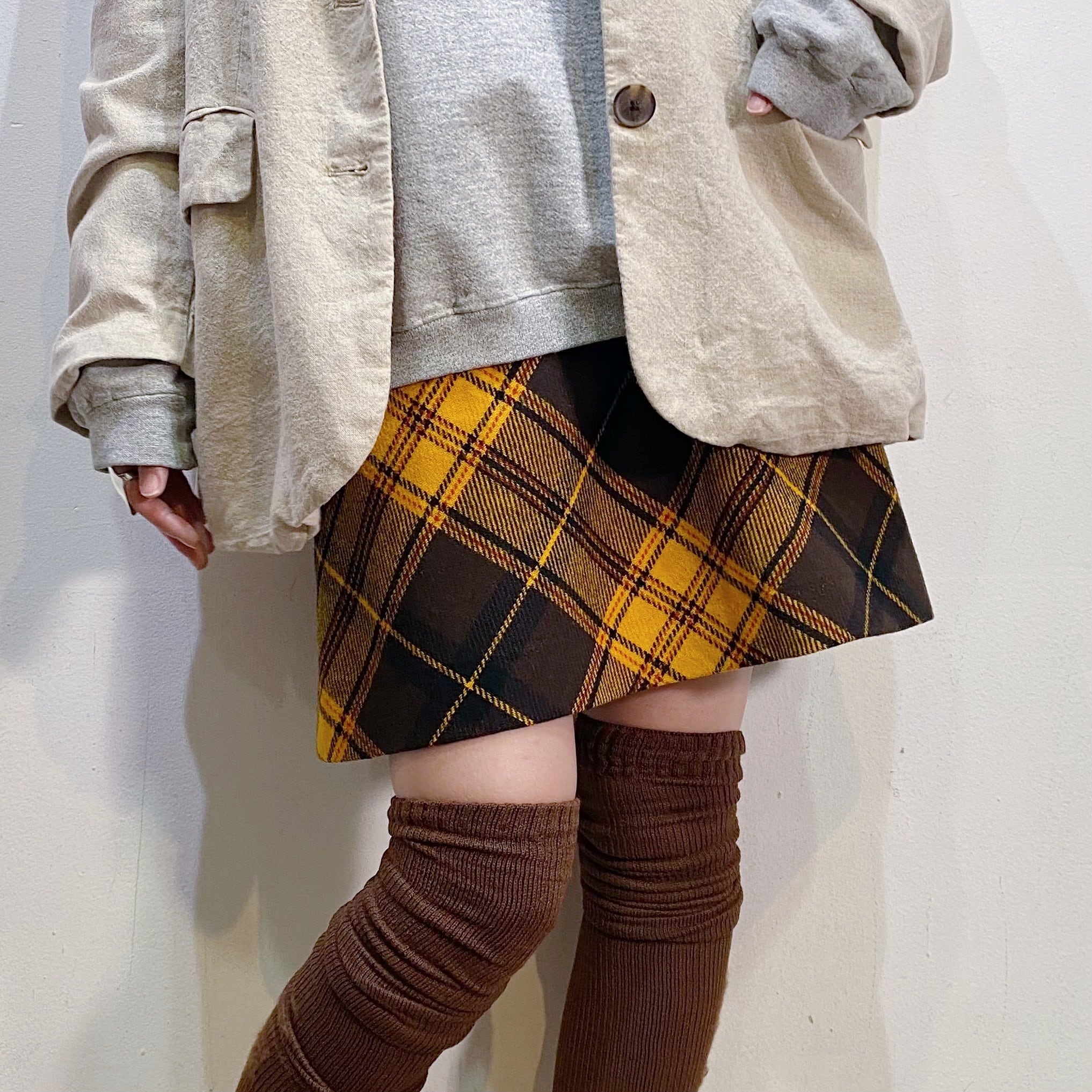 黄色とブラウンの色合いが可愛い、チェックのミニスカートです。