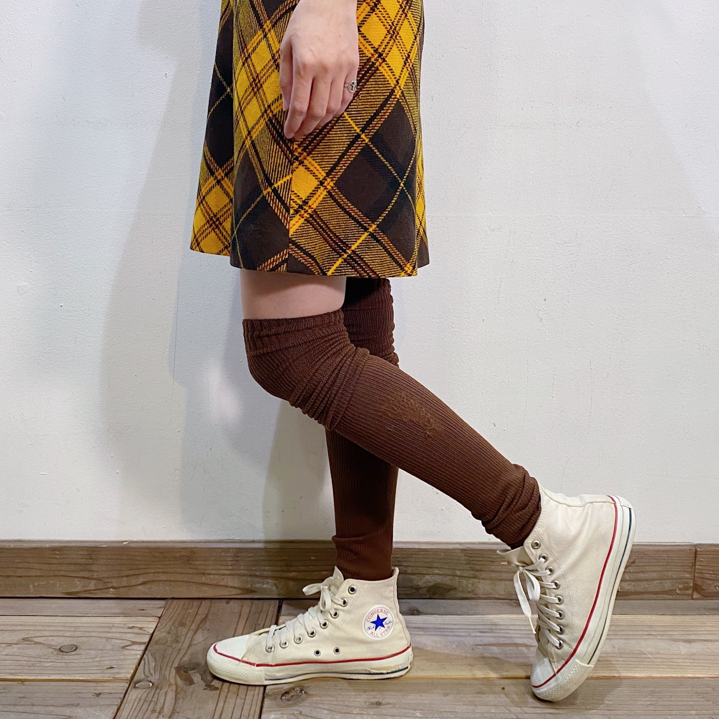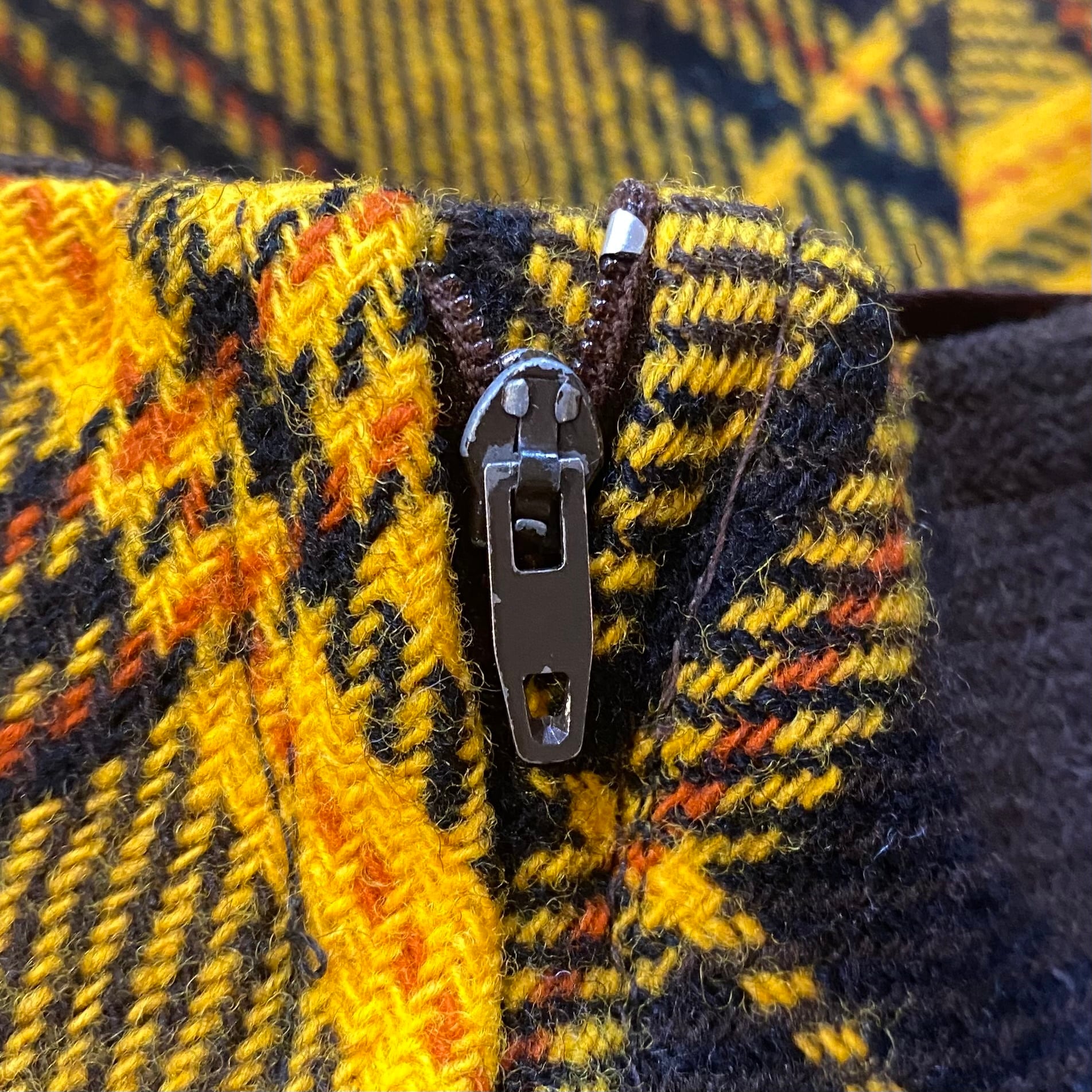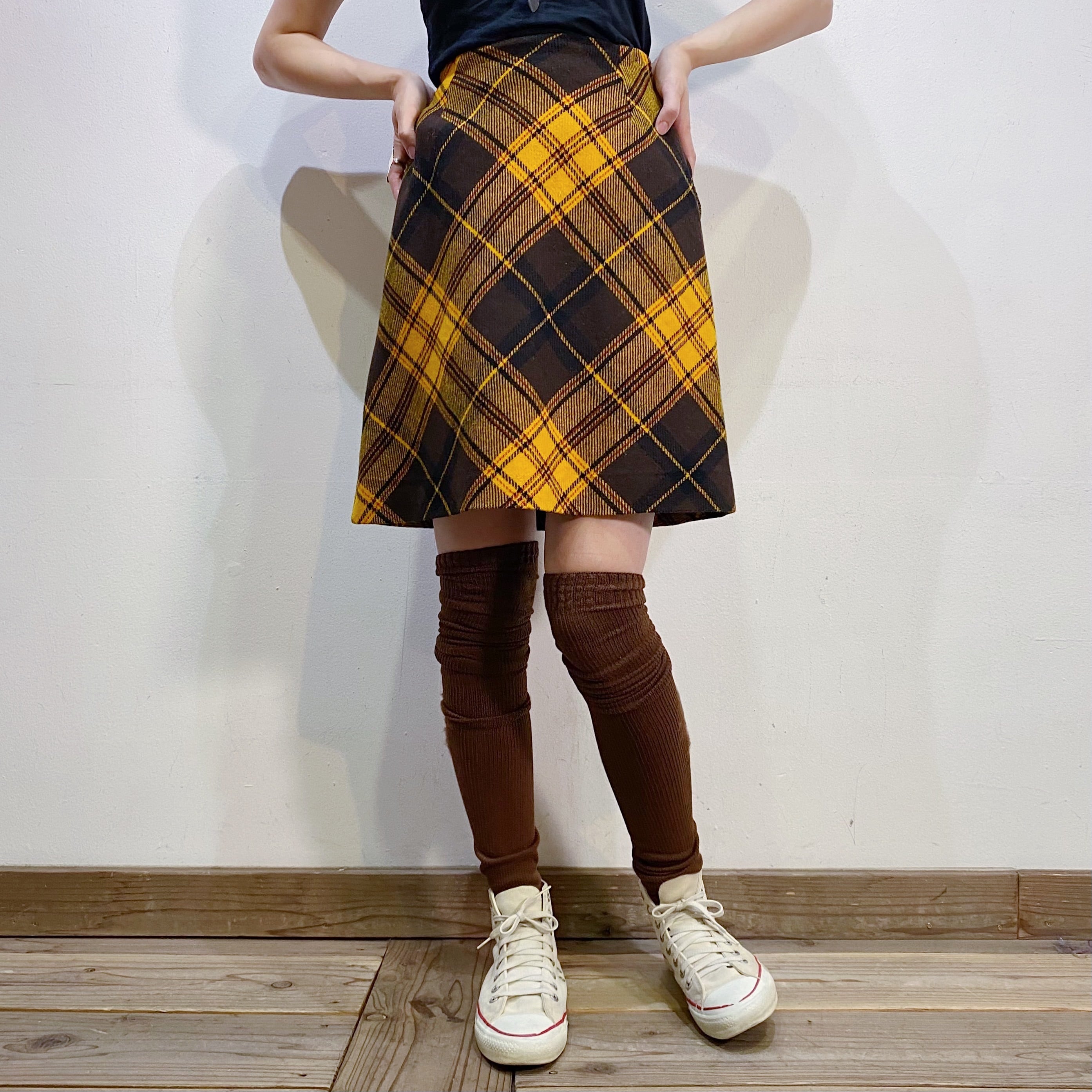黄色とブラウンの色合いが可愛い、チェックのミニスカートです。