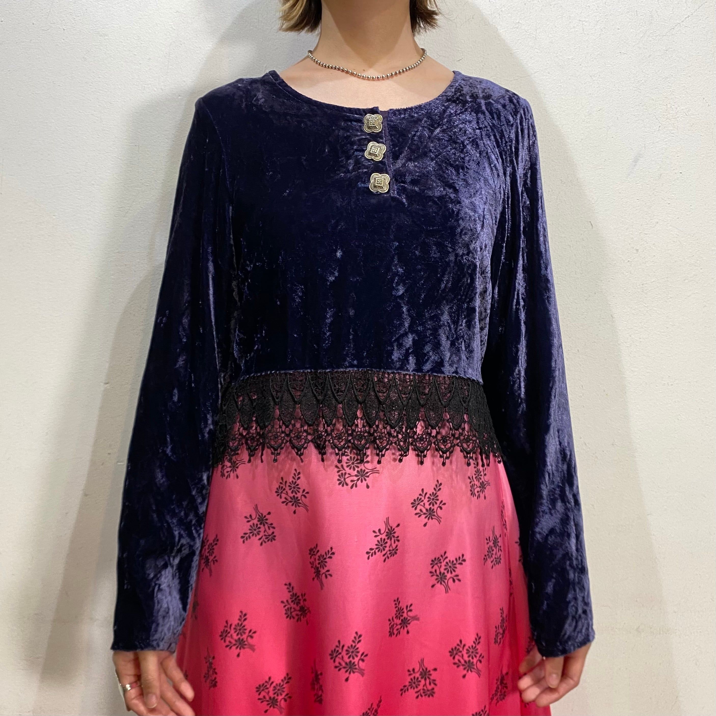紫のベロア素材に裾のレース、高級感あるコンチョボタンなど魅せるポイント盛沢山なトップスです。