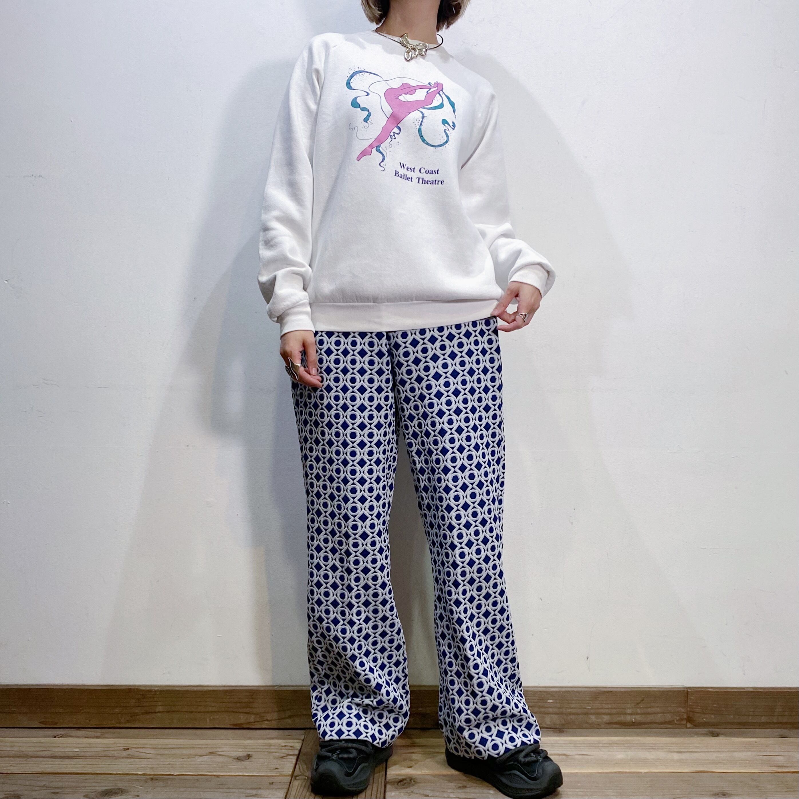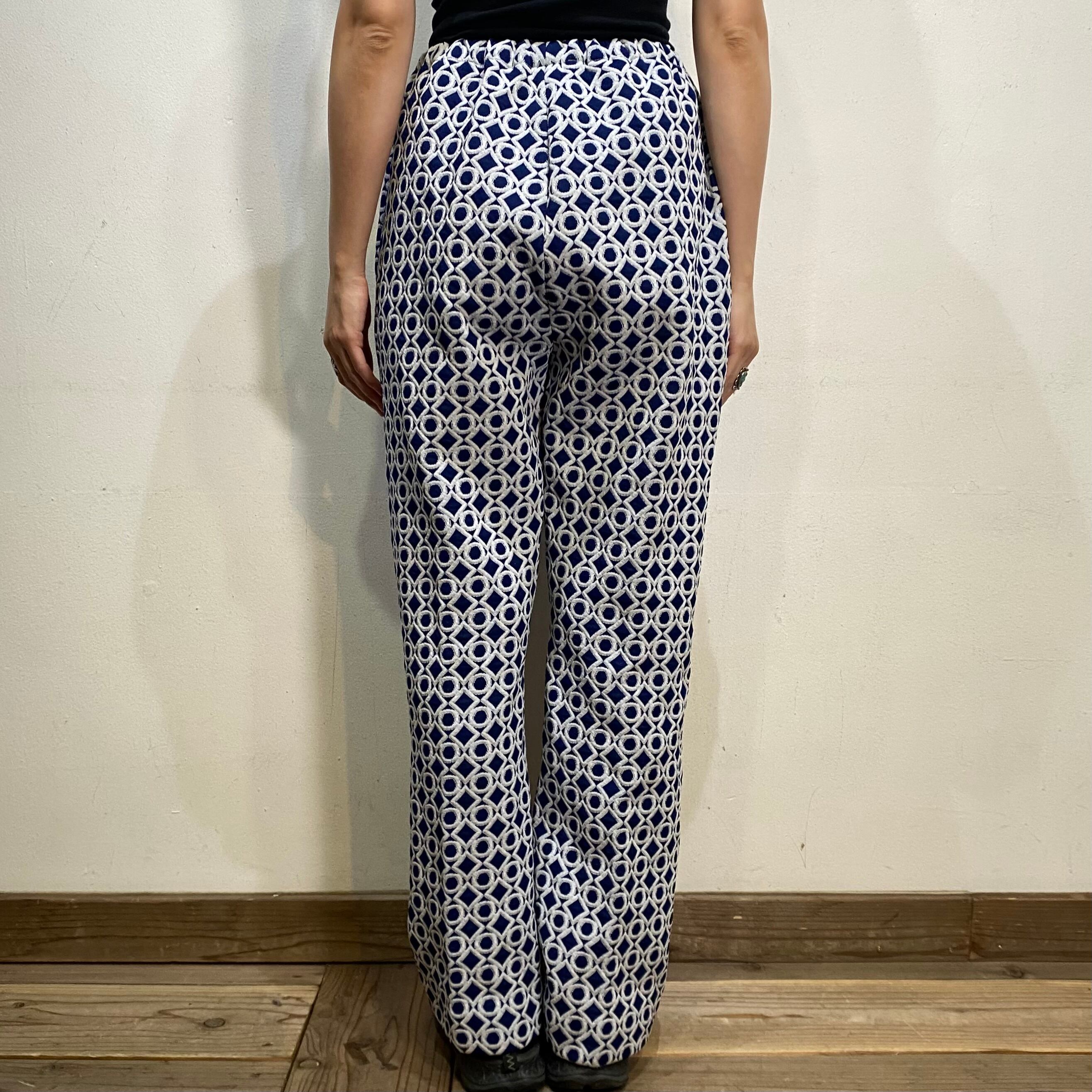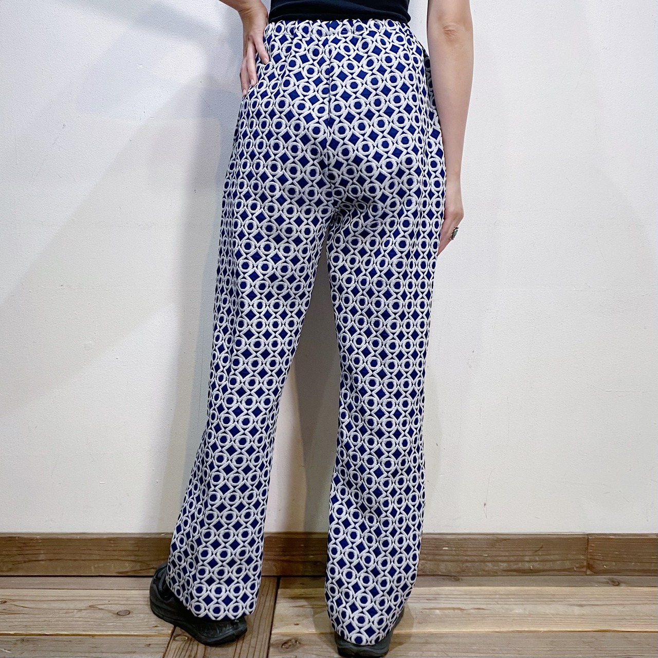 丸とひし形がぎゅっとプリントされた、70年代のパンツです。