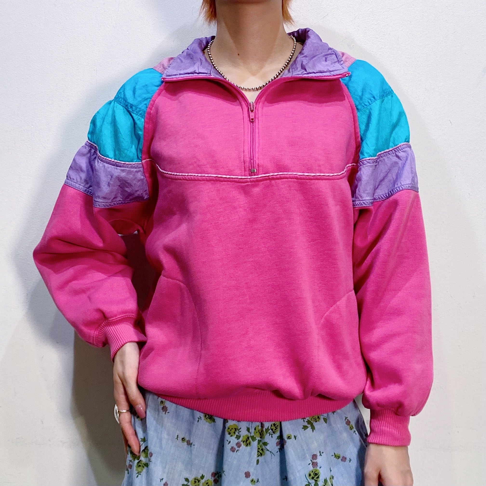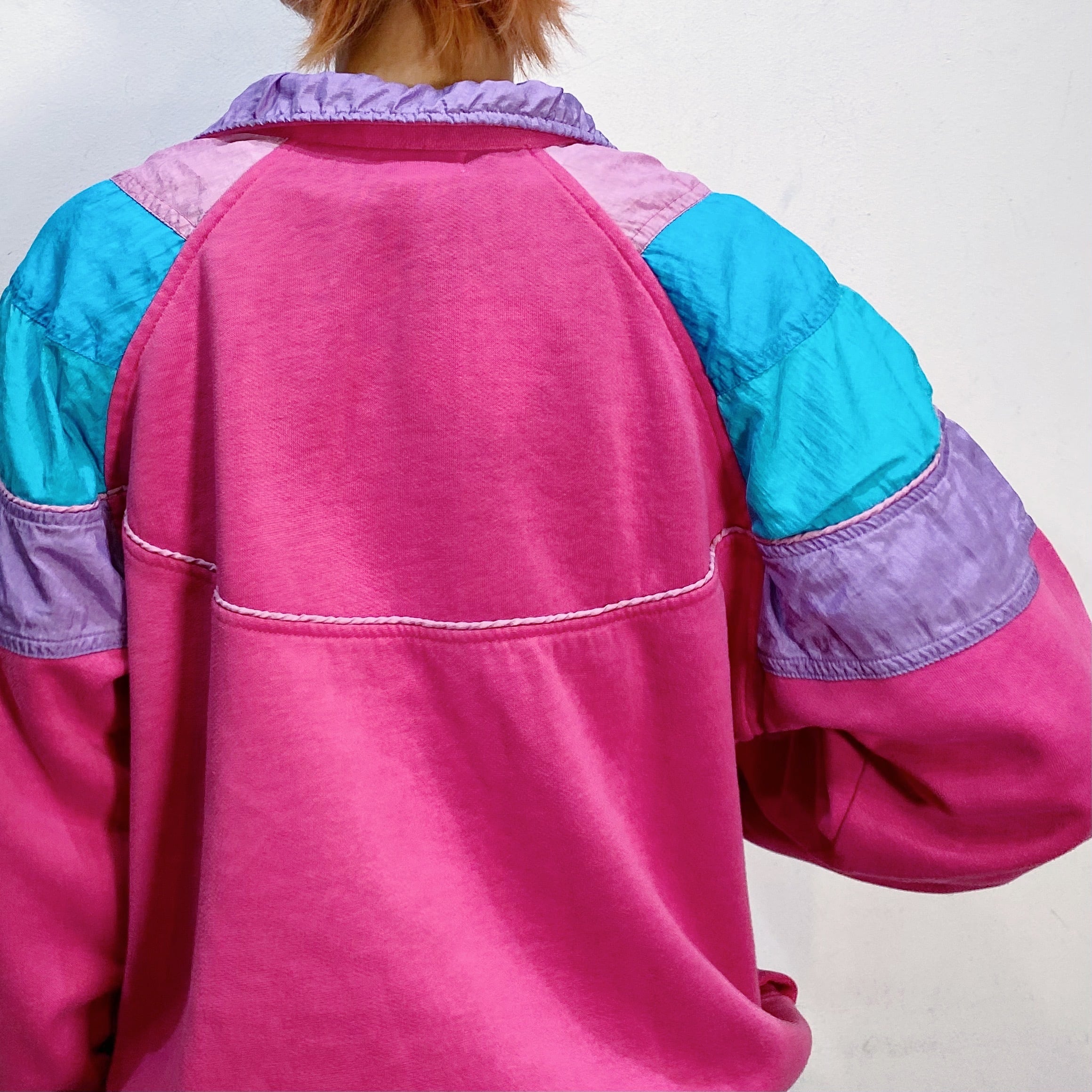 ピンクにブルーやパープルなどの色合いが可愛い、80年代のスウェットシャツです。