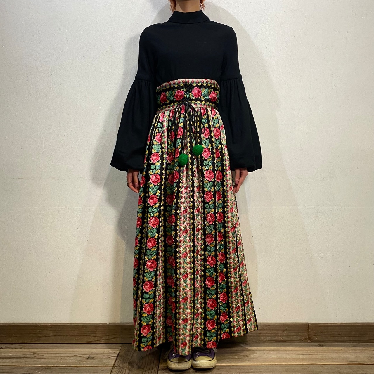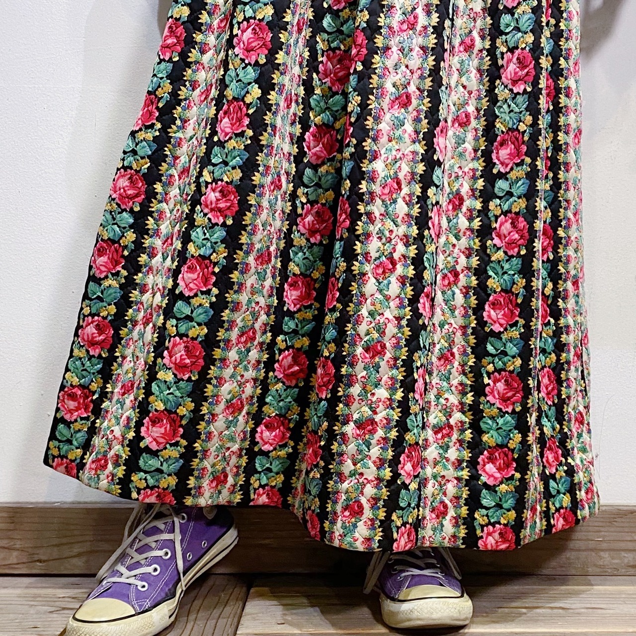 お花のキルティングが最高に可愛い、70年代のロングワンピースです。