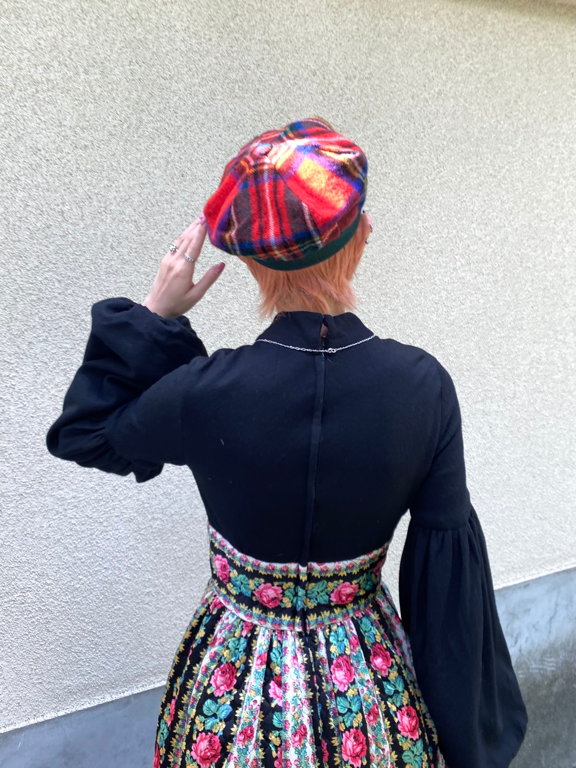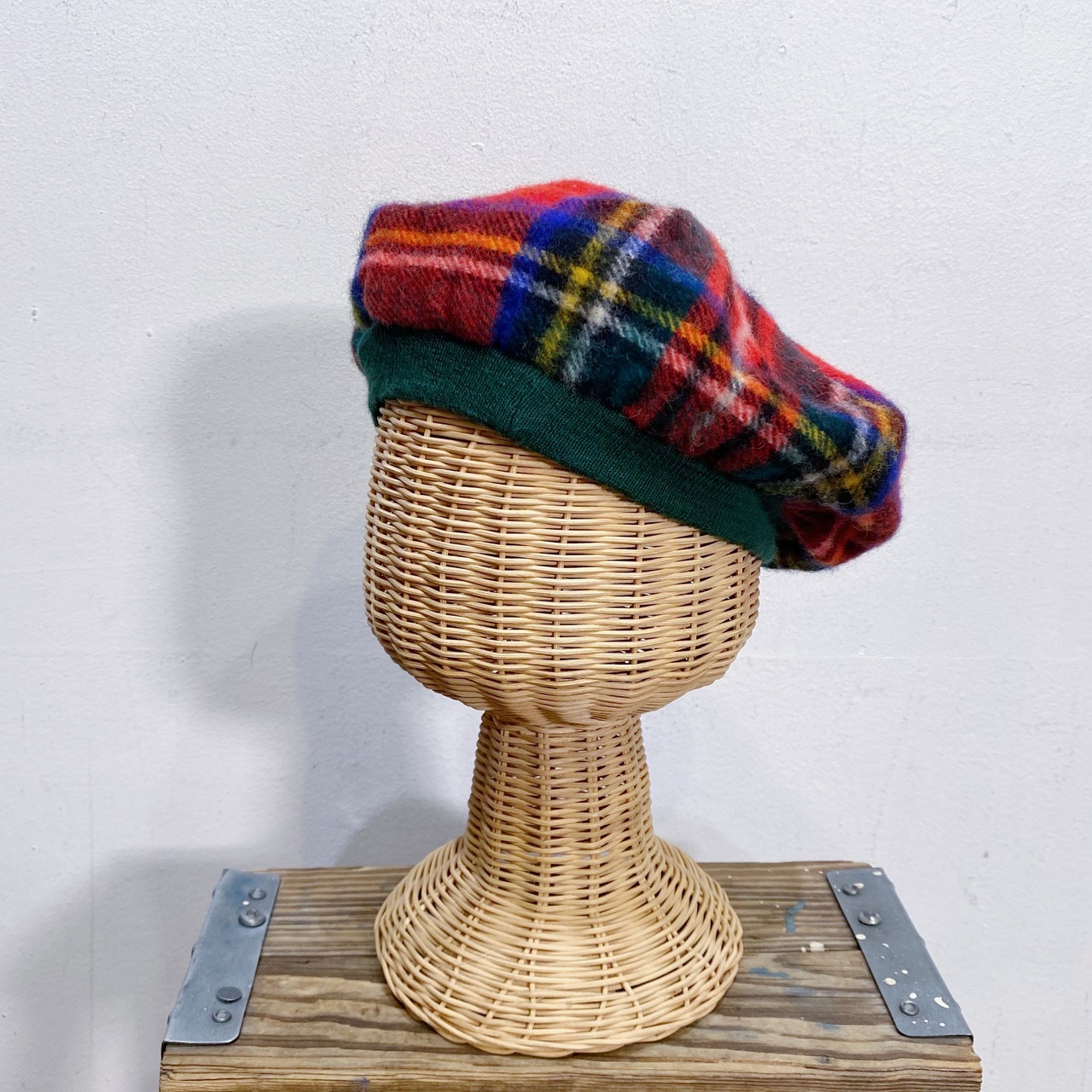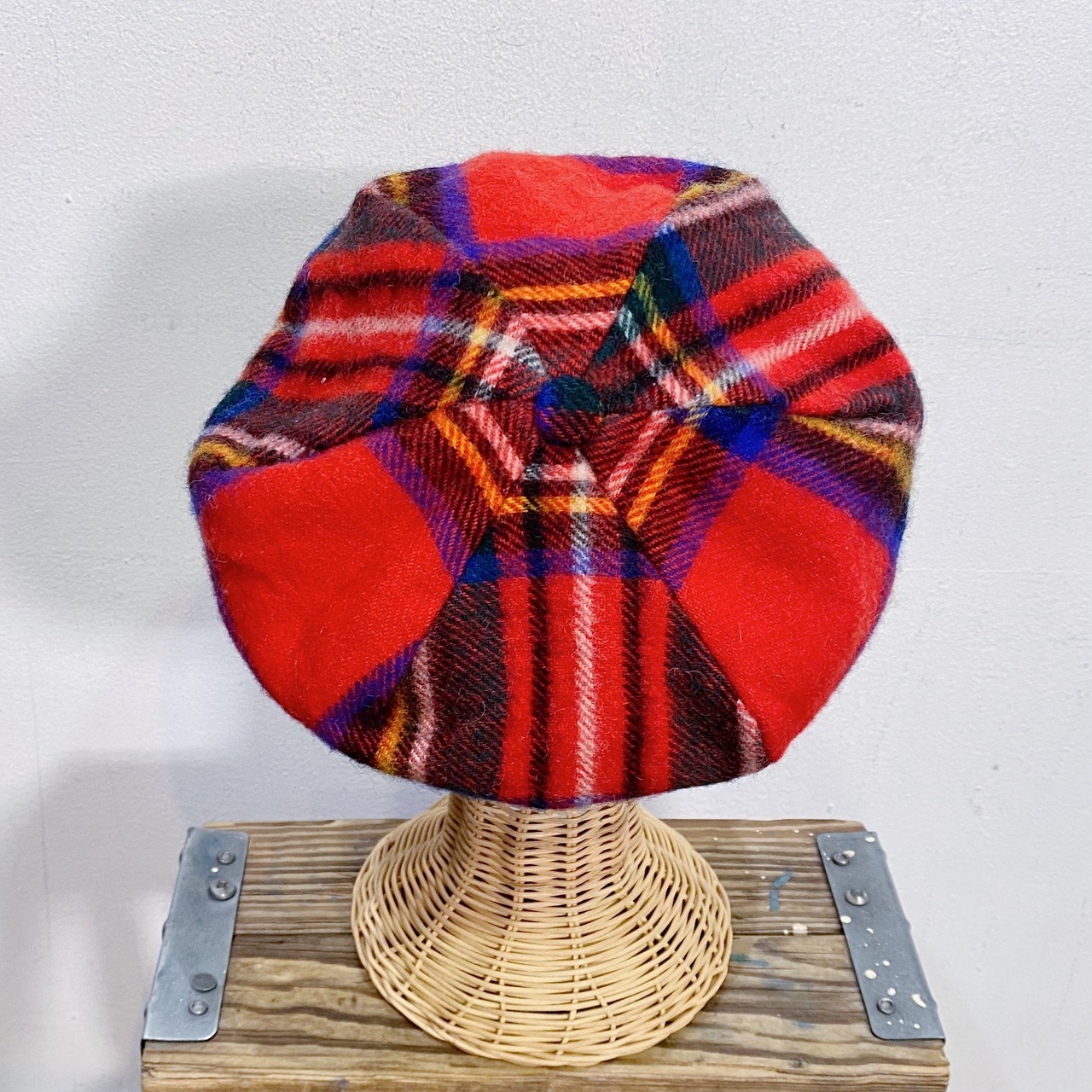 60s red plaid wool beret