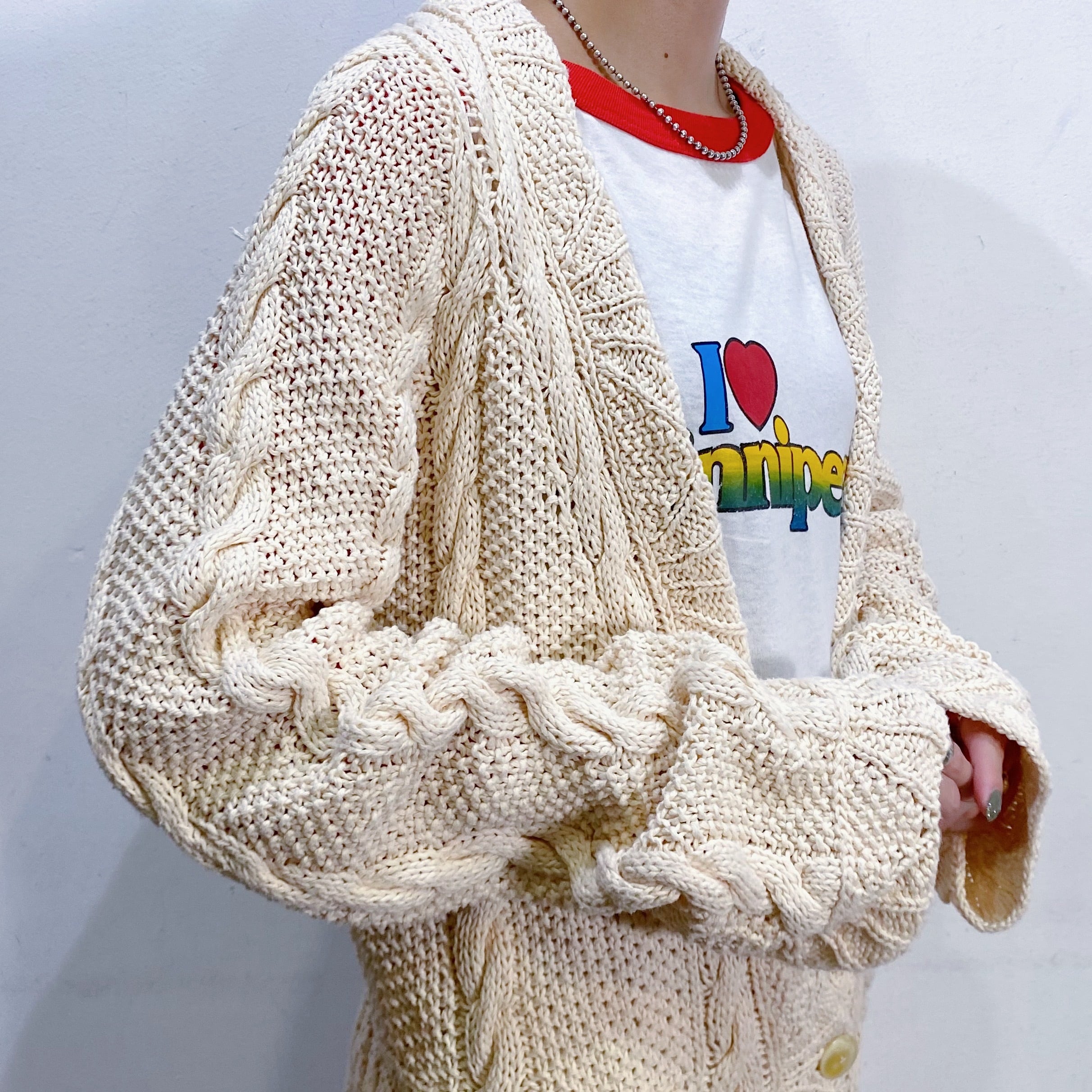 ホワイトカラーで着こなしやすい、ラミーコットン地のカーディガンです。