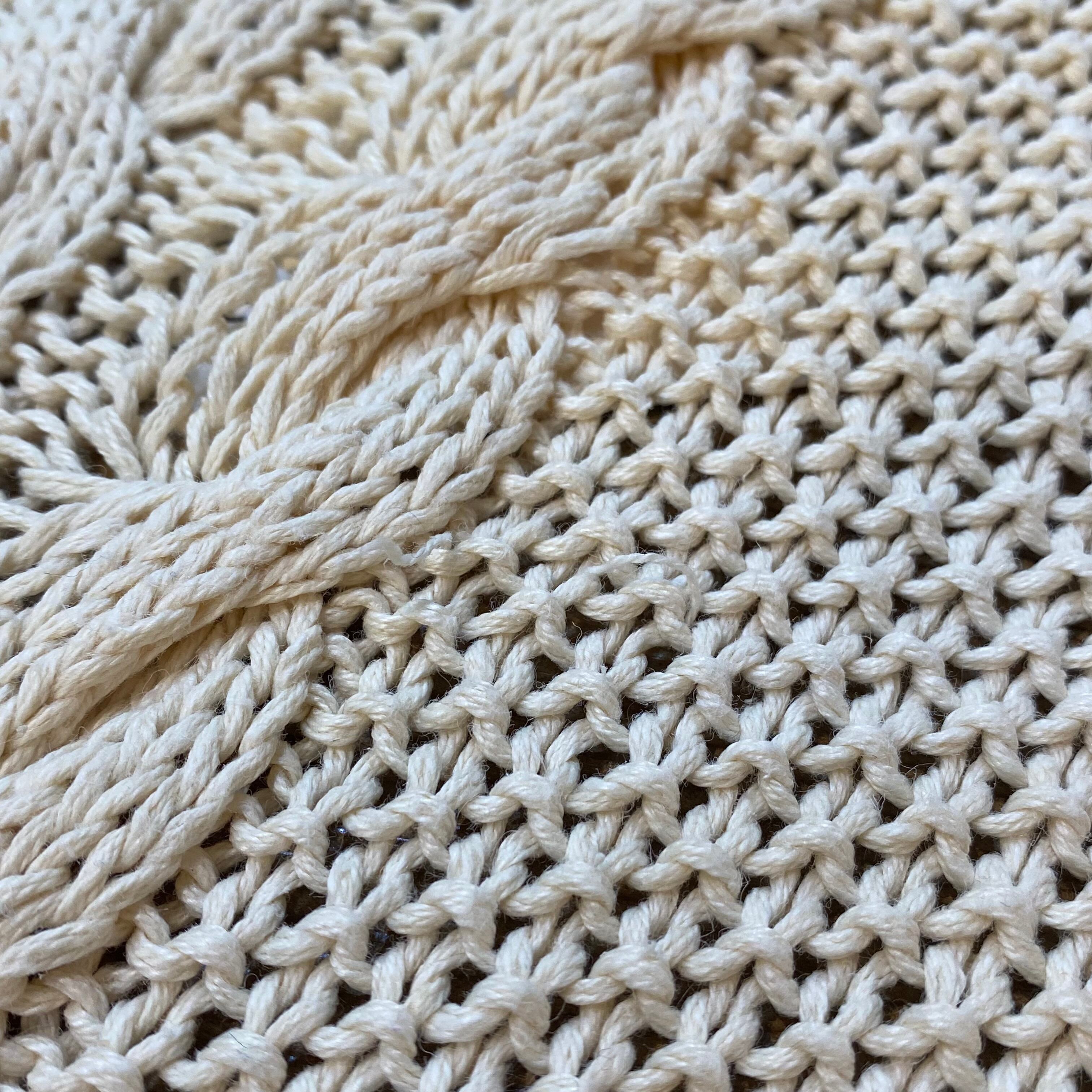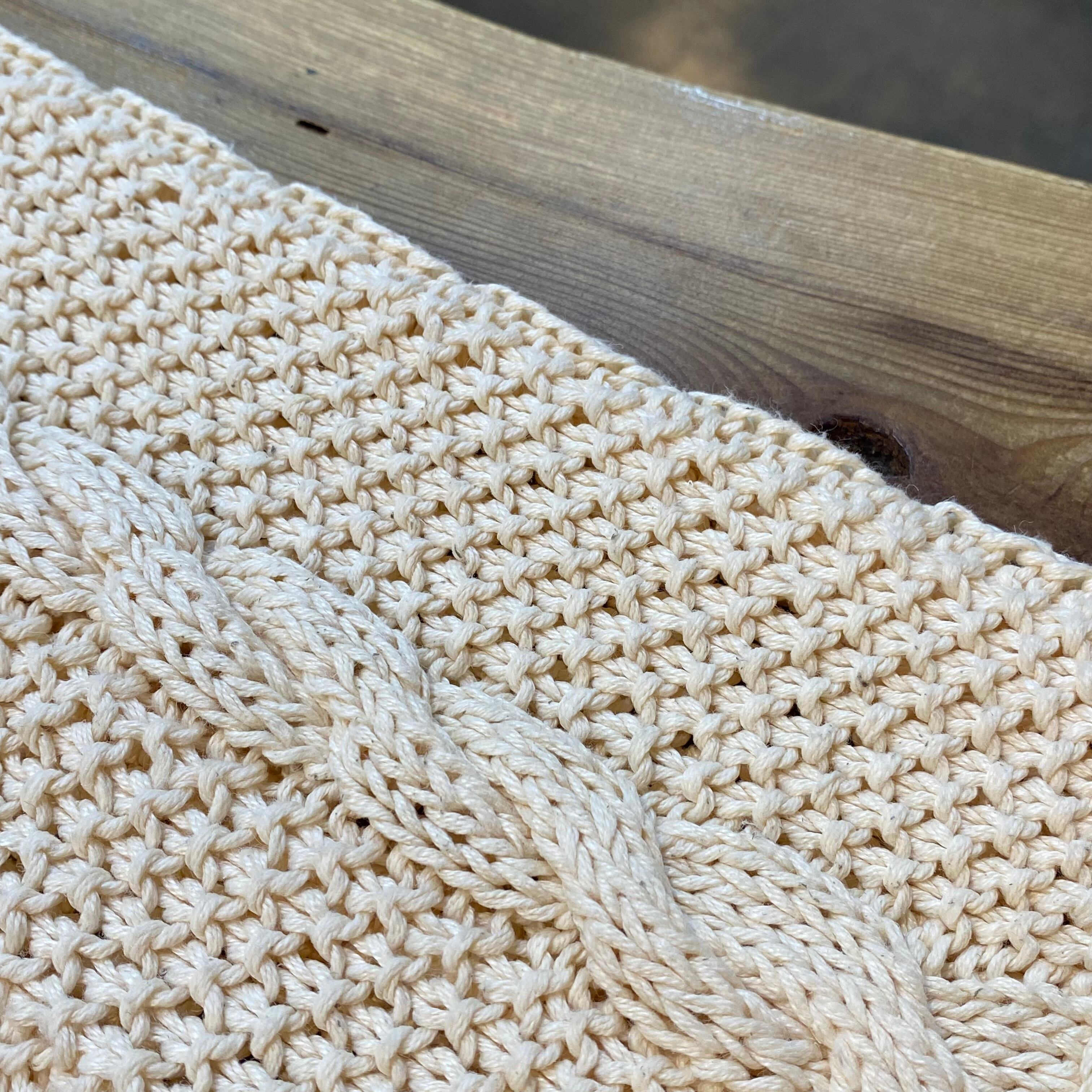 編み模様も可愛く、お尻が隠れるほどのロング丈なところも嬉しいですね。