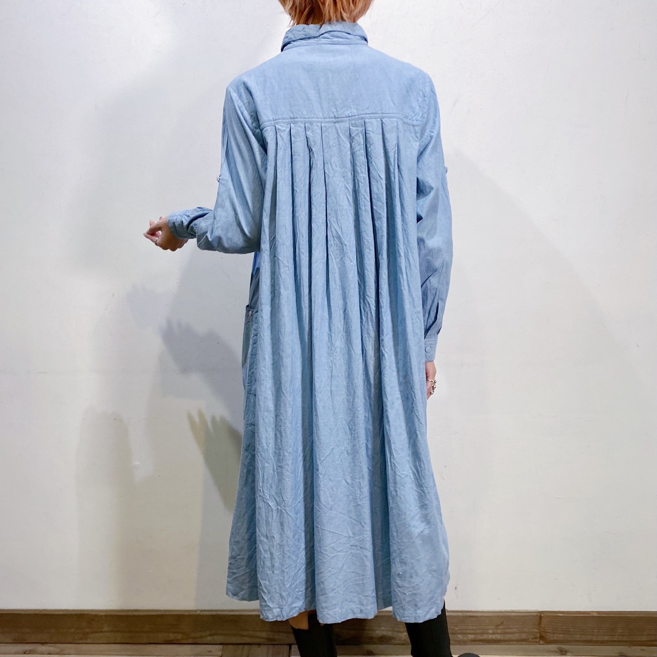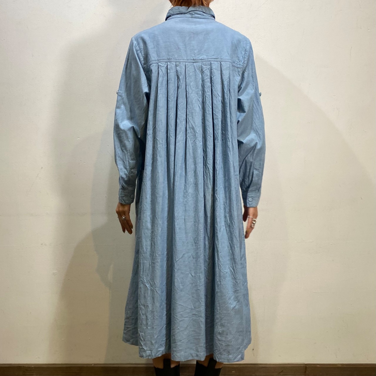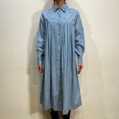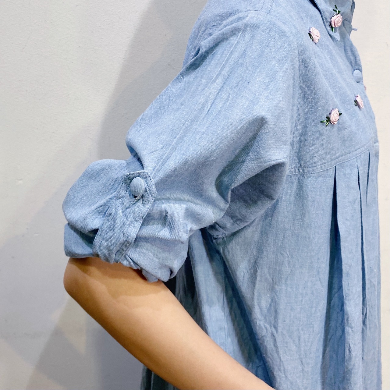 シャンブレー地に立体的なお花のモチーフが可愛い、80年代のシャツワンピースです。