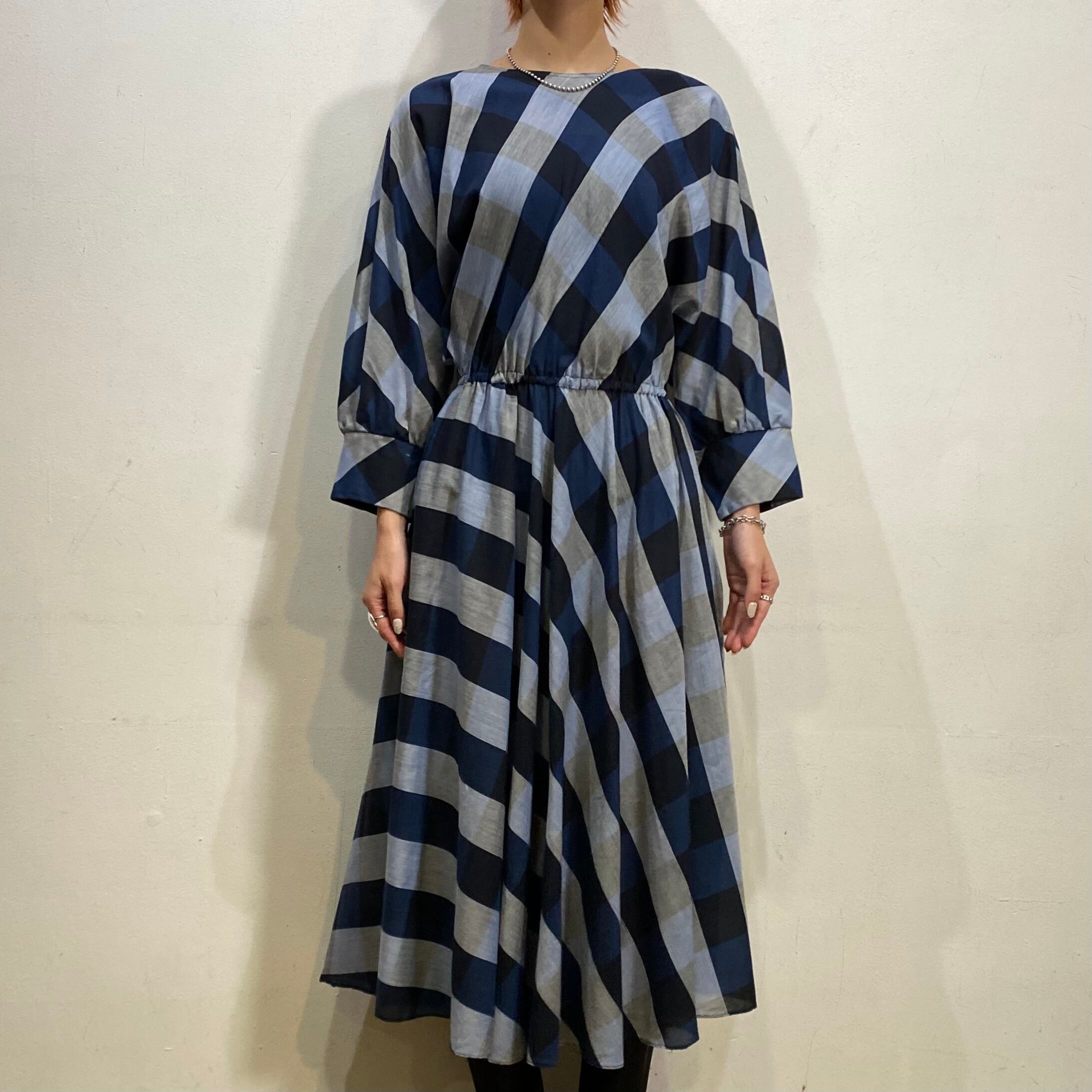 ネイビーやサックスブルーなどの色合わせが可愛い、80年代のチェックワンピースです。