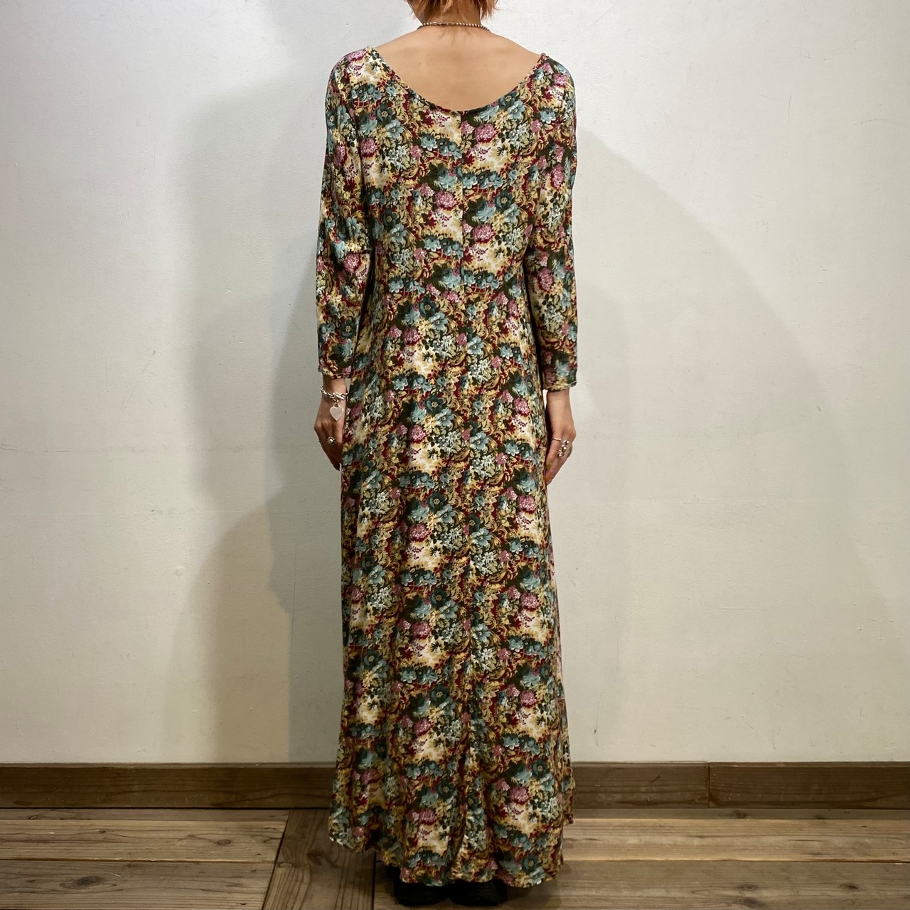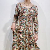 びっしりとお花がプリントされた、80年代の長袖ワンピースです。