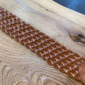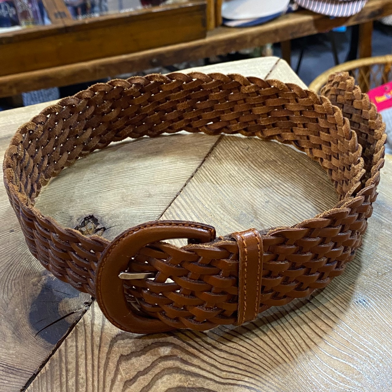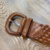 ブラウンカラーでコーディネートに取り入れやすい、レザーのベルトです。