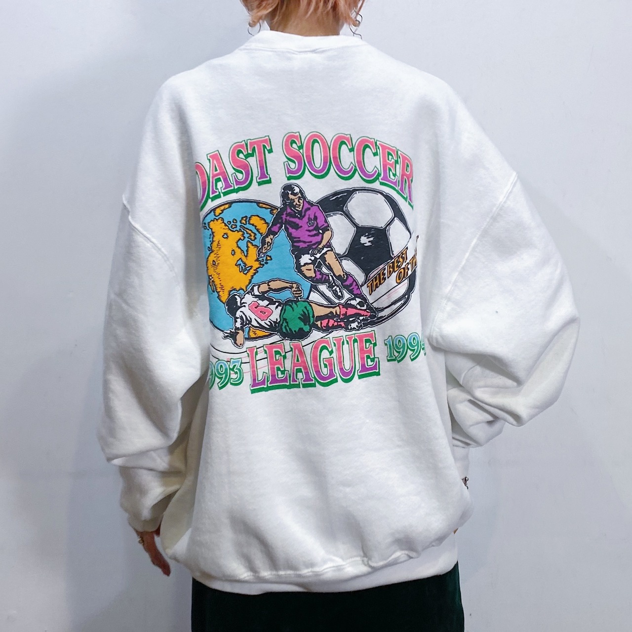 大きなネオンカラーのバックプリントが可愛い、90年代のスウェットシャツです。