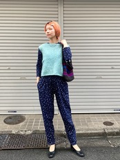 着用写真のようにベストを重ねたり、インナーに大きな襟付きのブラウスやハイネックなどをレイヤードしてもまた違った印象で楽しめますよ。