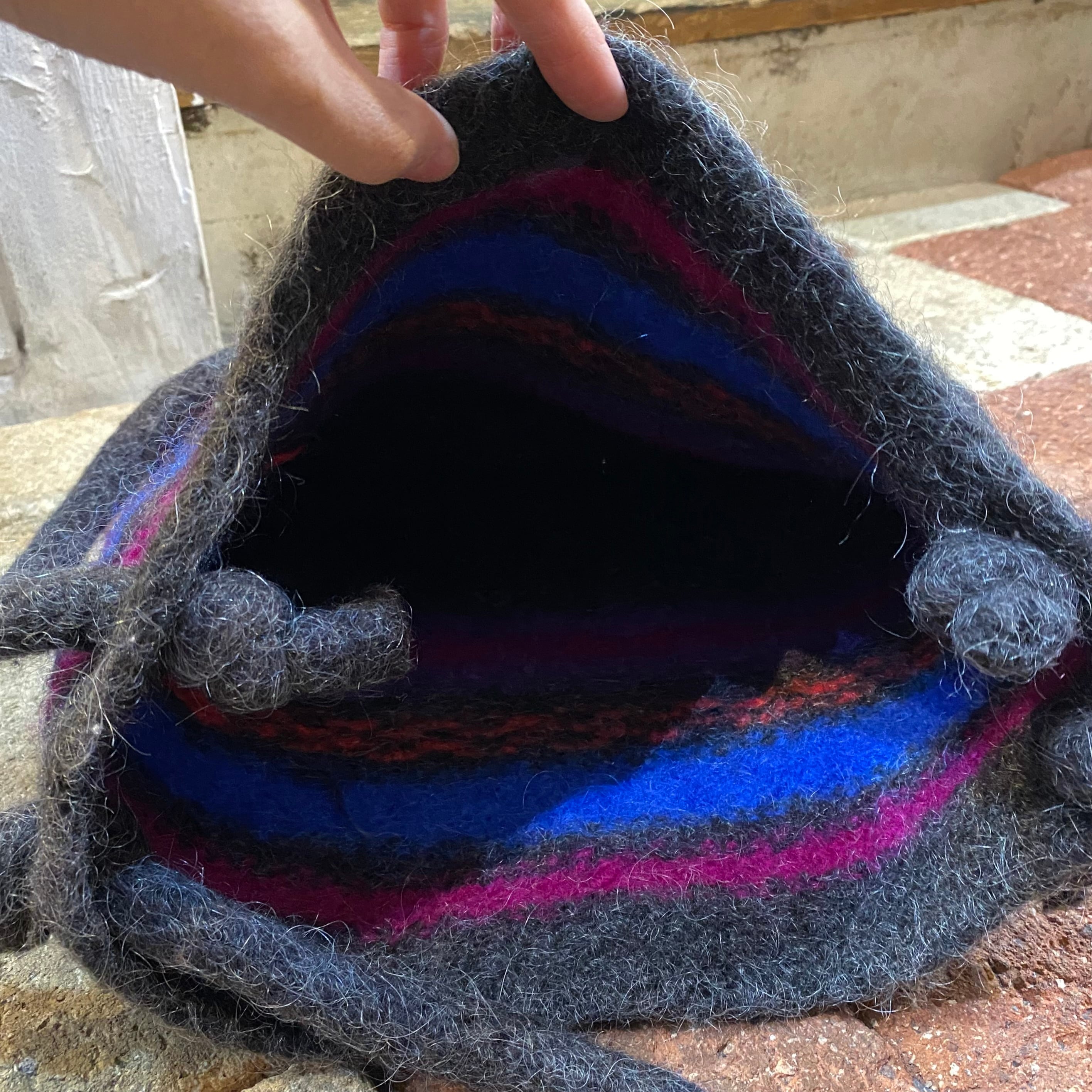 羊毛フェルトを用いて作られた、ハンドバッグです。