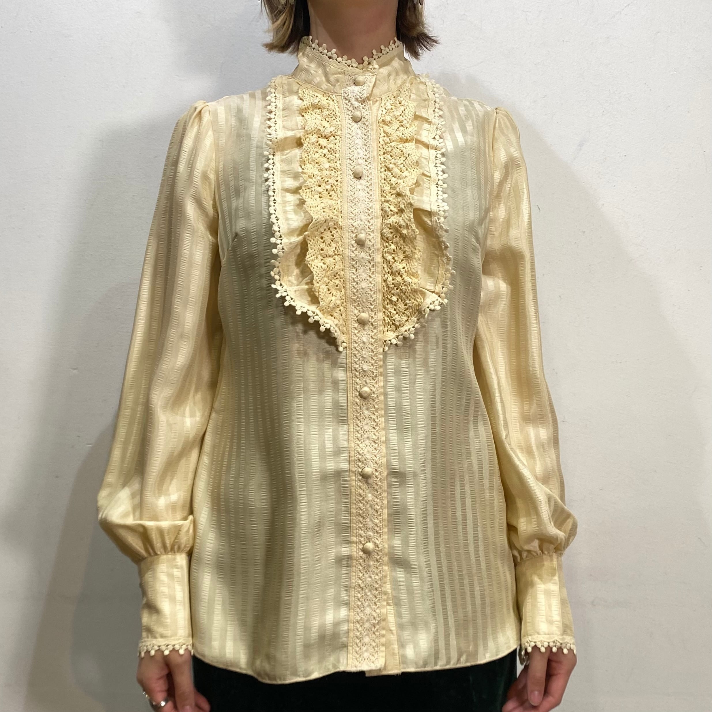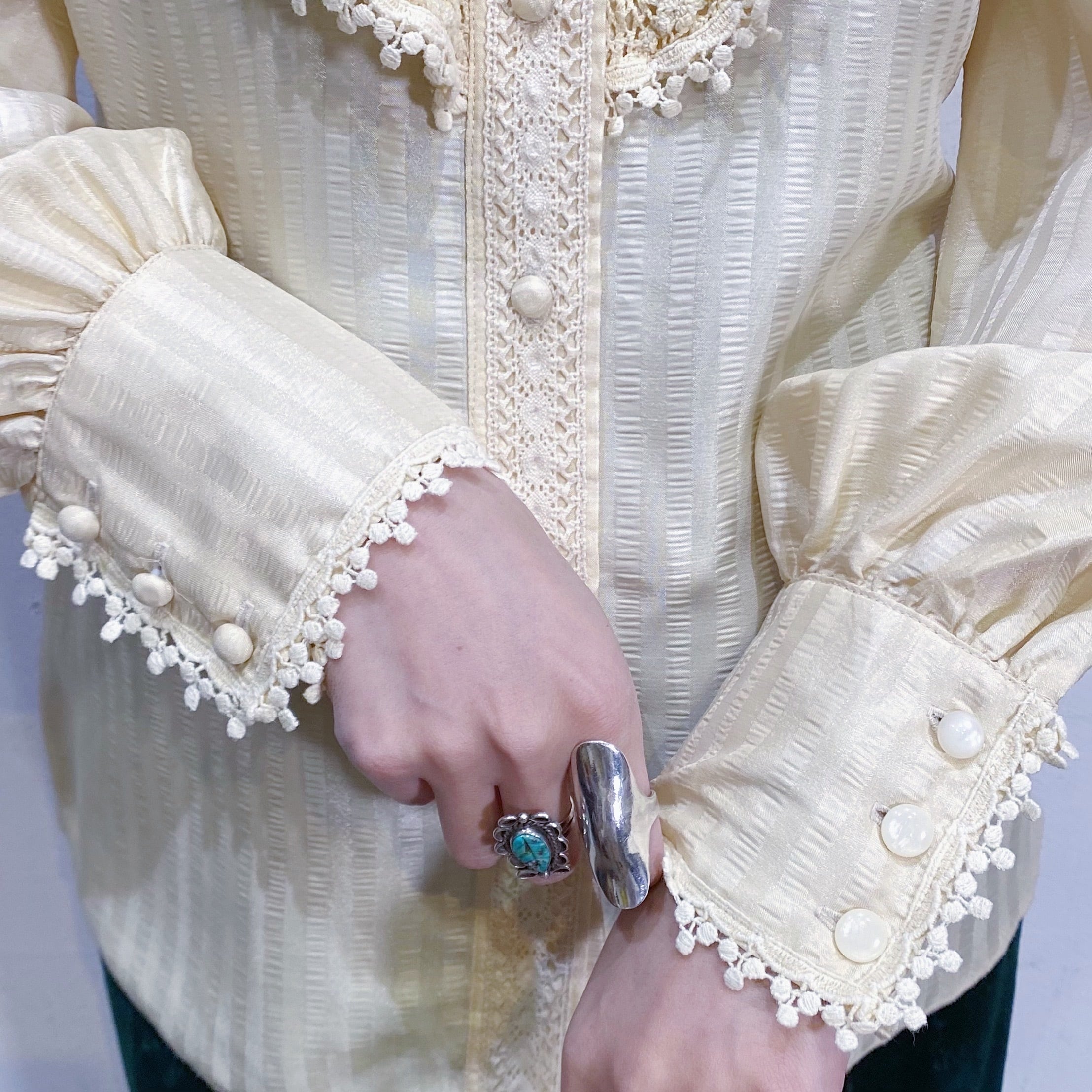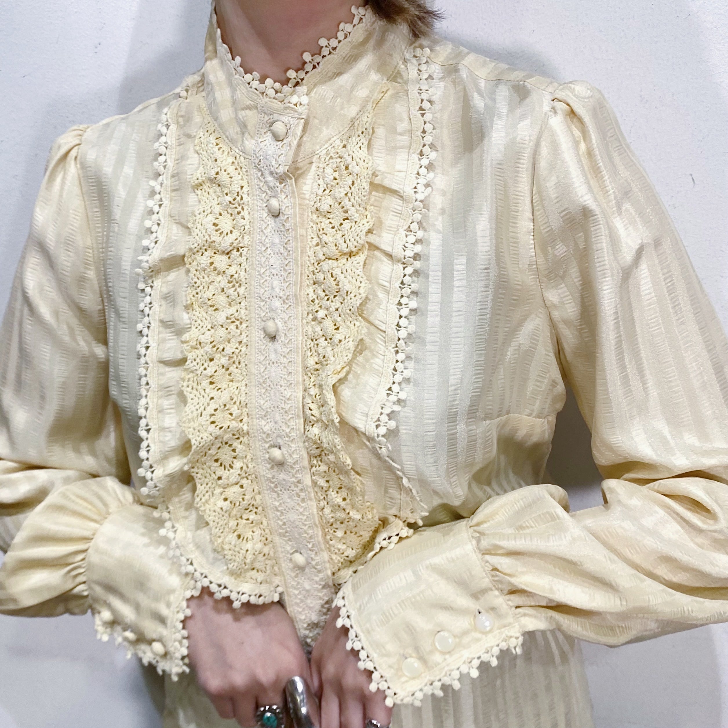 胸元のふりふりとしたレースが可愛い、70年代のブラウスです。