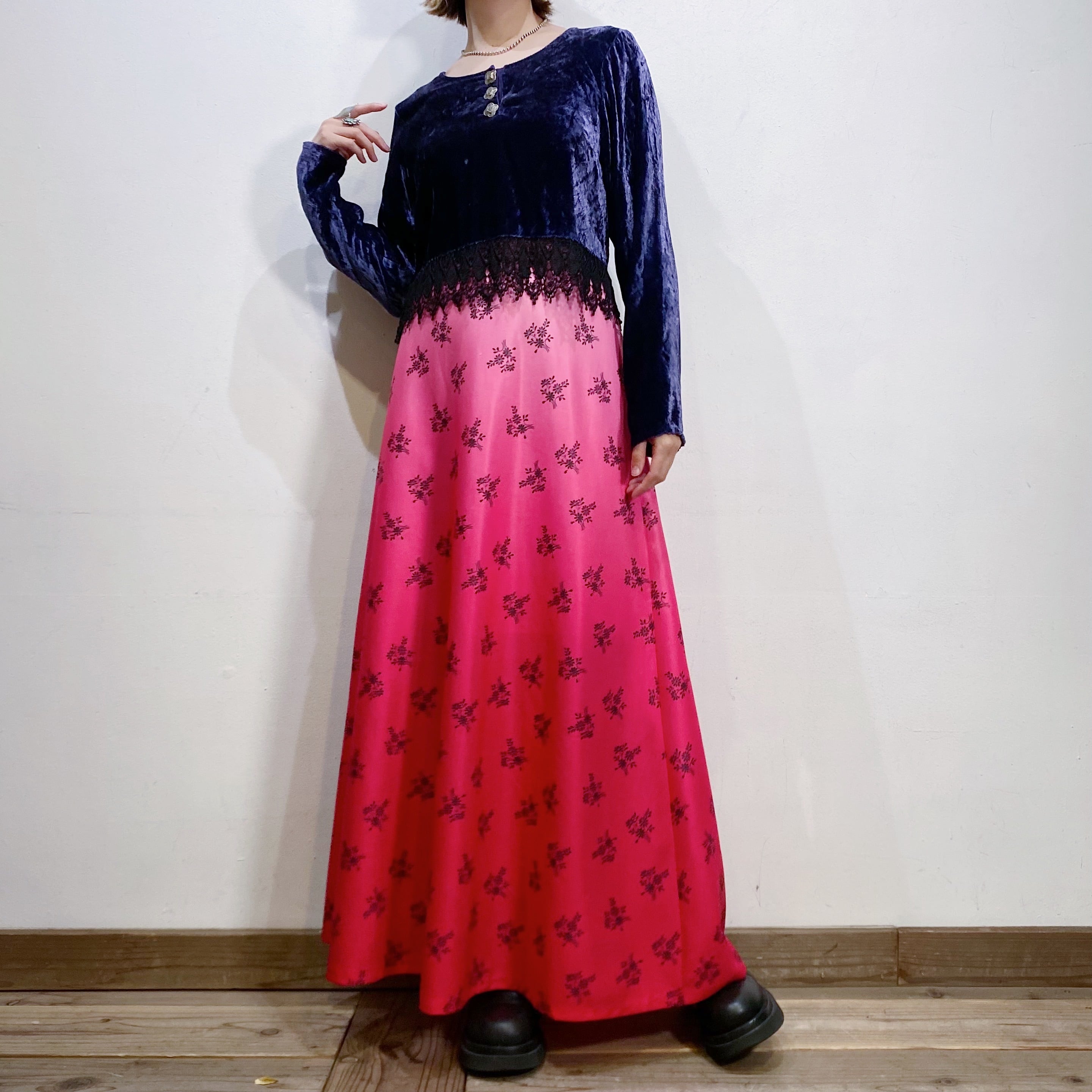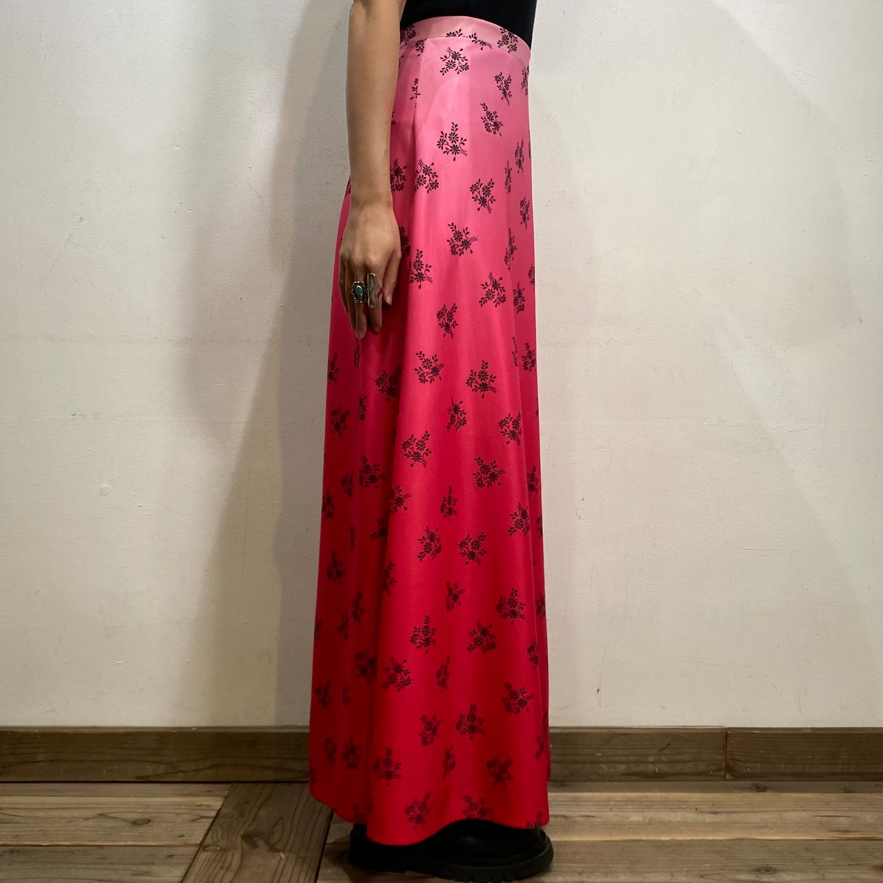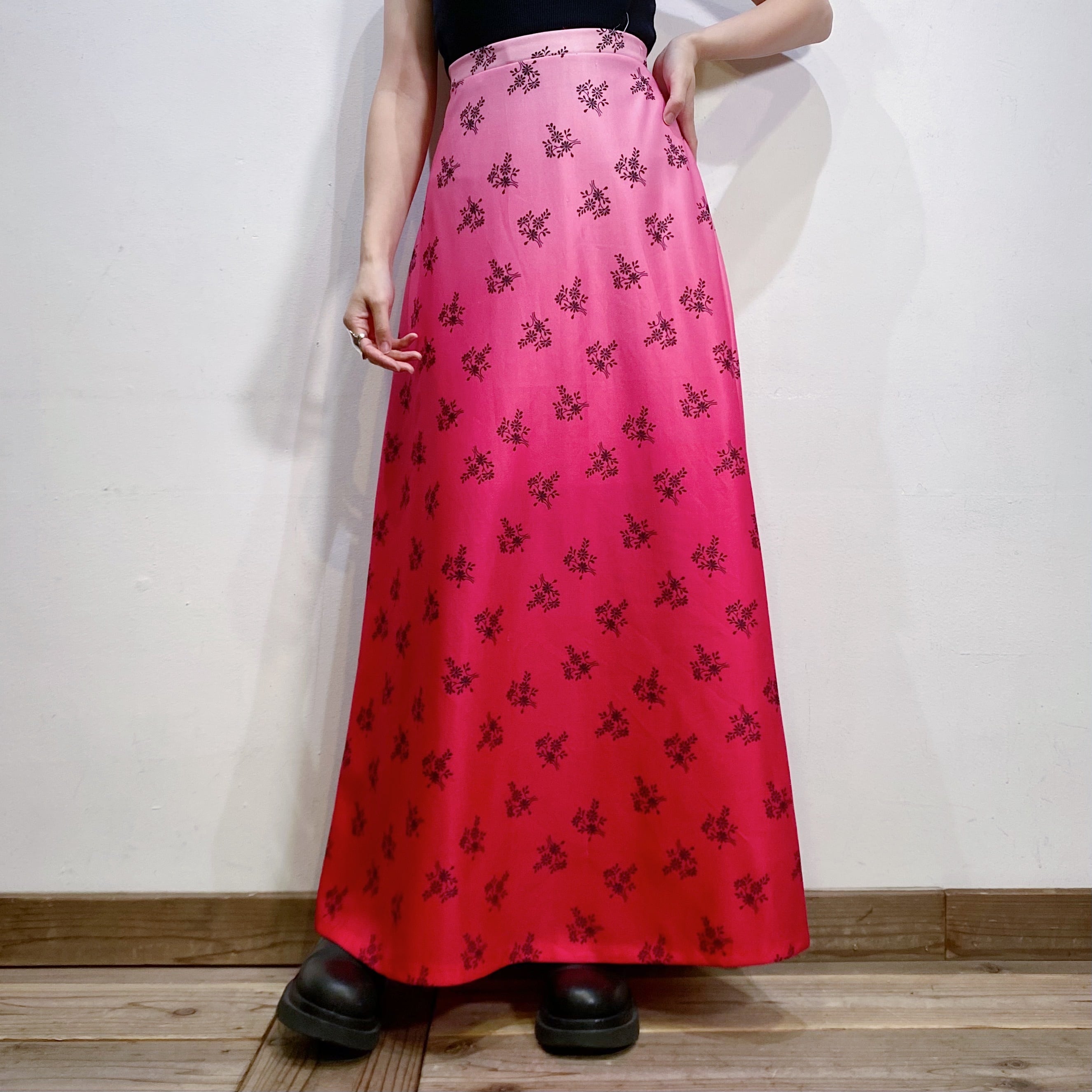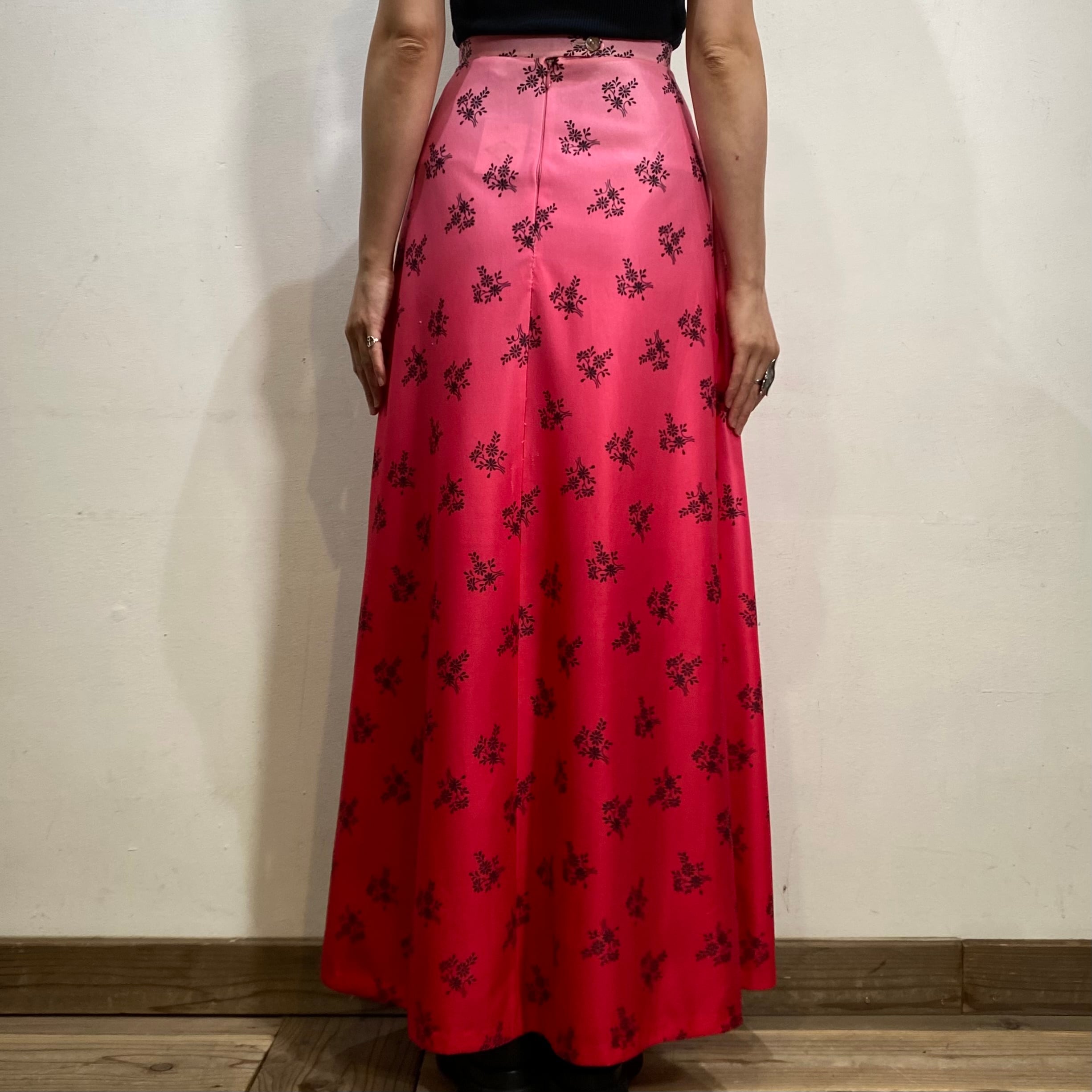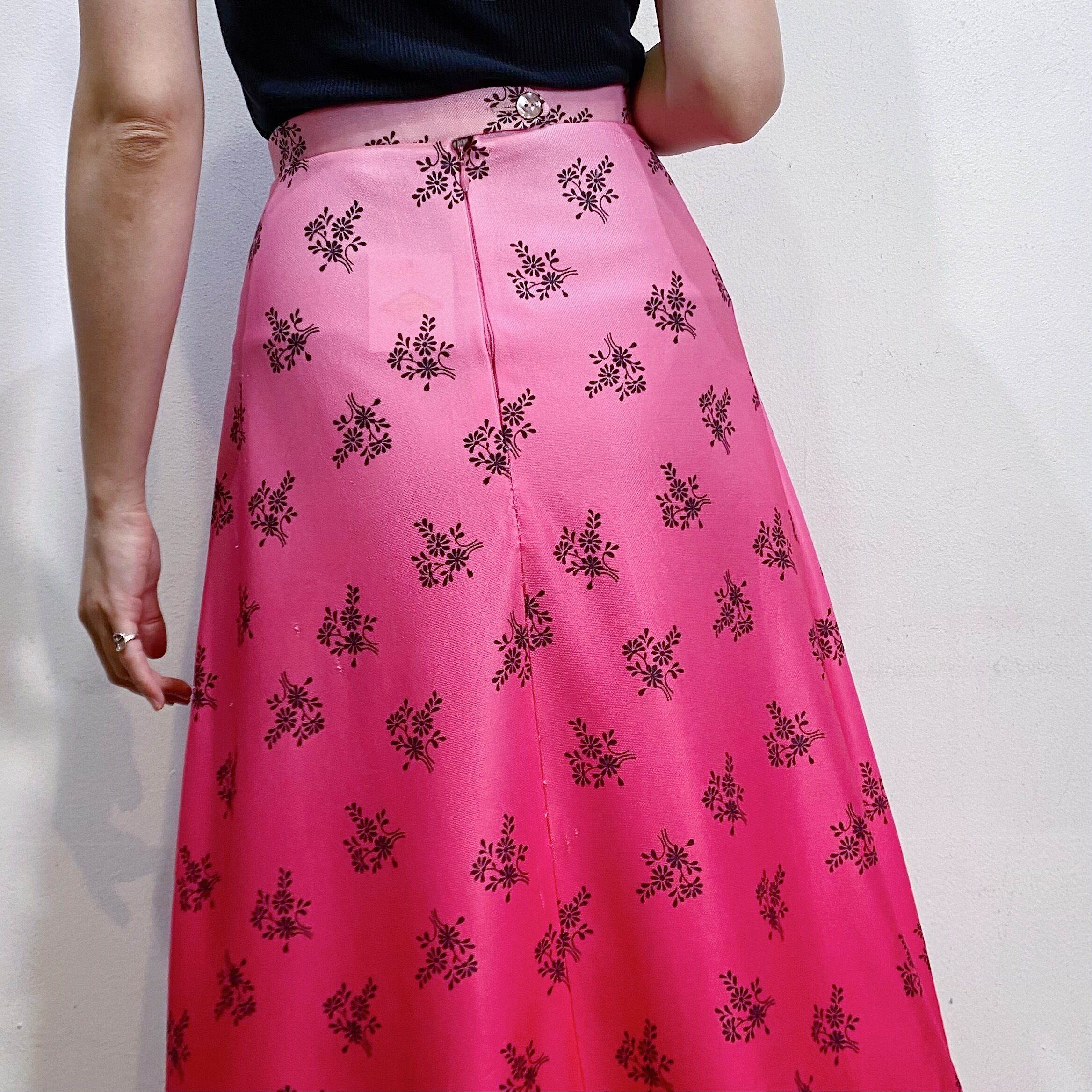 ピンクのグラデーションにブーケのような花柄が可愛い、70年代のスカートです。