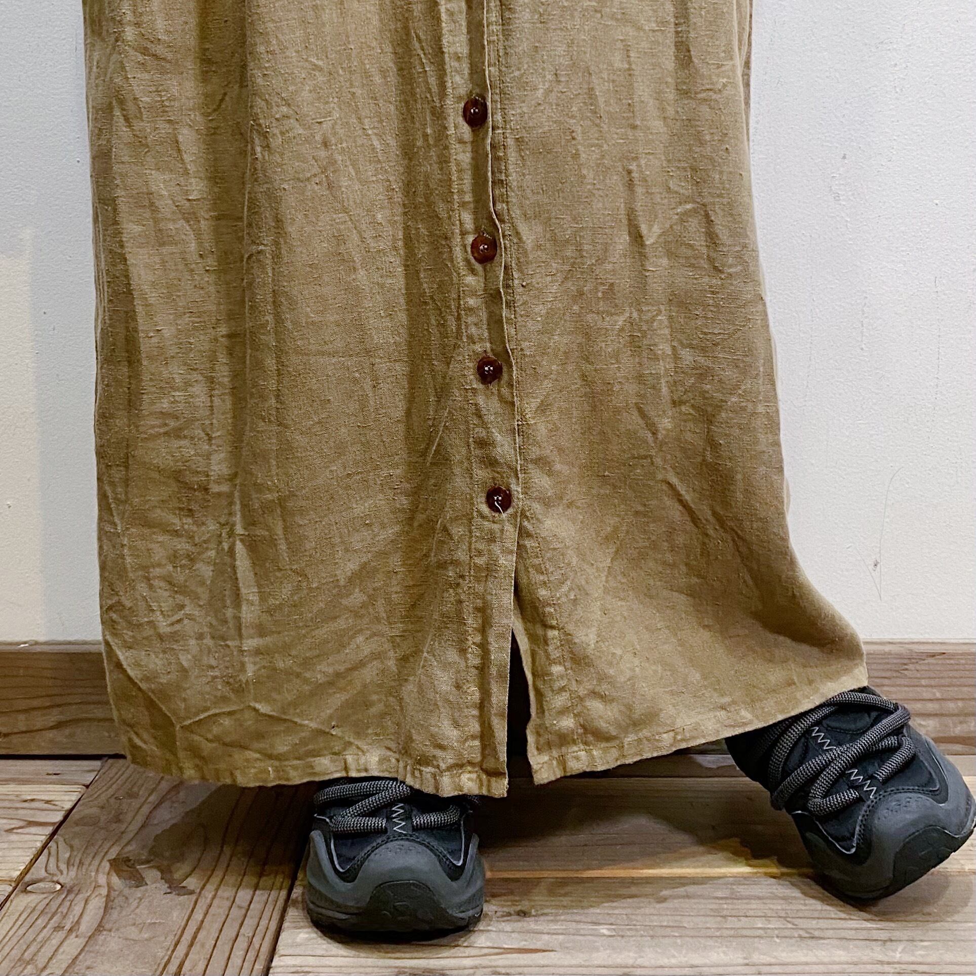 上質なリネン素材にロング丈で、大人っぽく着ていただけますよ。