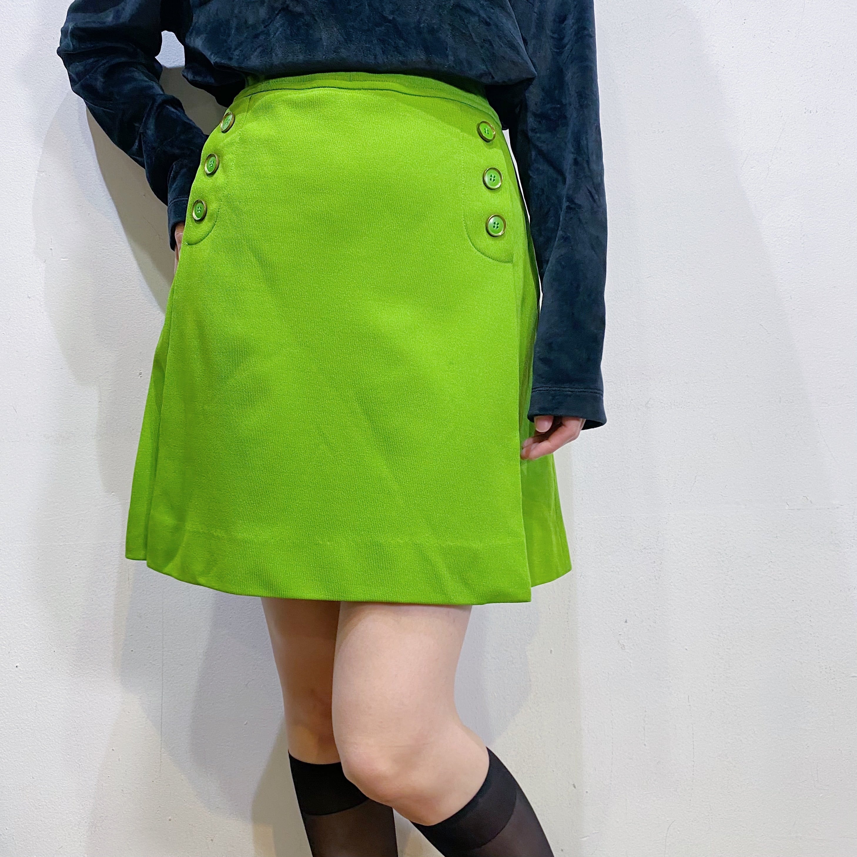 鮮やかな黄緑色が可愛い、70年代のキュロットです。