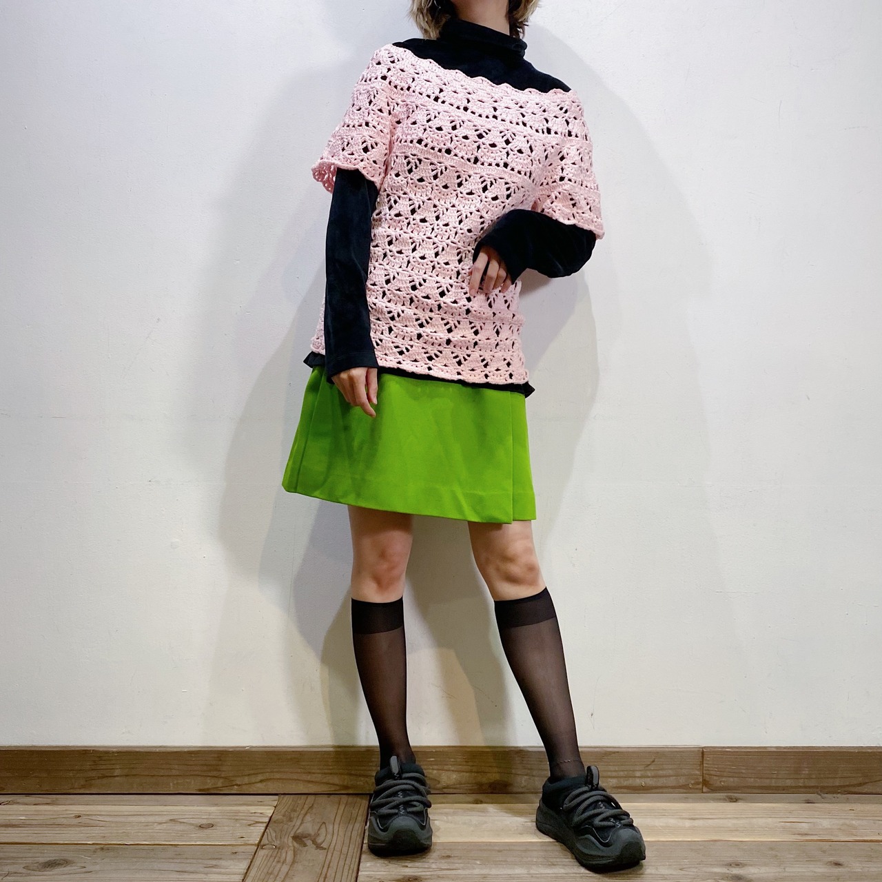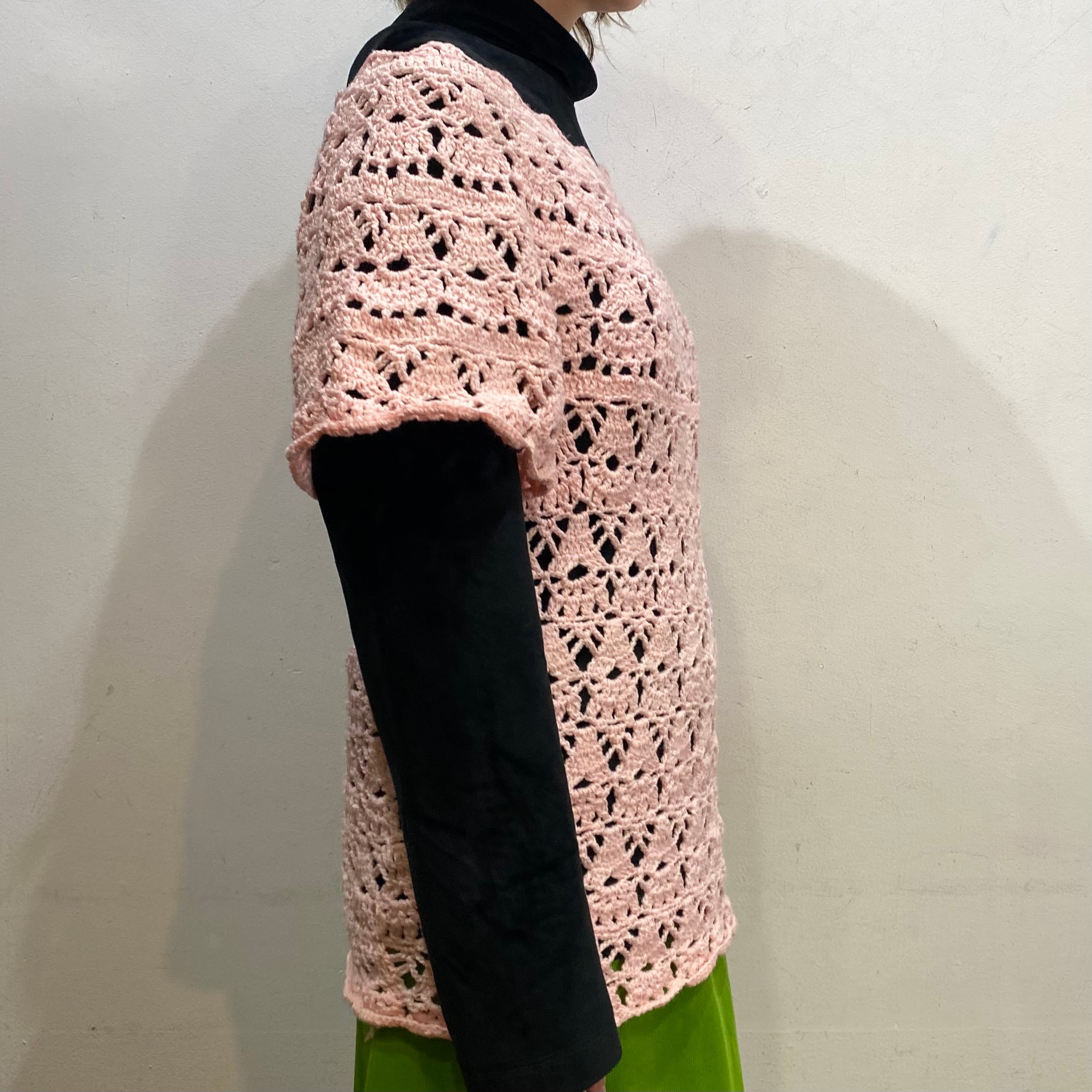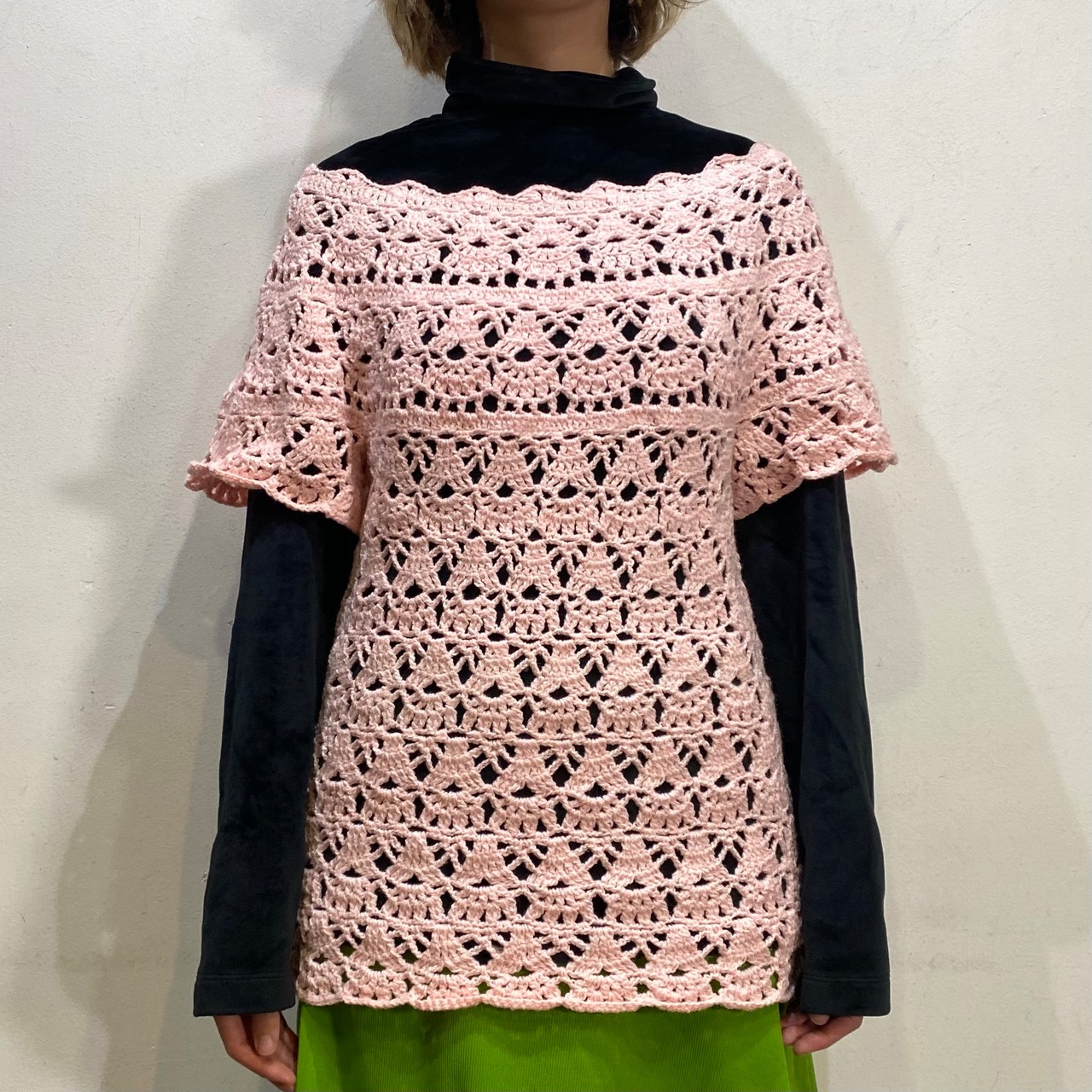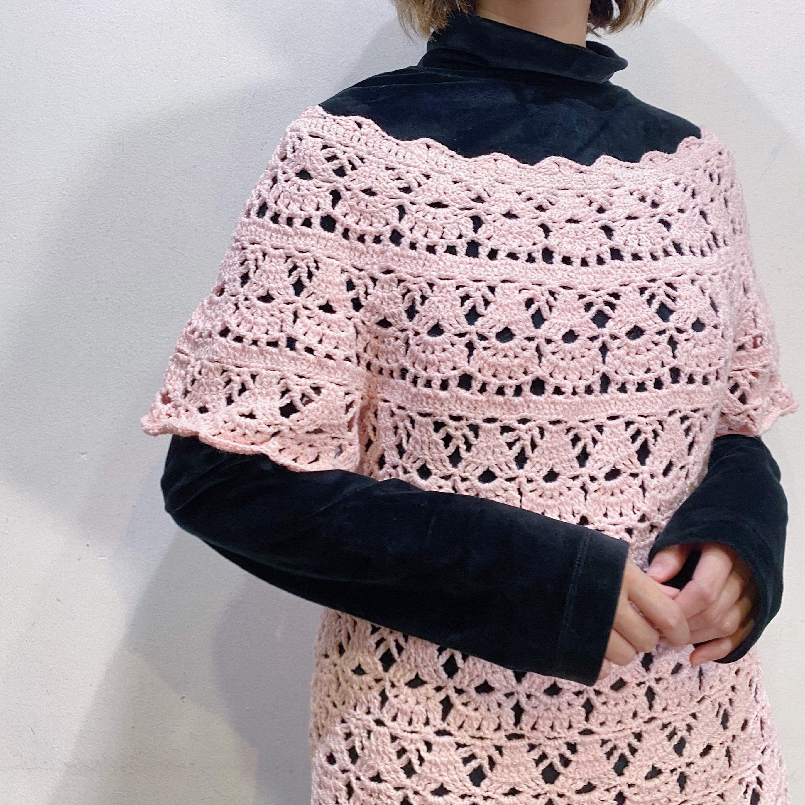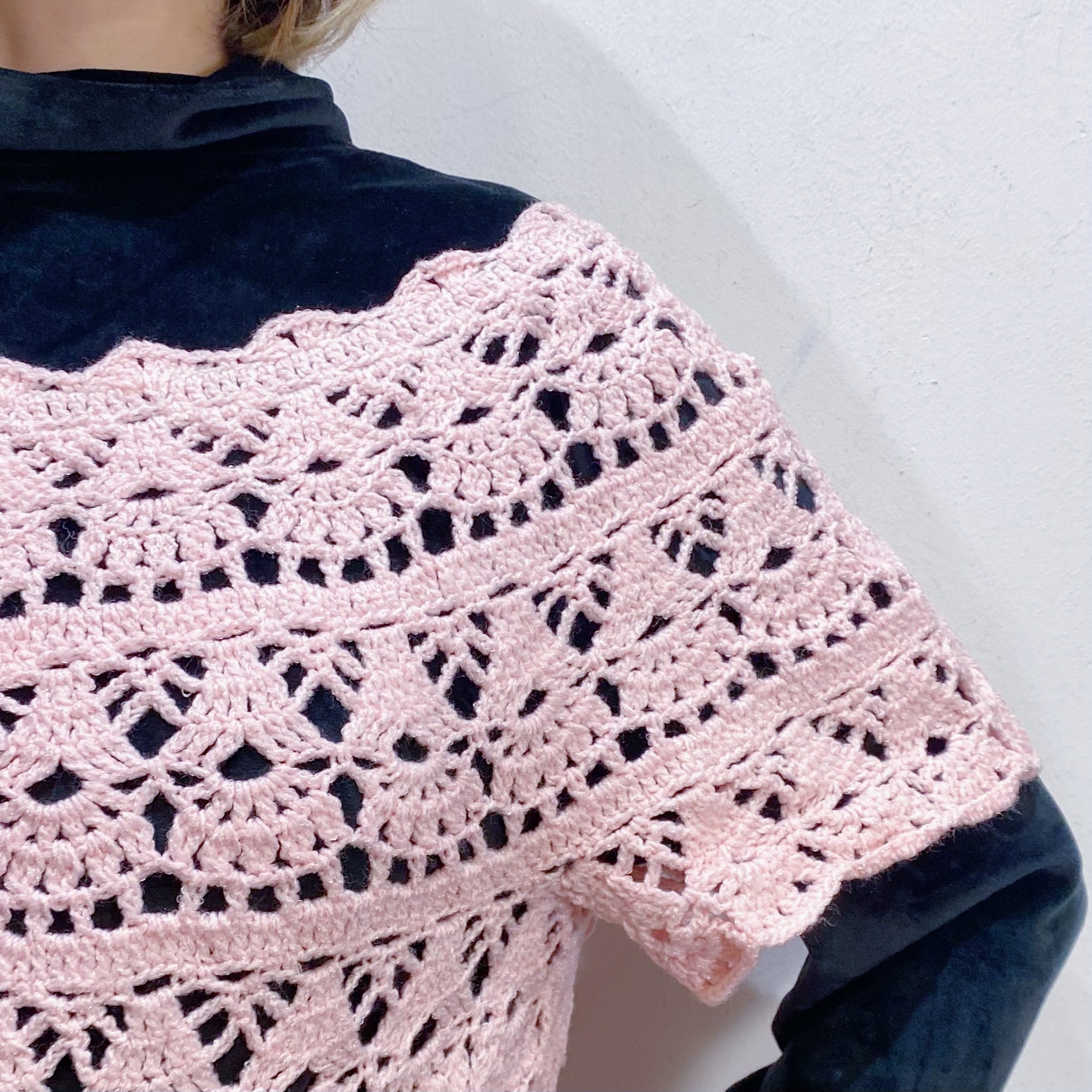 ベビーピンクの色合いが可愛い、70年代のクロシェトップスです。