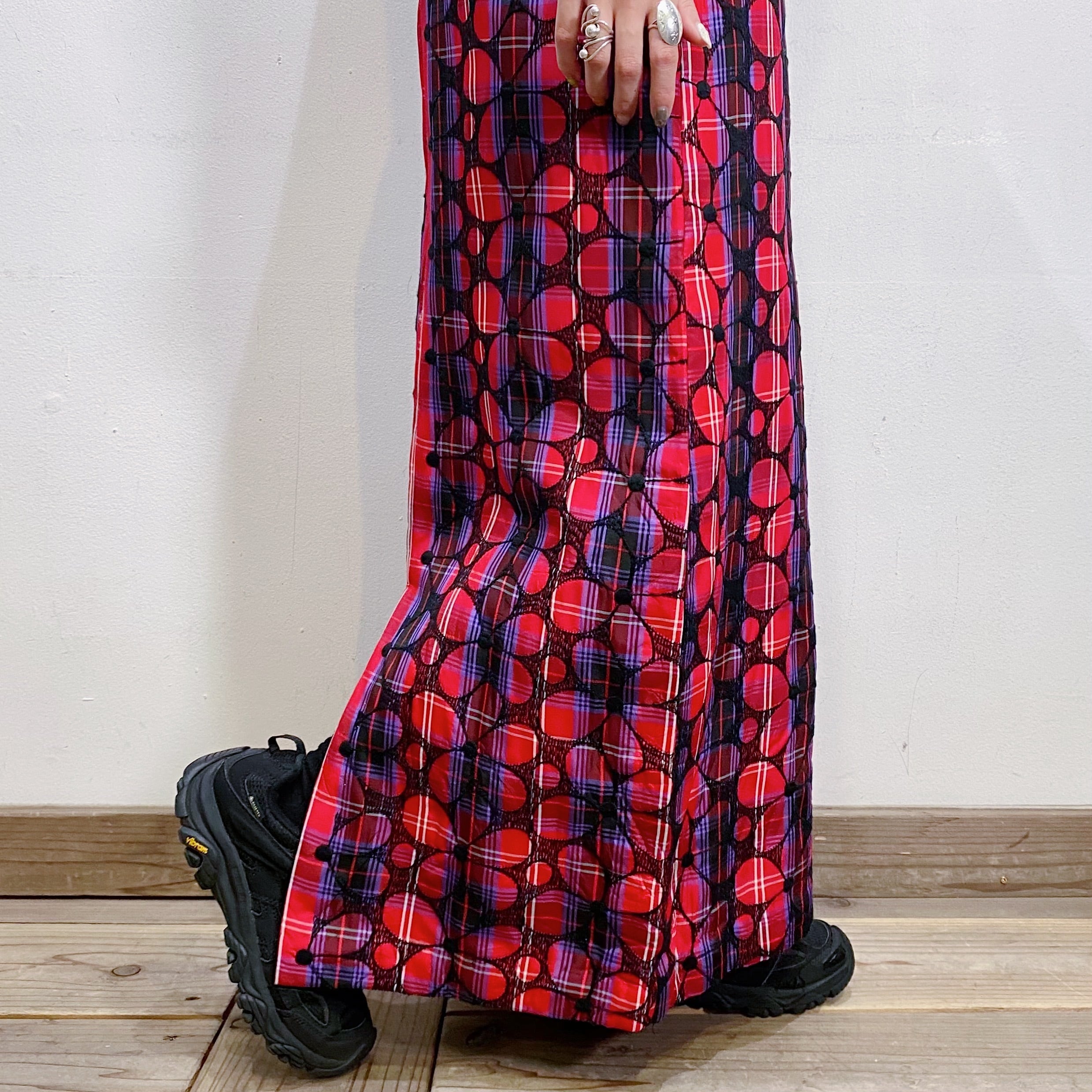 チェック柄のシャンタン素材に黒い刺繍でお花が描かれている、とっても可愛い70年代のスカートです。