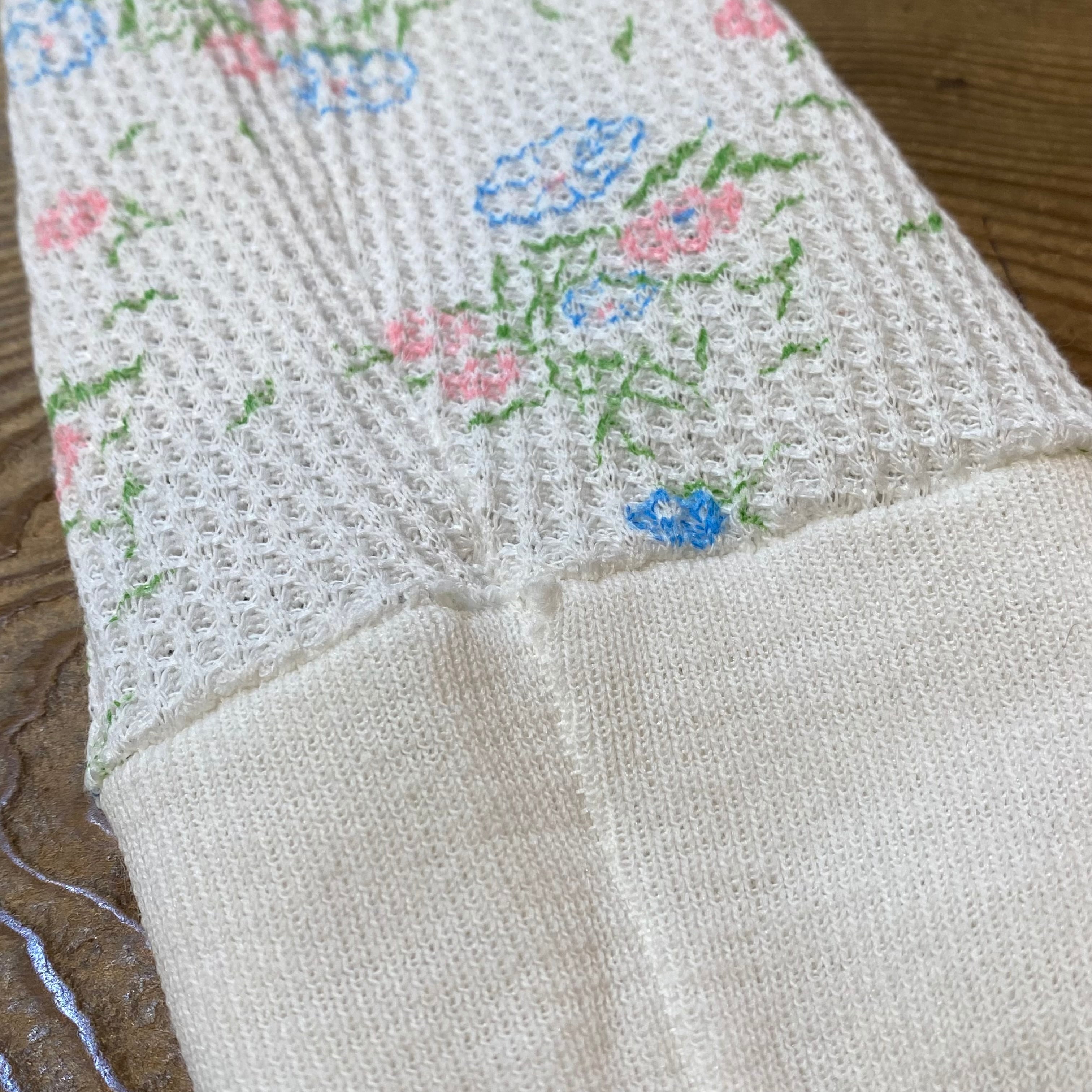 ホワイトベースにピンクと水色の花柄が可愛い一枚。