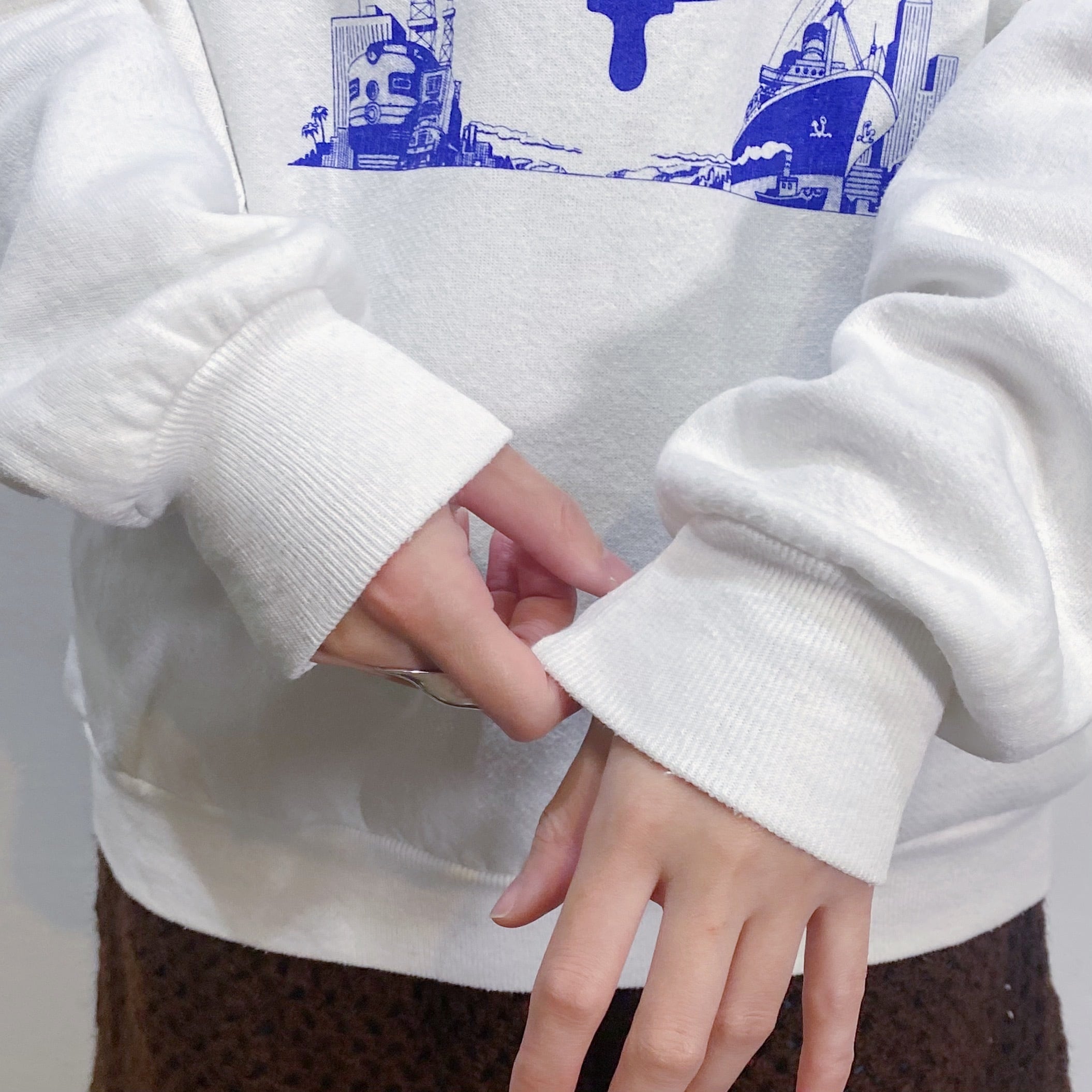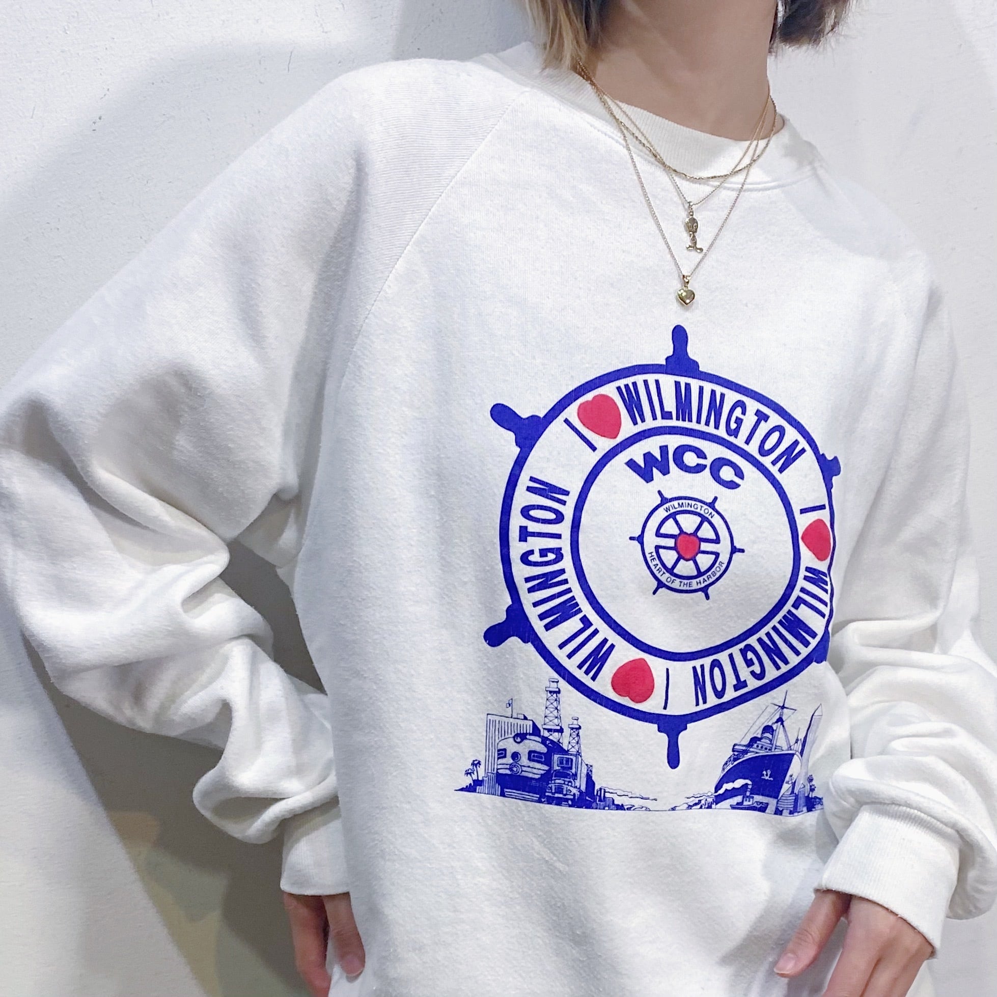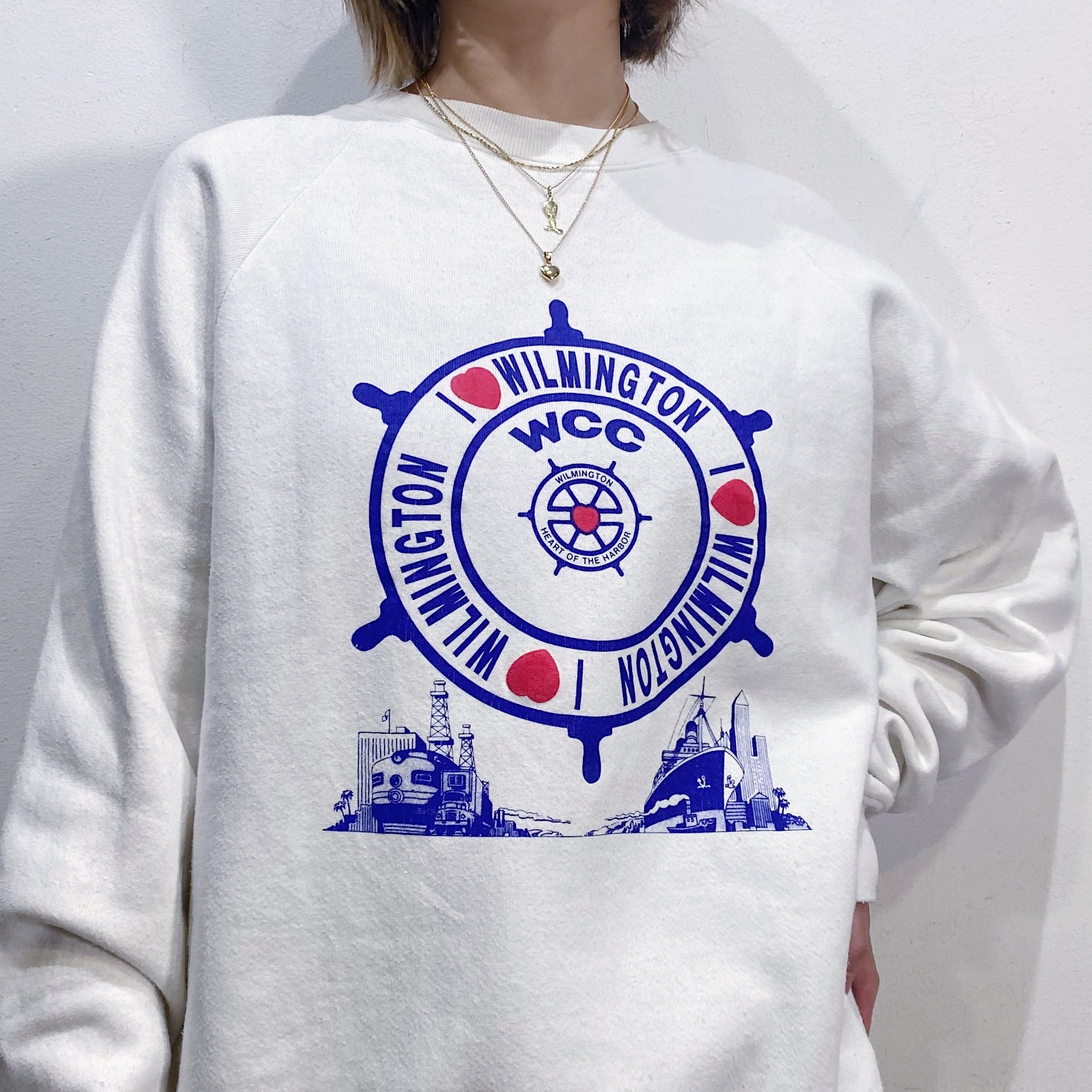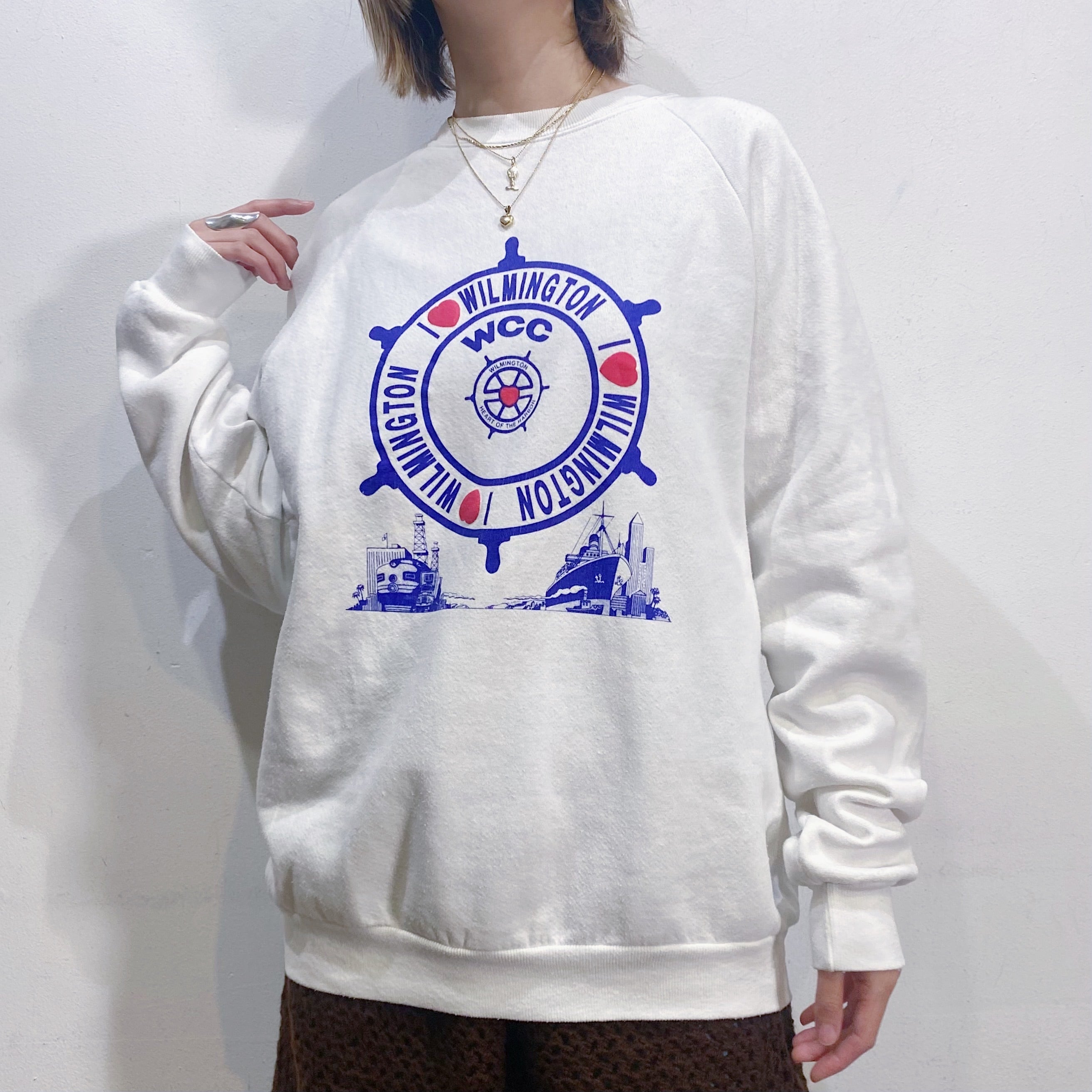 船のハンドルがプリントされた80年代のスウェットです。