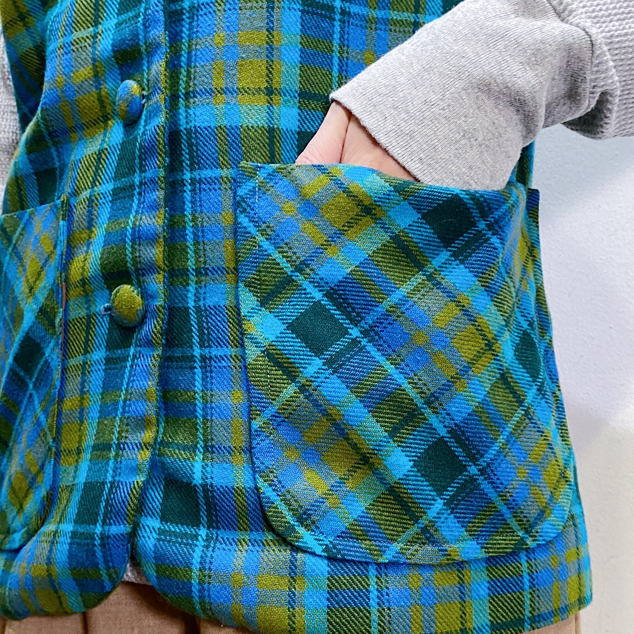 くるみボタンにポケット、裏地もしっかりと付いたしっかりとした品質の一枚。