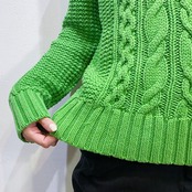 ざっくりとした立体的なケーブル編みがとってもキュート。