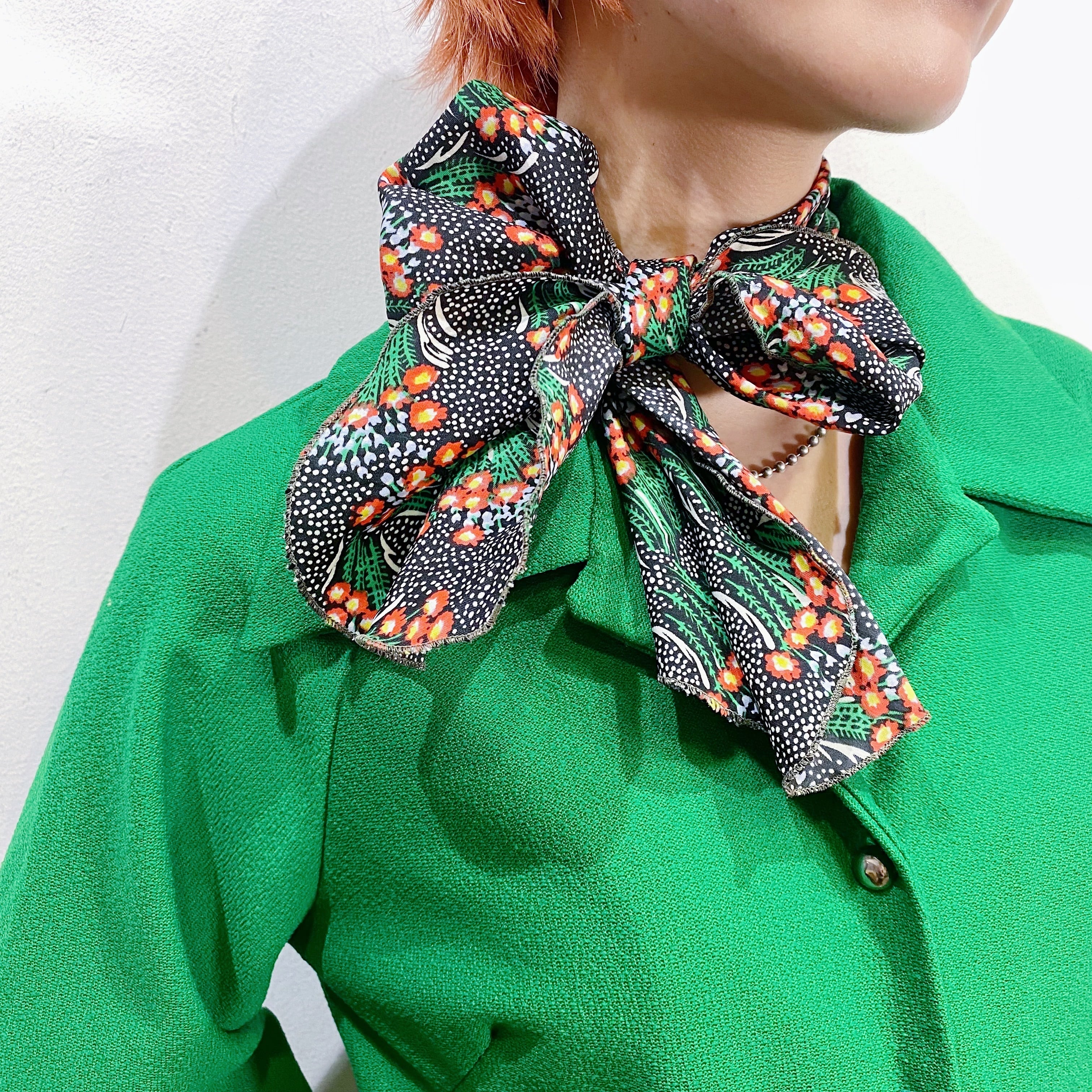 首だけでなく、ウエストにベルト感覚で巻いても、ヘアアレンジに使っても、バッグに巻き付けたりなんかしても良いですね。