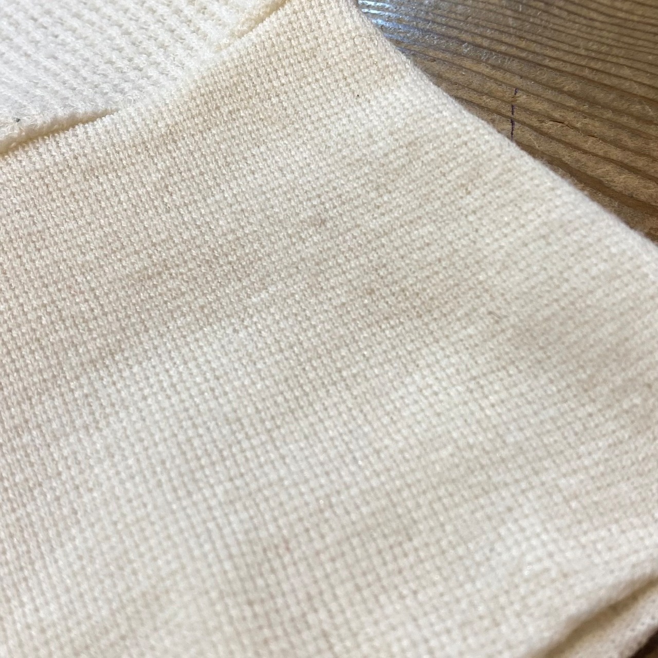 袖の部分やボディにうっすらとしたシミや小さなヨゴレありますが、あまり気にならないレベルではないかと思います。