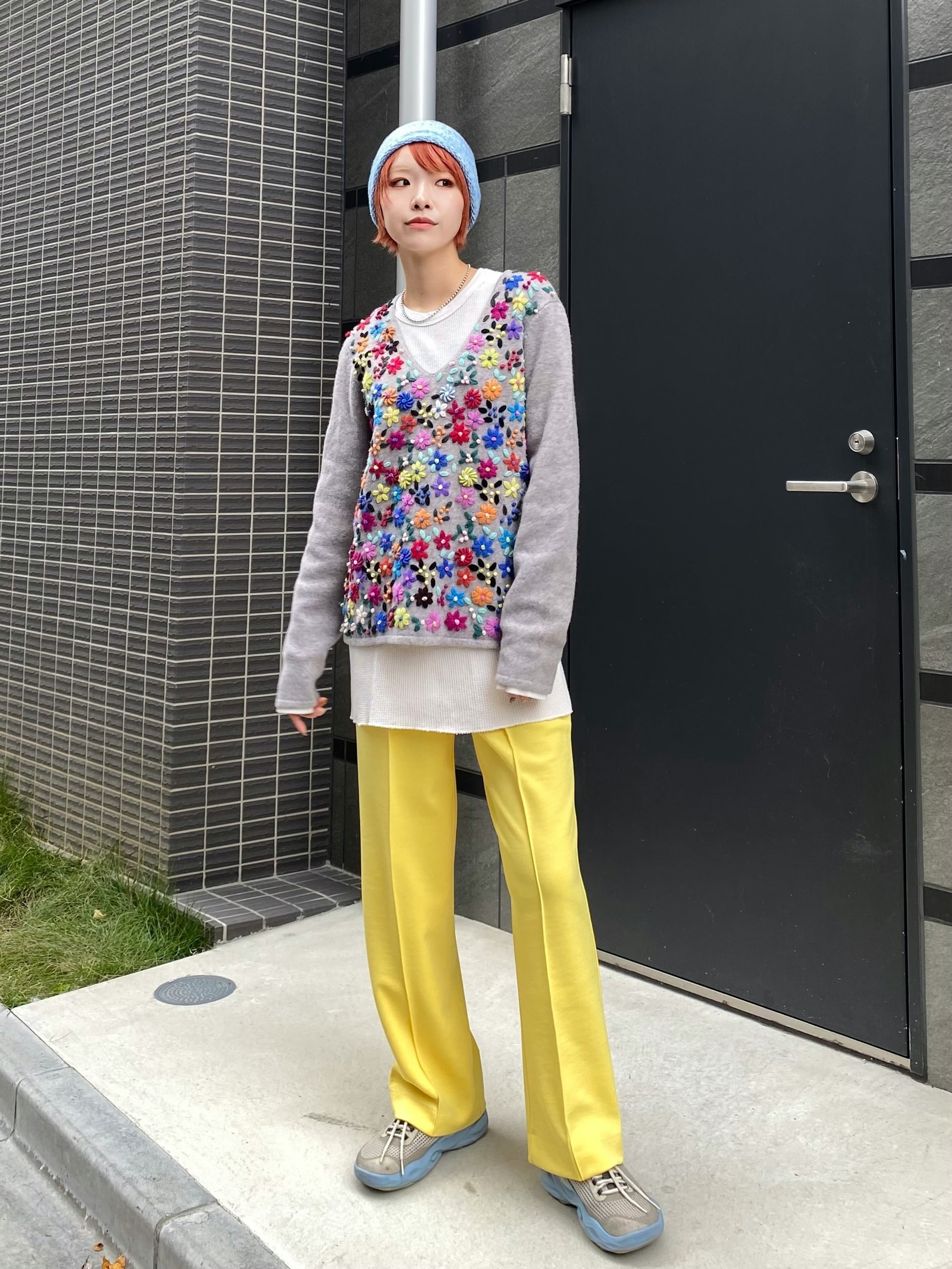 スカーフで有名なVeraの、明るい黄色が楽しいセンタープリーツパンツです。