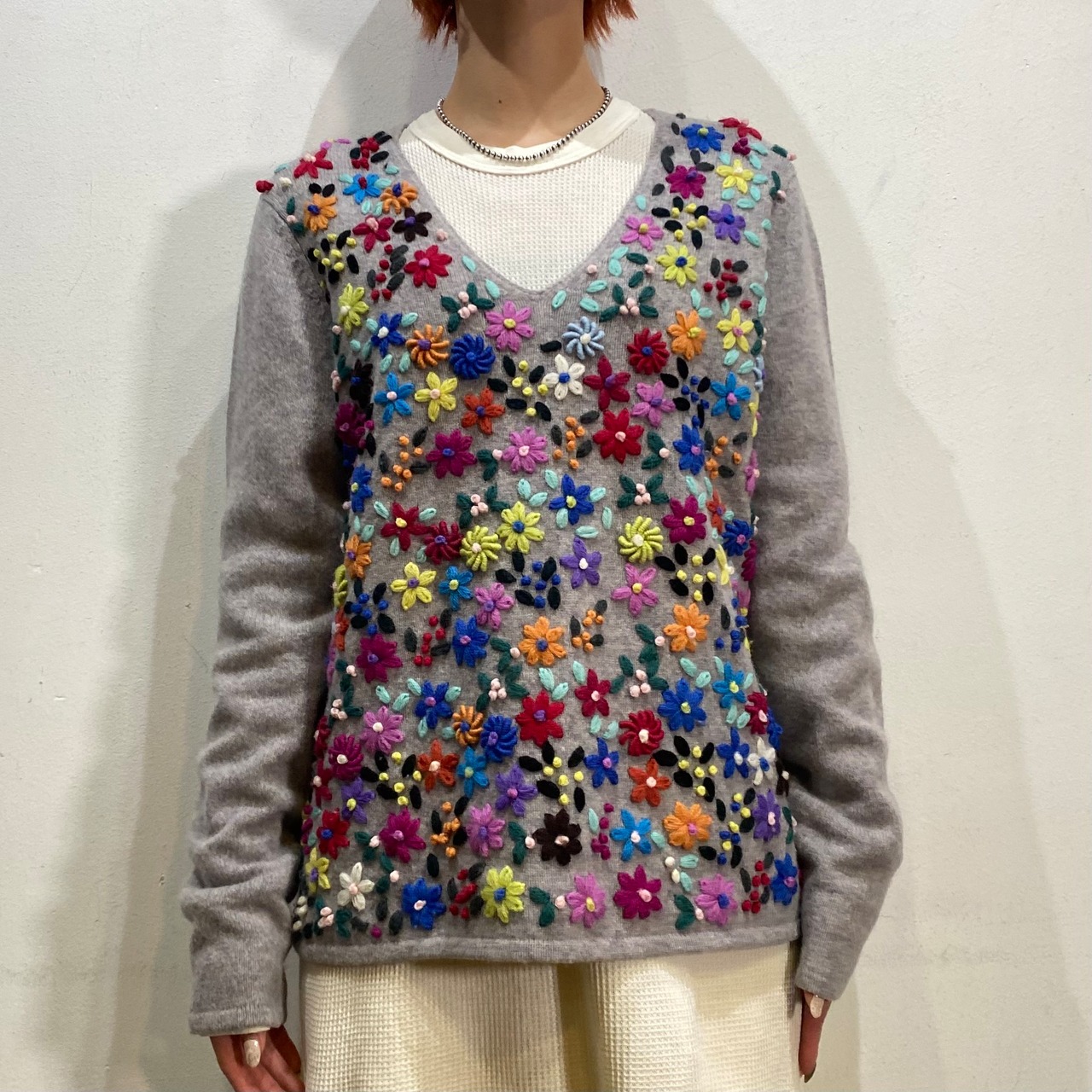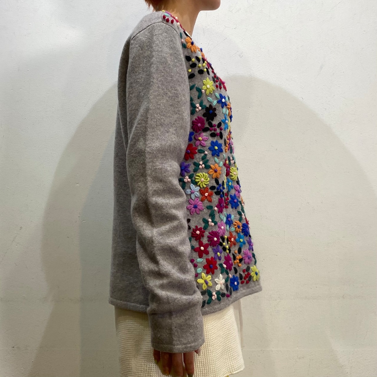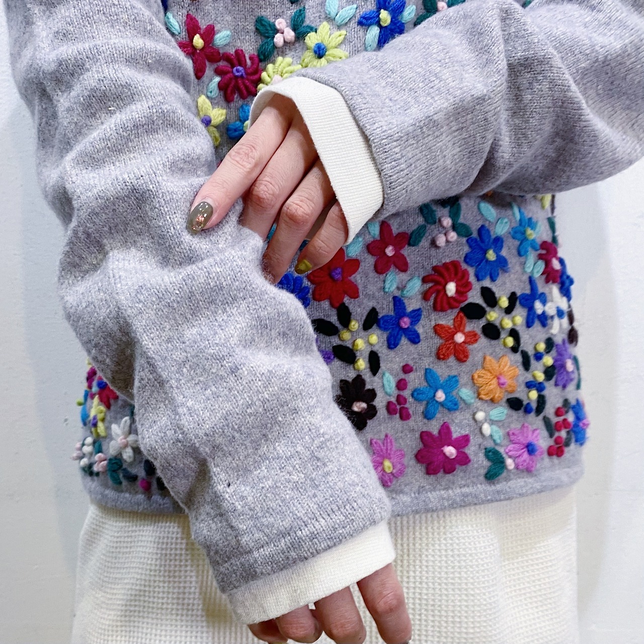 カラフルなお花が立体的にぎっしりと!手刺繍されたとっても可愛いセーターです。
