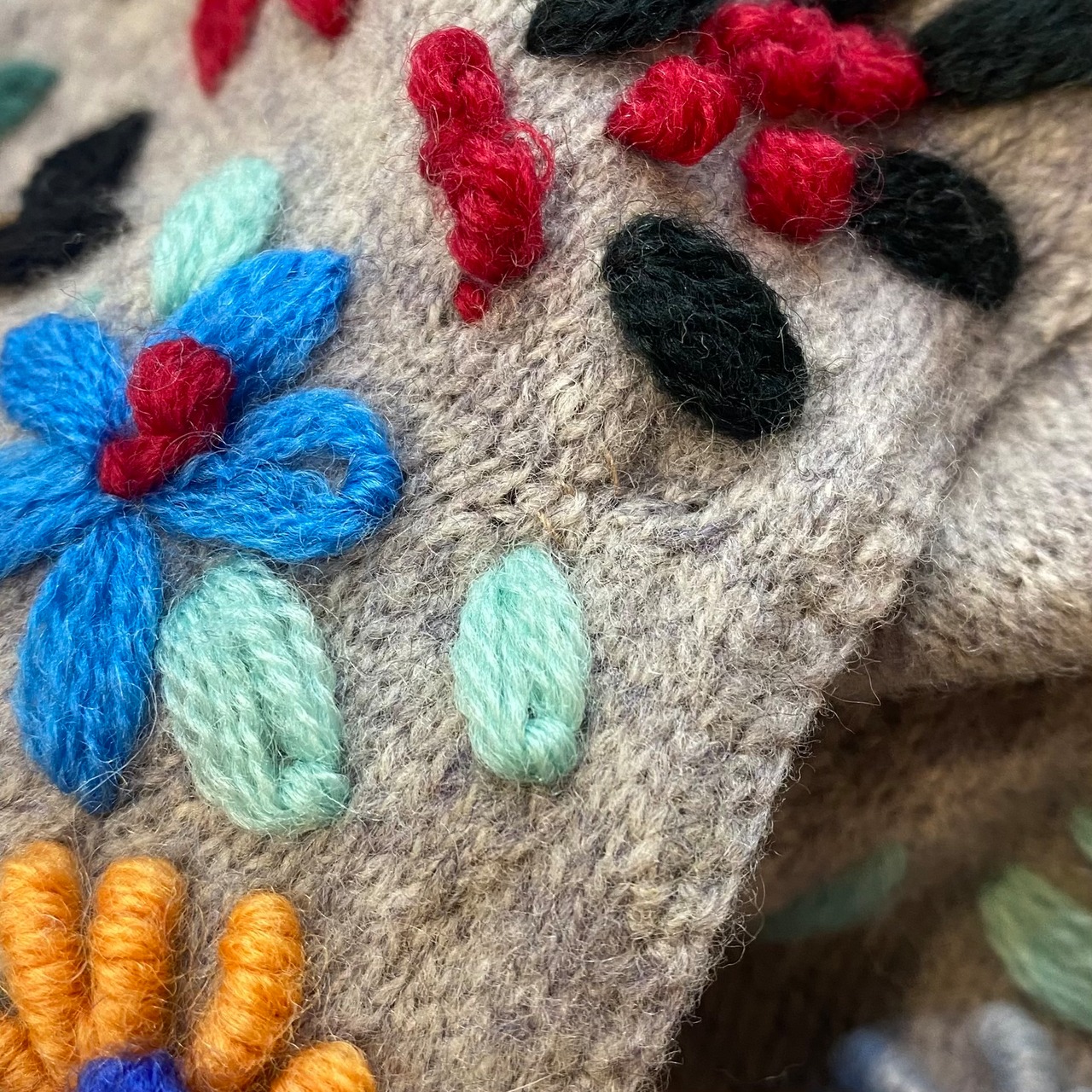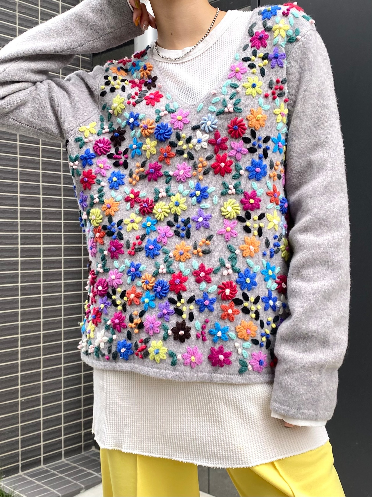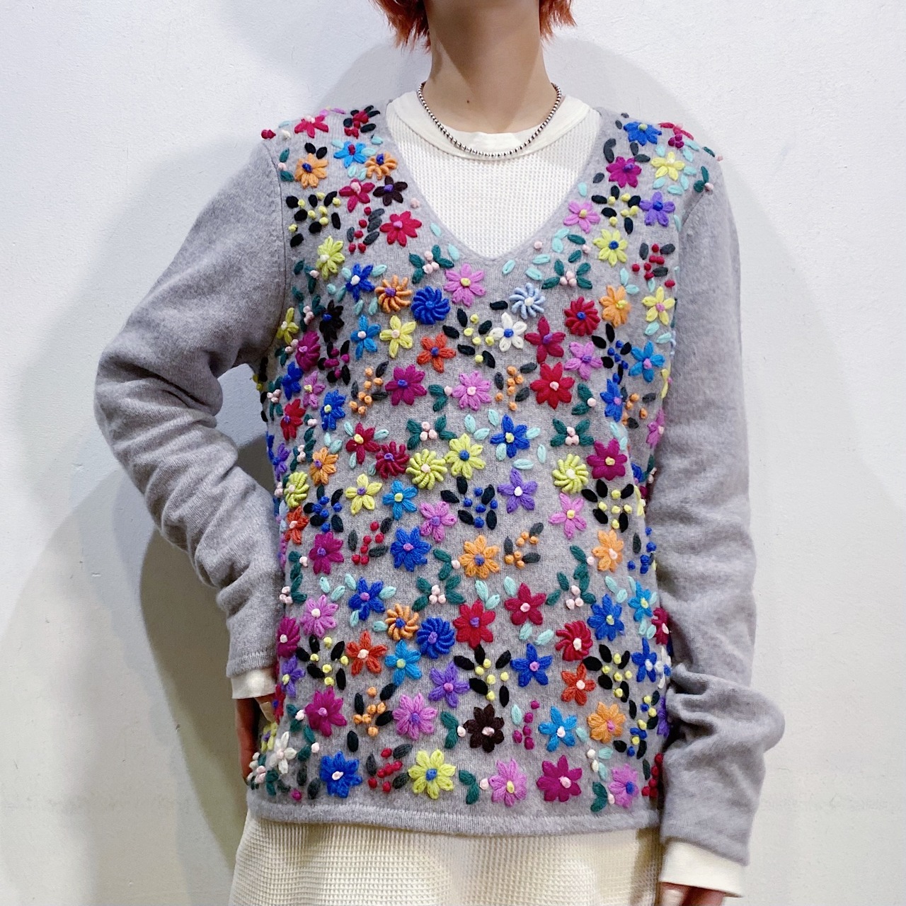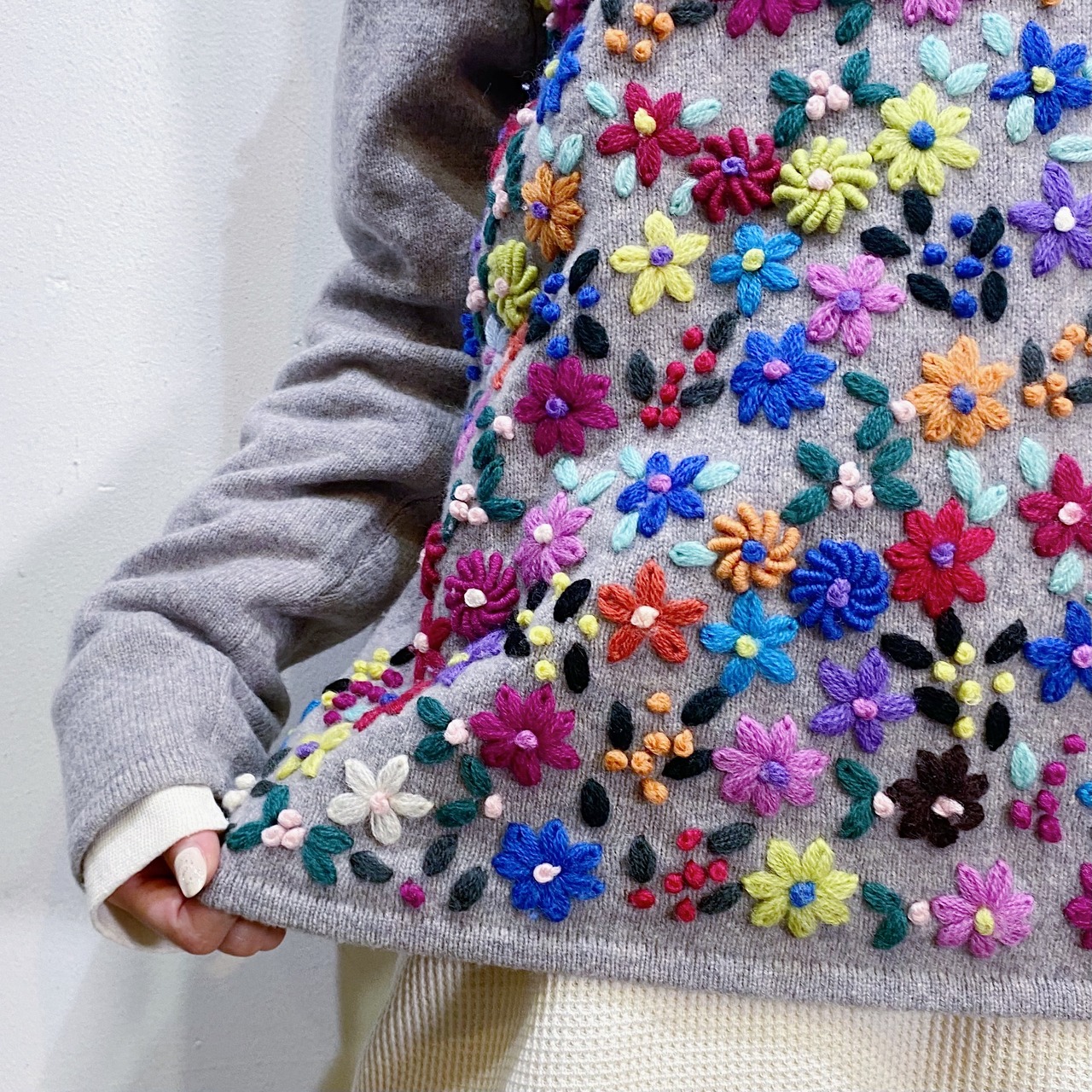 カラフルなお花が立体的にぎっしりと!手刺繍されたとっても可愛いセーターです。