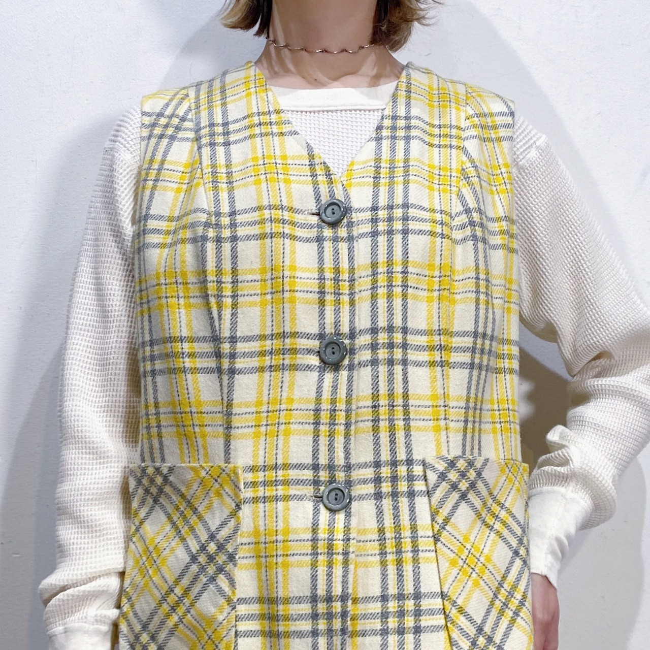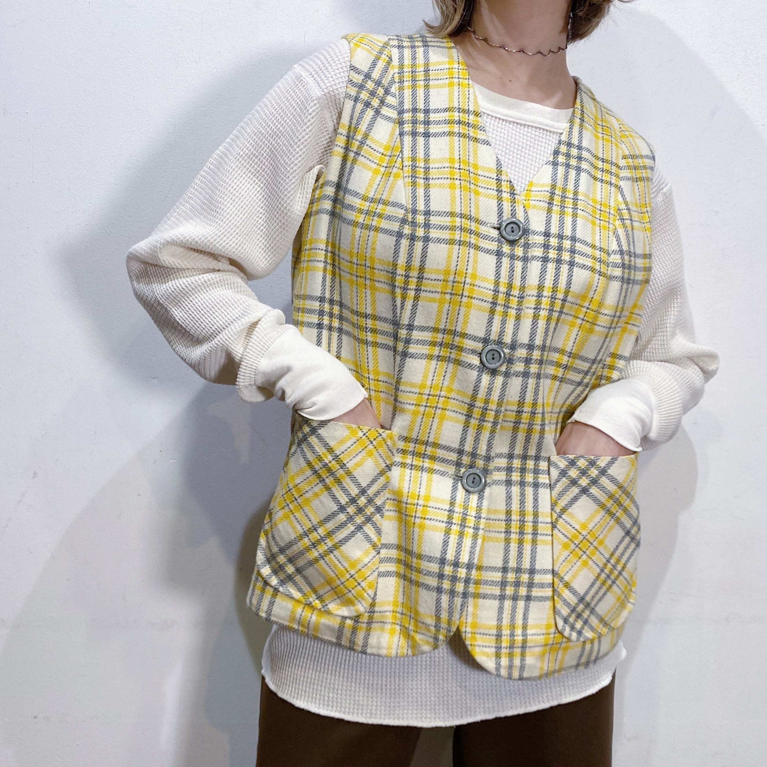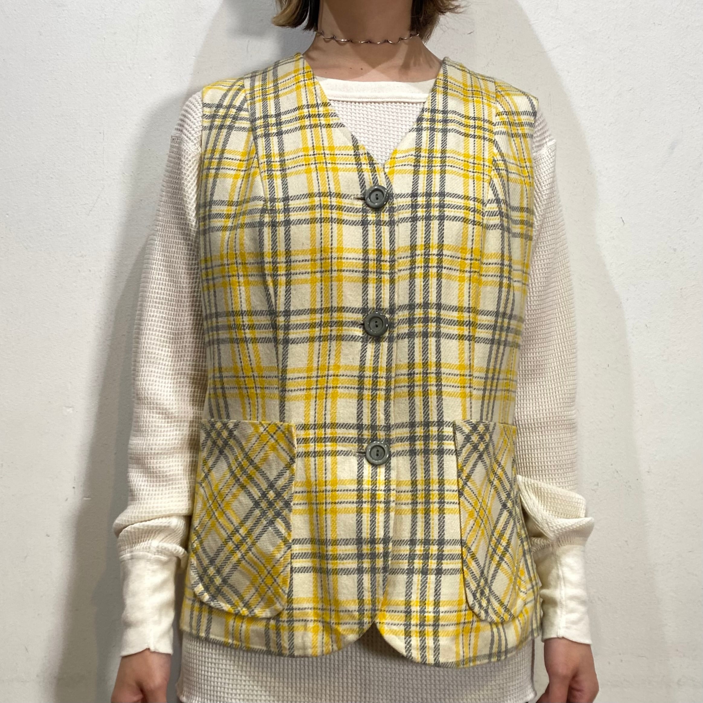 黄色とグレーの配色が可愛い、70年代のベストです。
