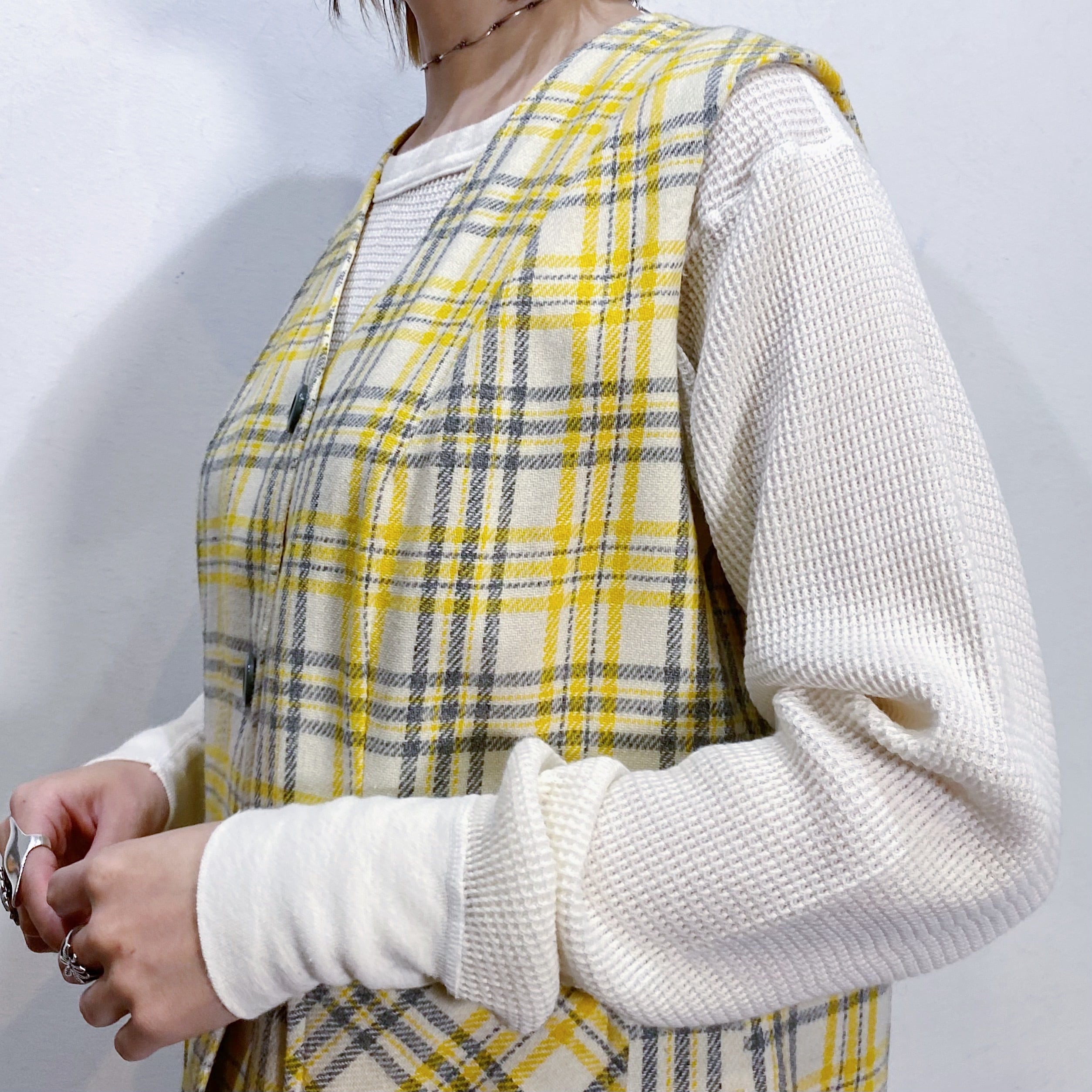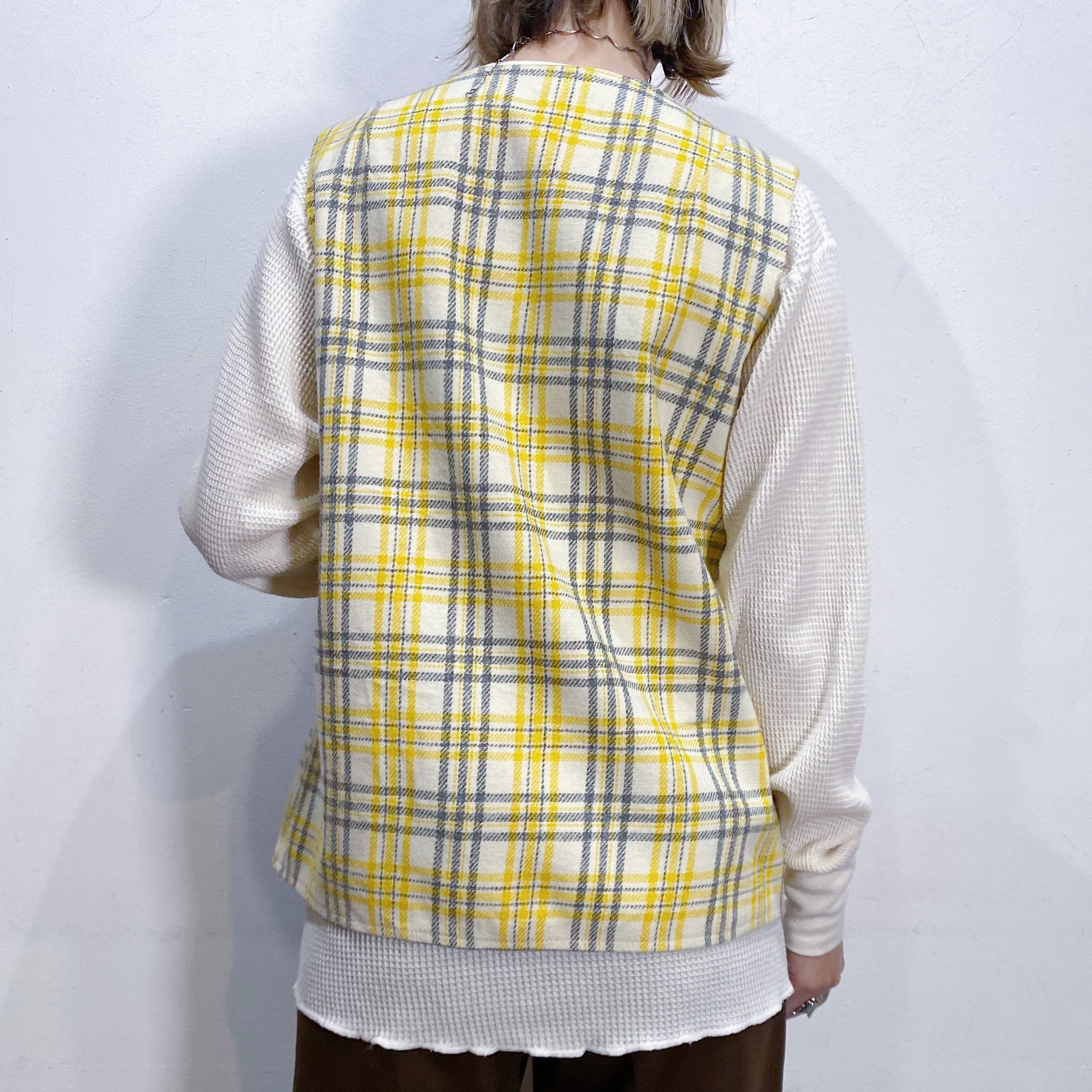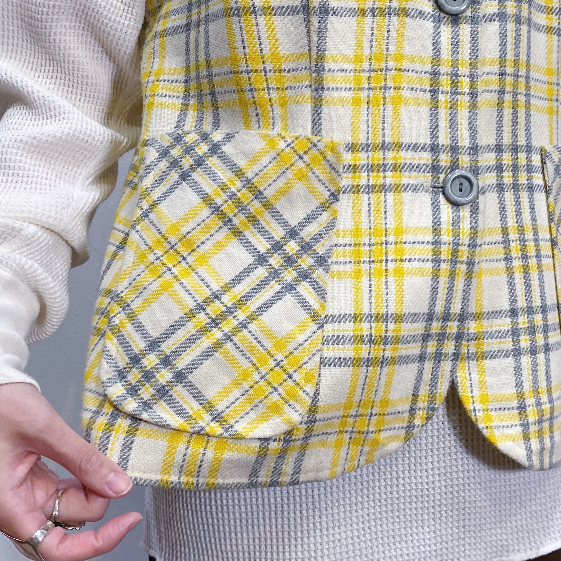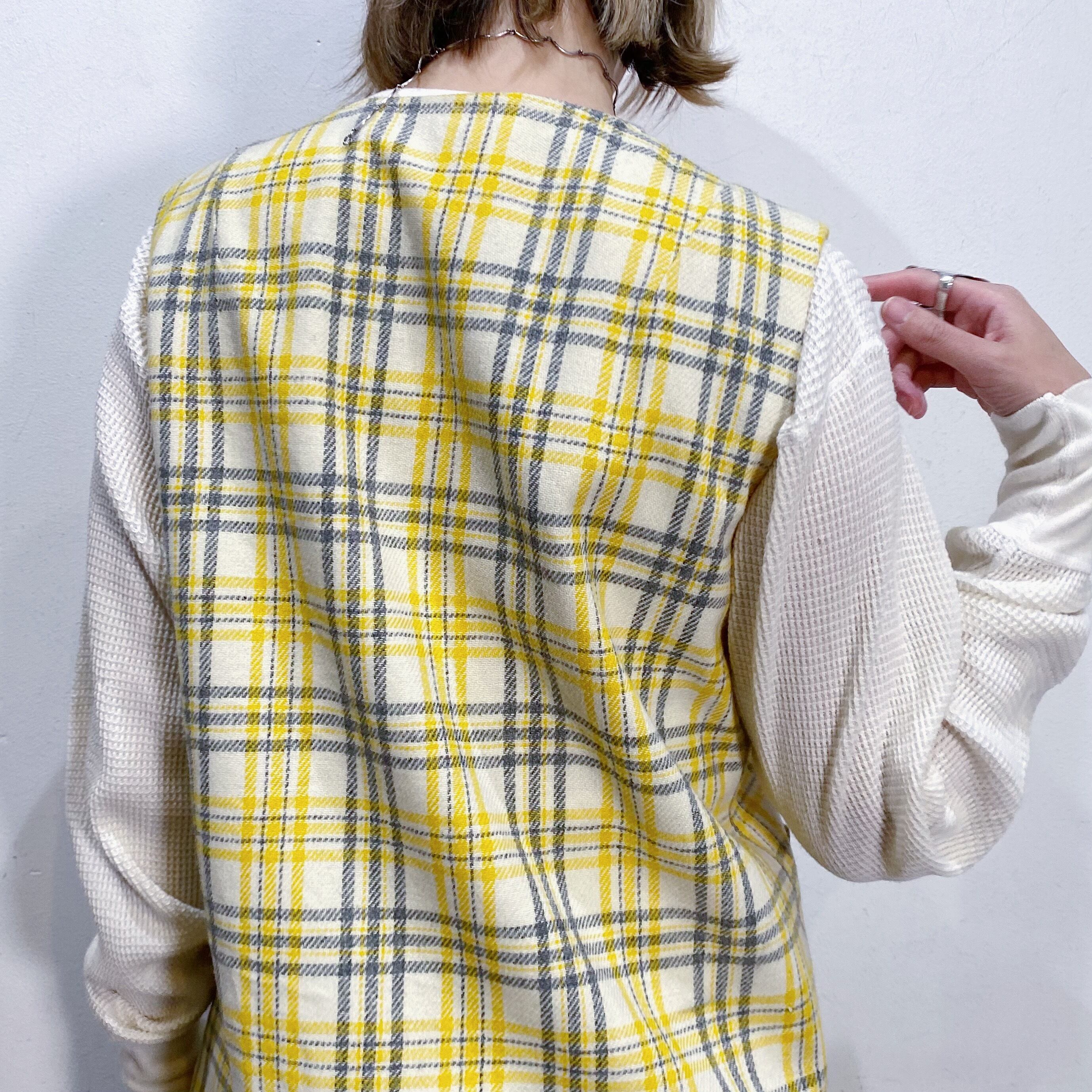 黄色とグレーの配色が可愛い、70年代のベストです。