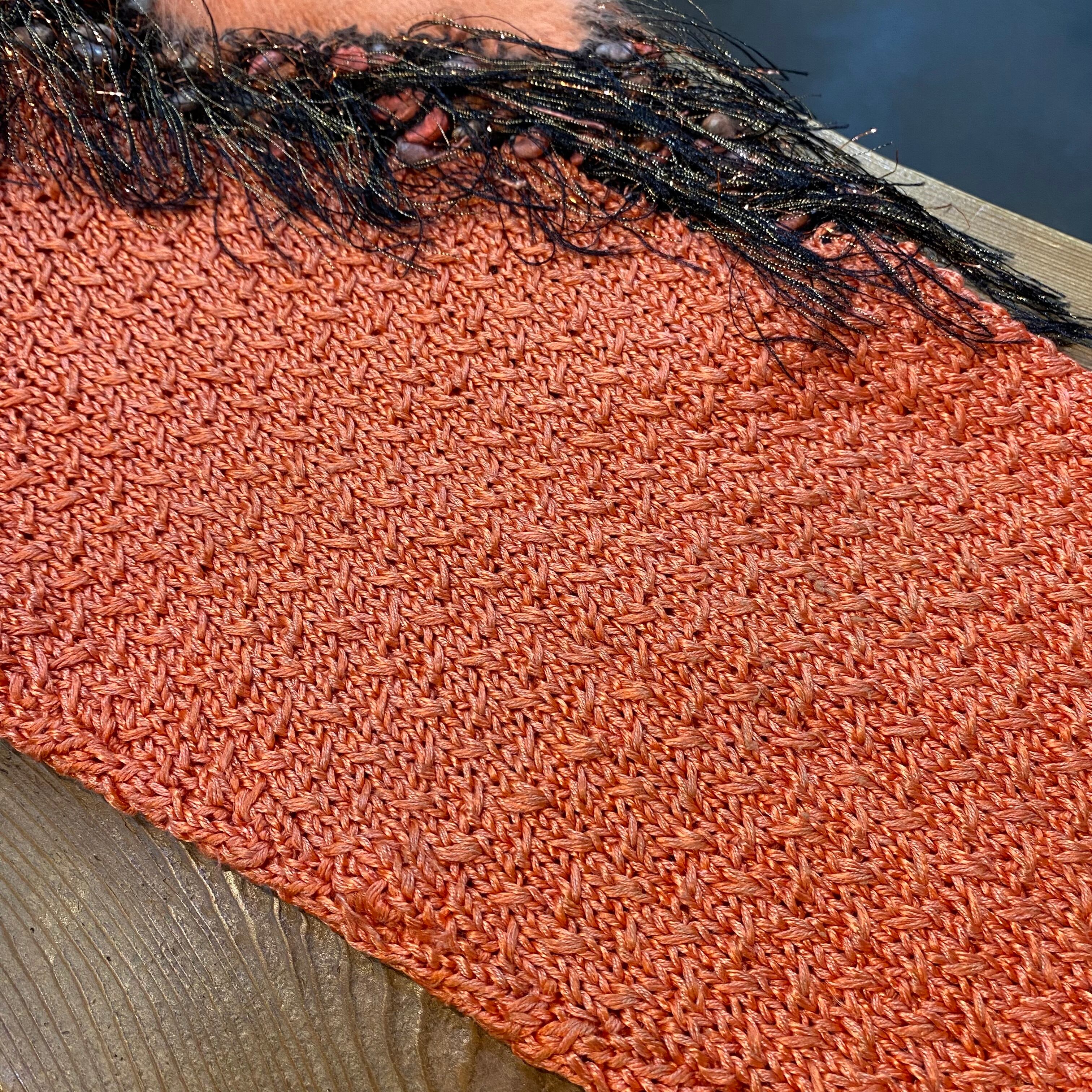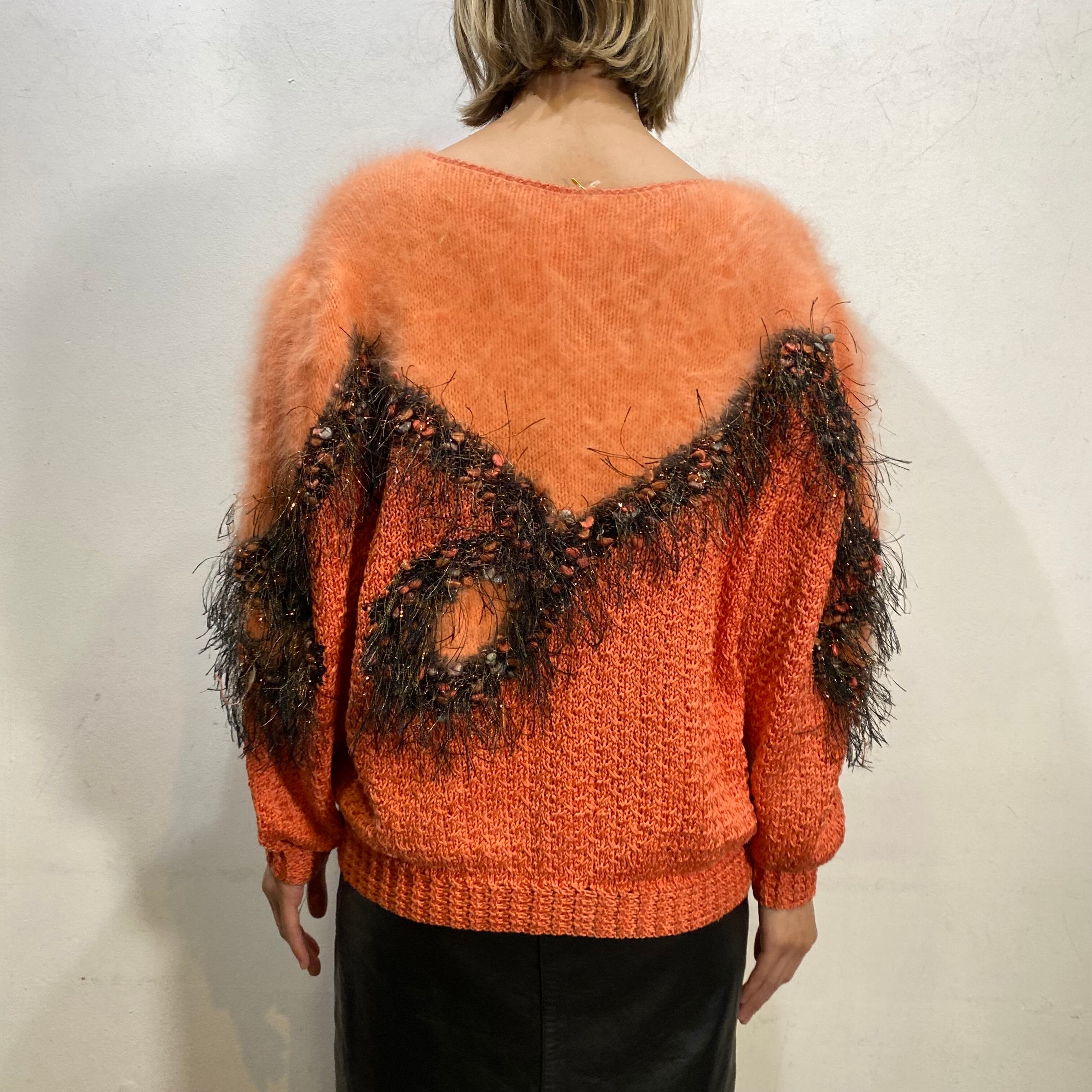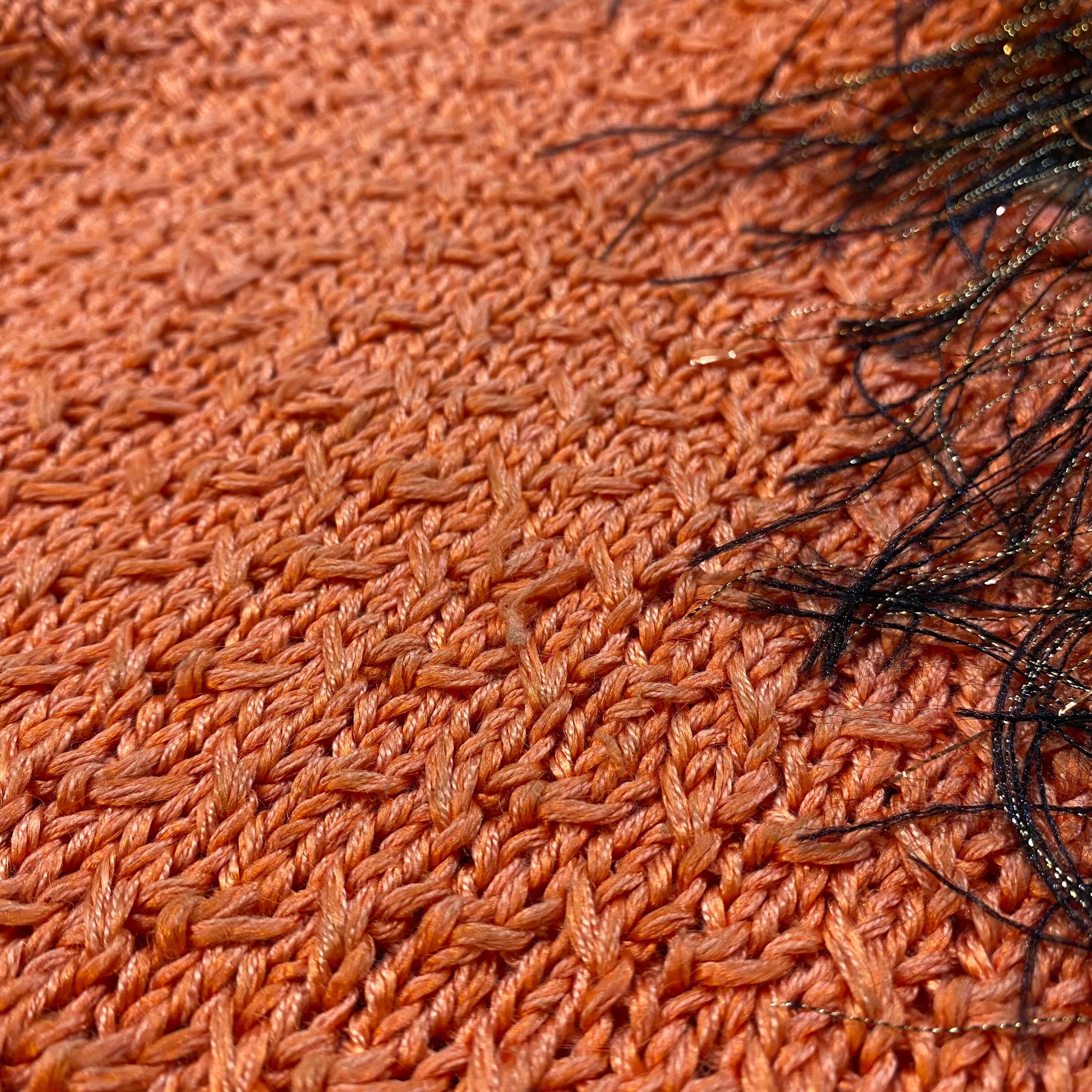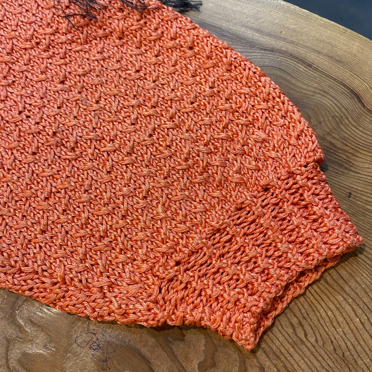 アンゴラやコットンなど素材の異なる糸を組み合わせて編まれており、デザイン性の高い一枚となっております。