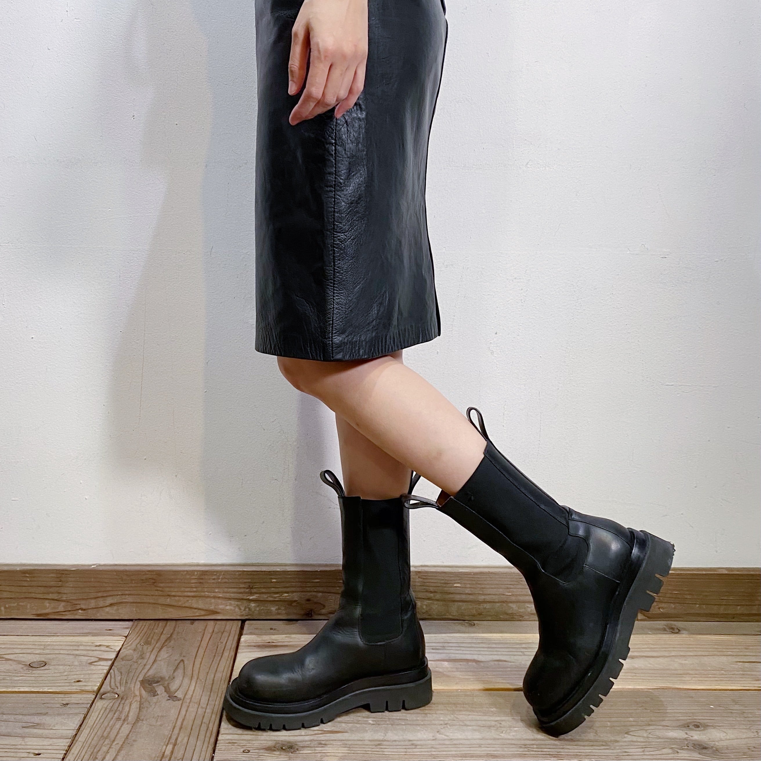 ブラックレザーで使い勝手の良い、スカートです。