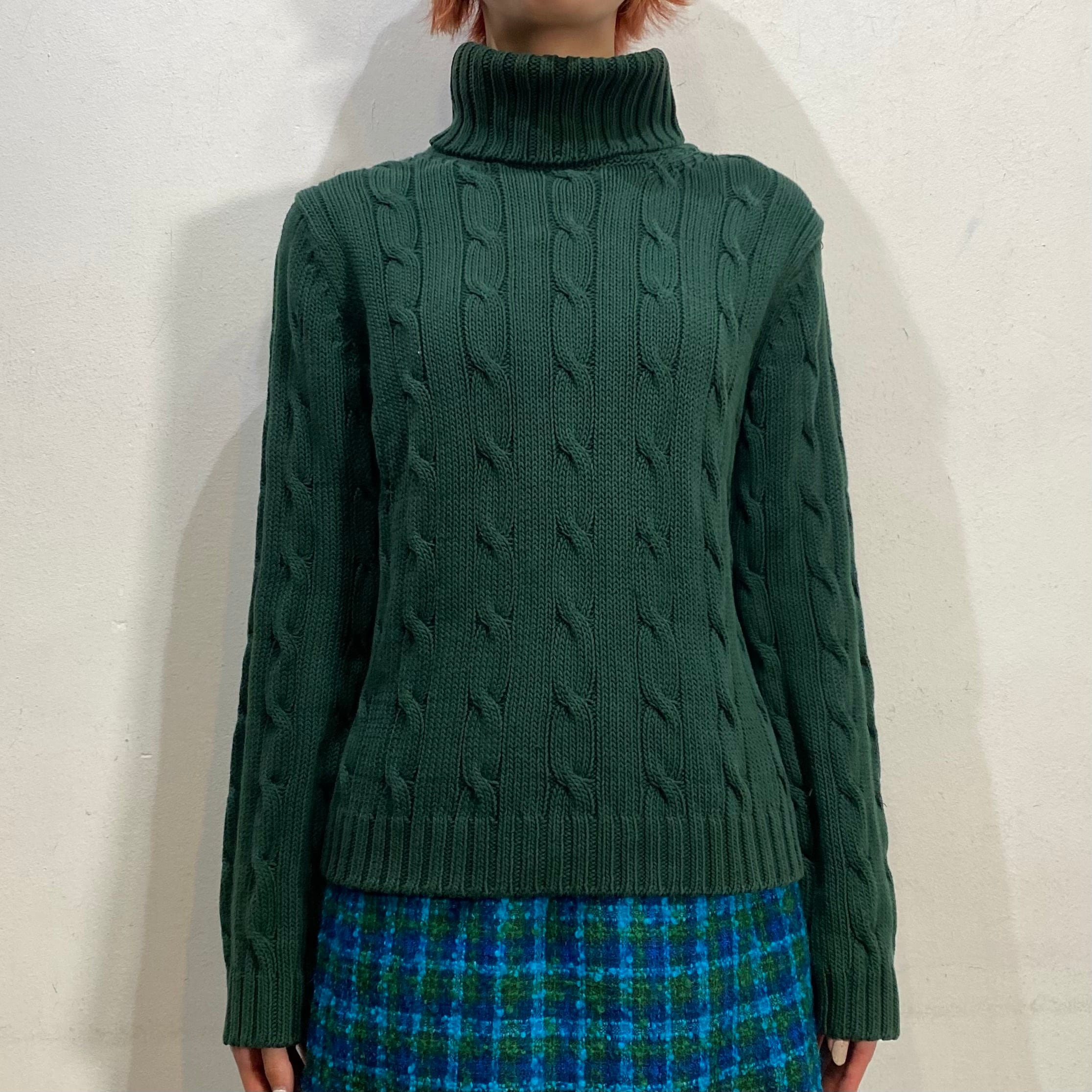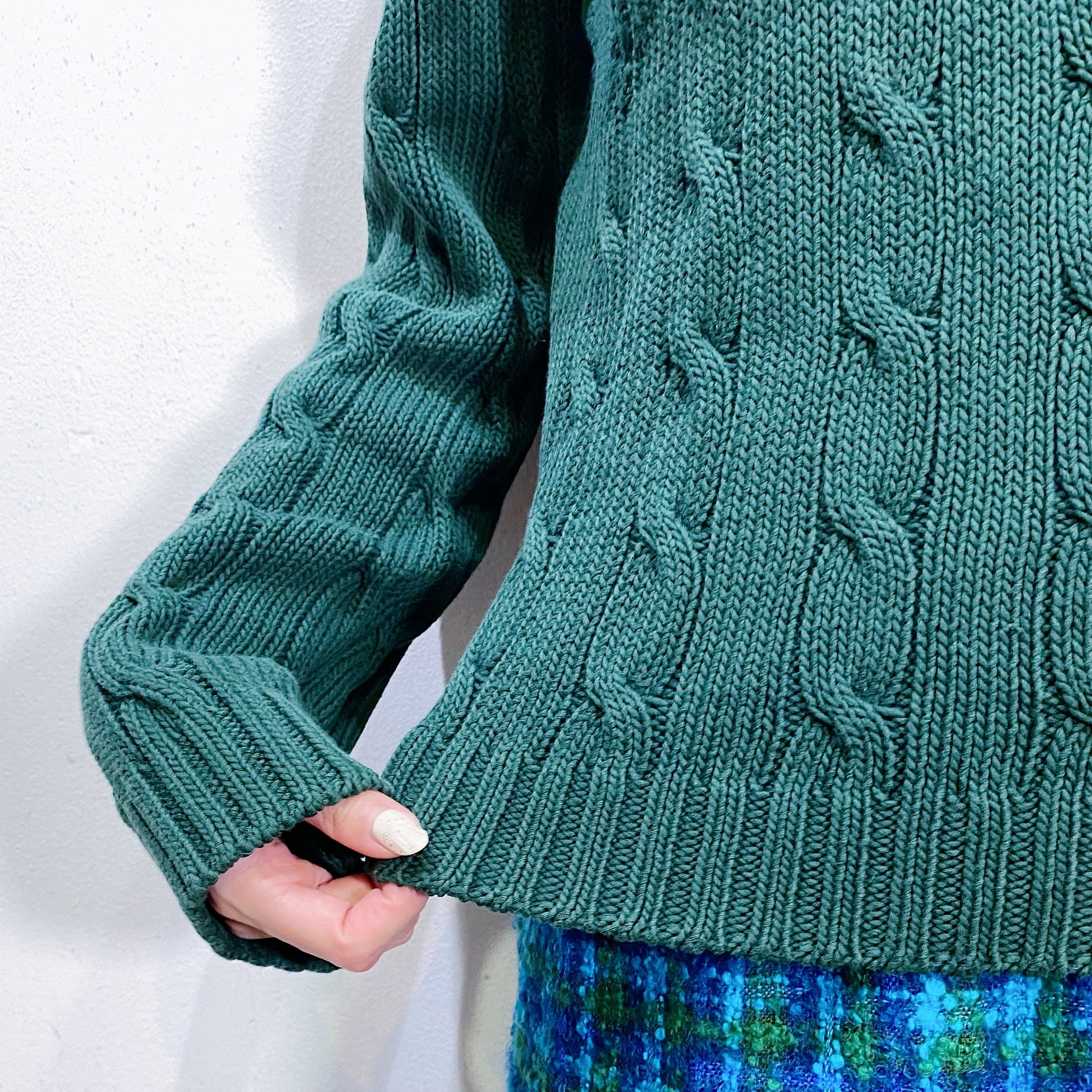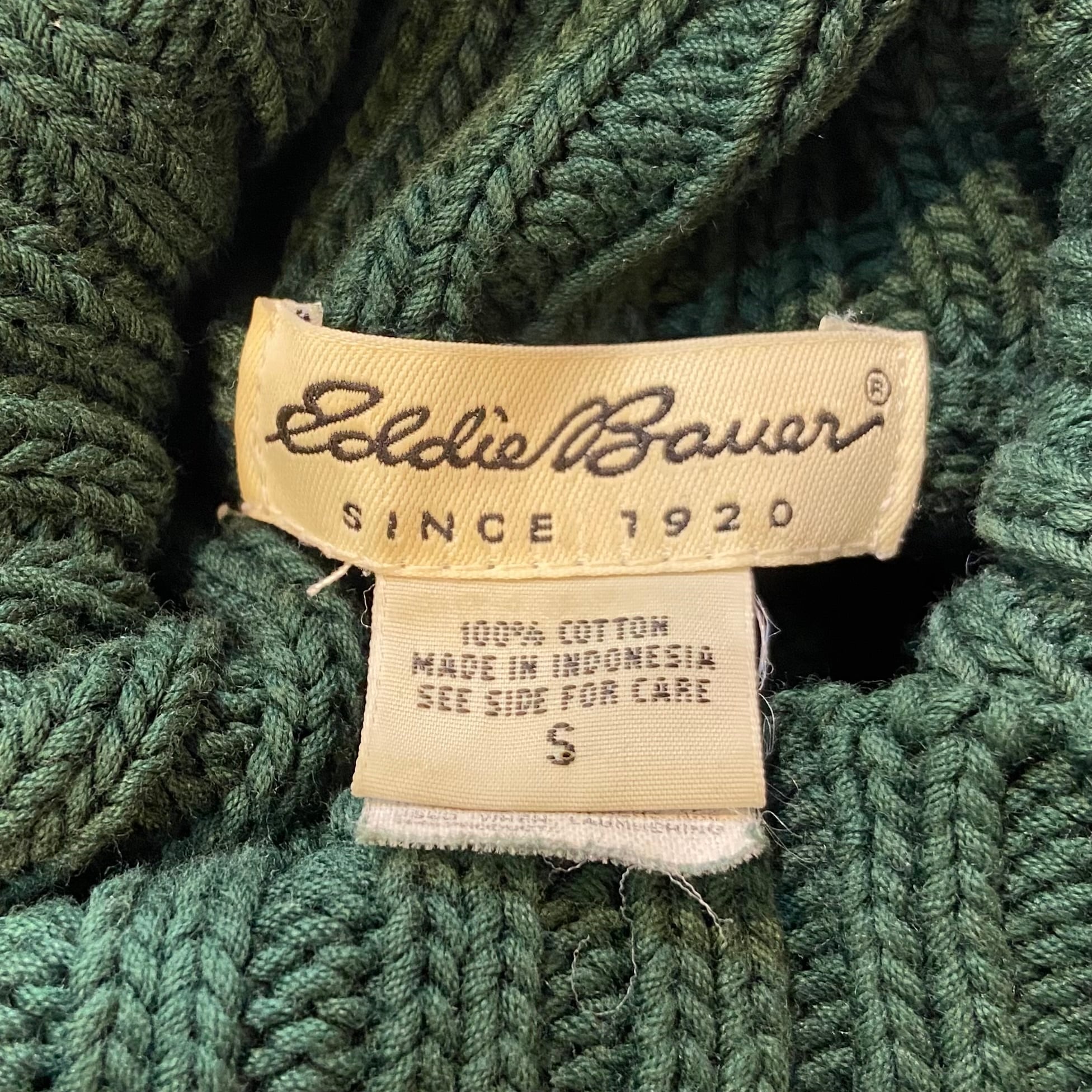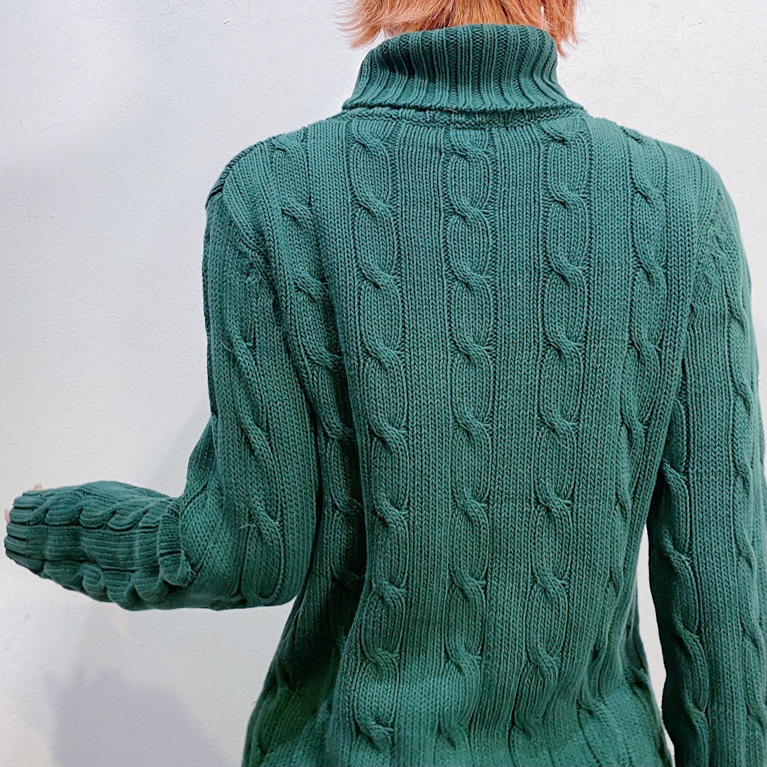 深めのグリーンカラーが可愛い、エディバウアーのハイネックニットセーターです。