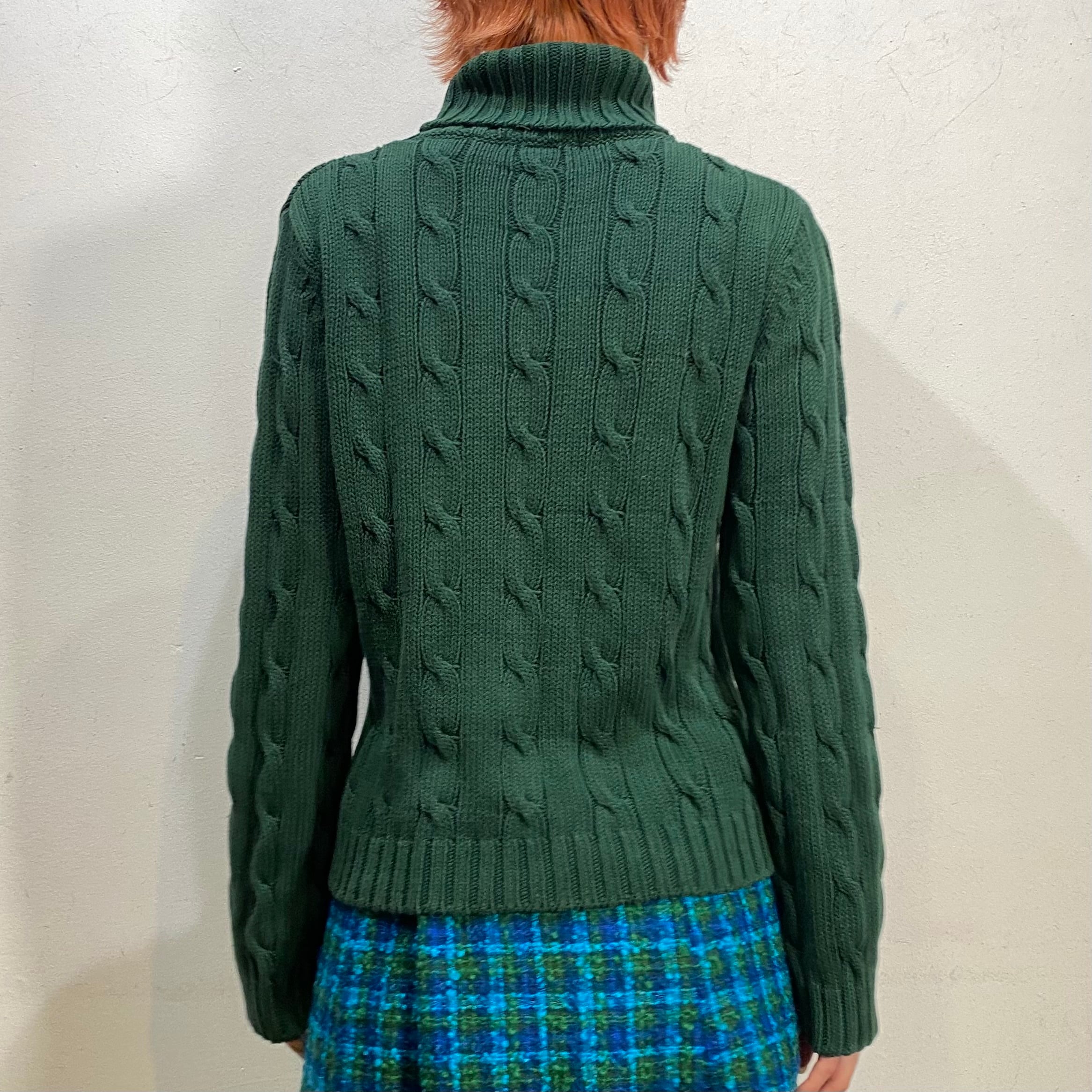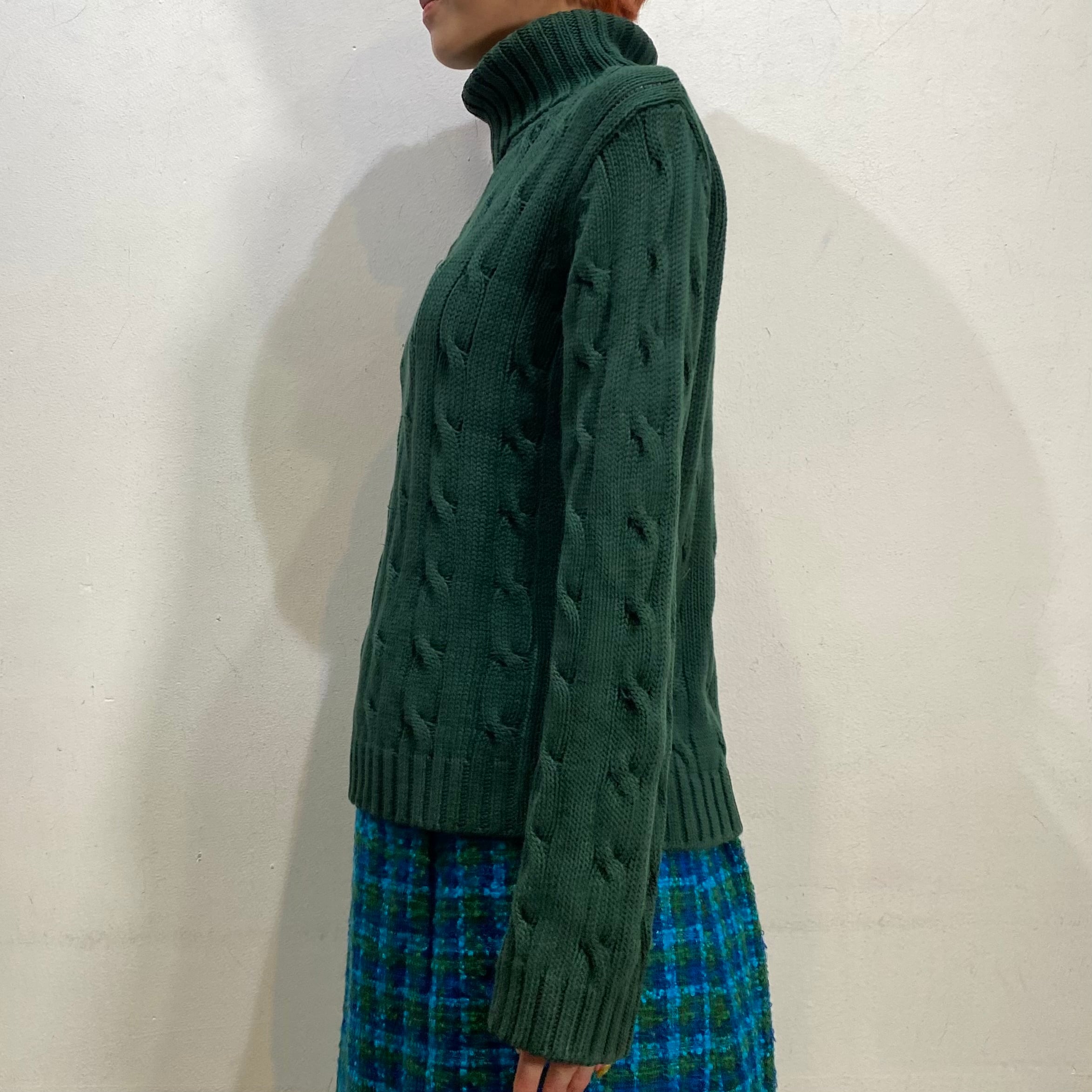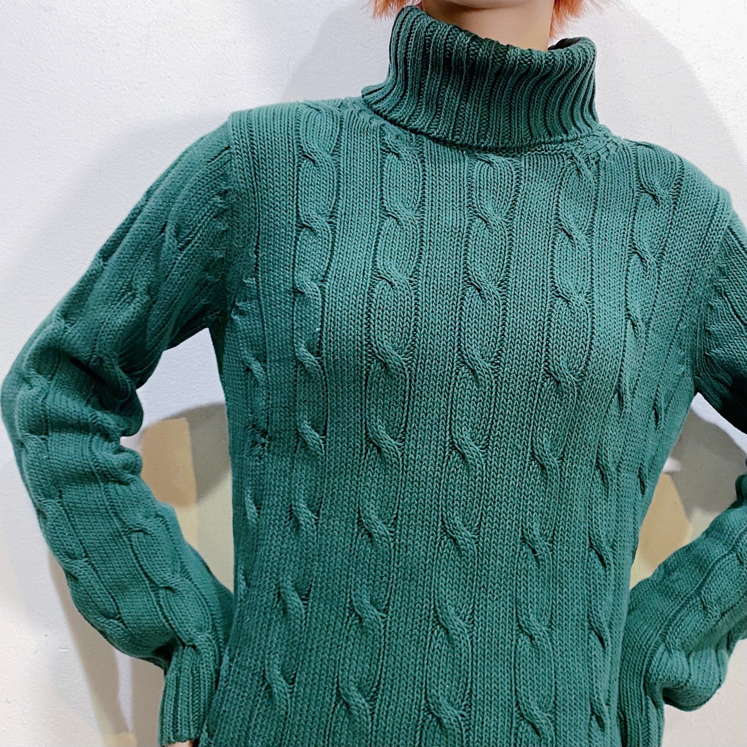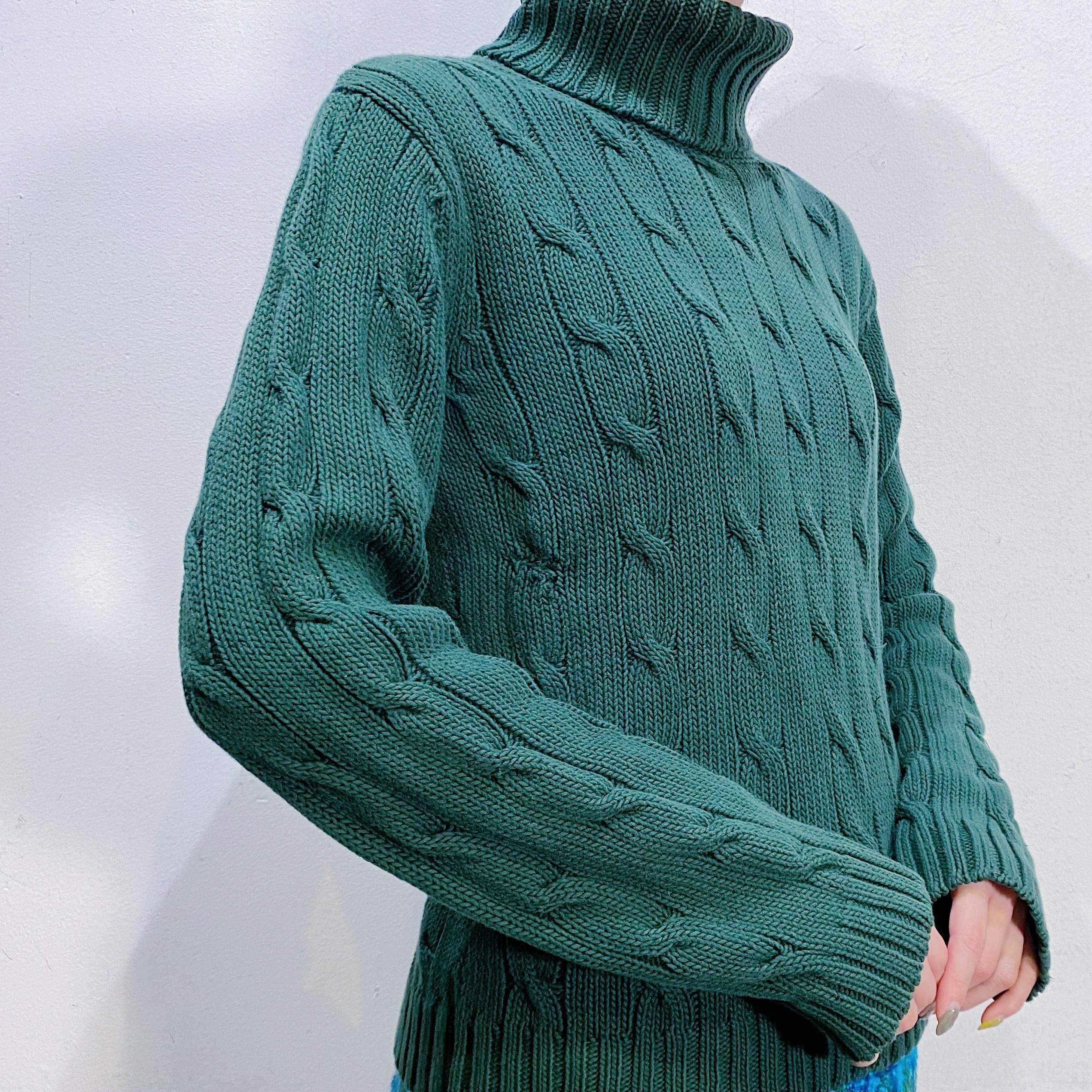 深めのグリーンカラーが可愛い、エディバウアーのハイネックニットセーターです。